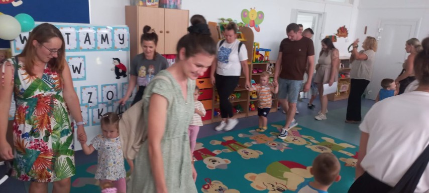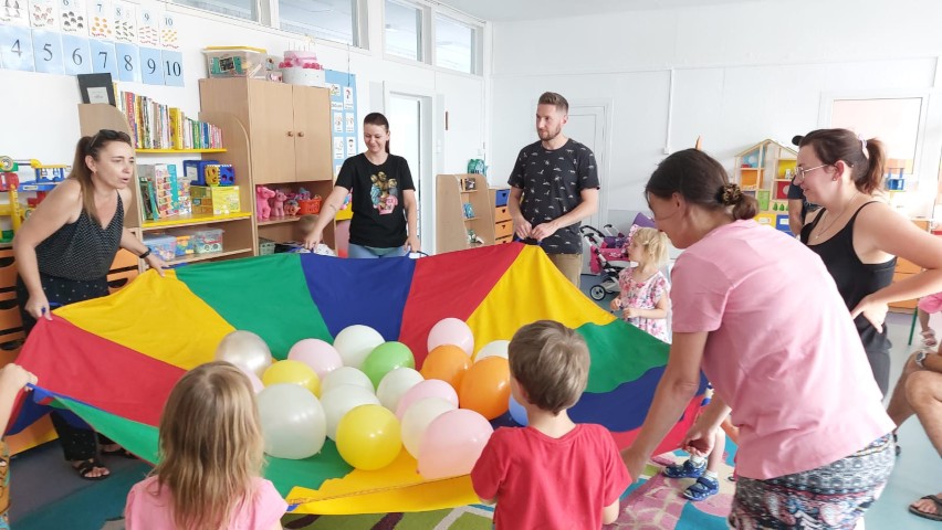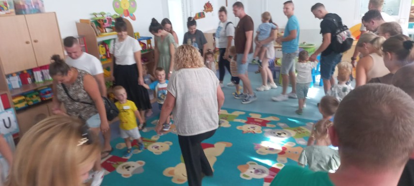 28 sierpnia w naszym przedszkolu odbyły się Dni Adaptacyjne dla nowych przedszkolaków, aby pomóc dzieciom i rodzicom zminimalizować stres i obawy pierwszych dni pobytu w przedszkolu. Uczestniczyli w nich rodzice wraz z dziećmi oraz nauczycielki z przedszkola. Celem zajęć adaptacyjnych w przedszkolu było ułatwienie maluchowi bezstresowego wkroczenia w świat grupy przedszkolnej.