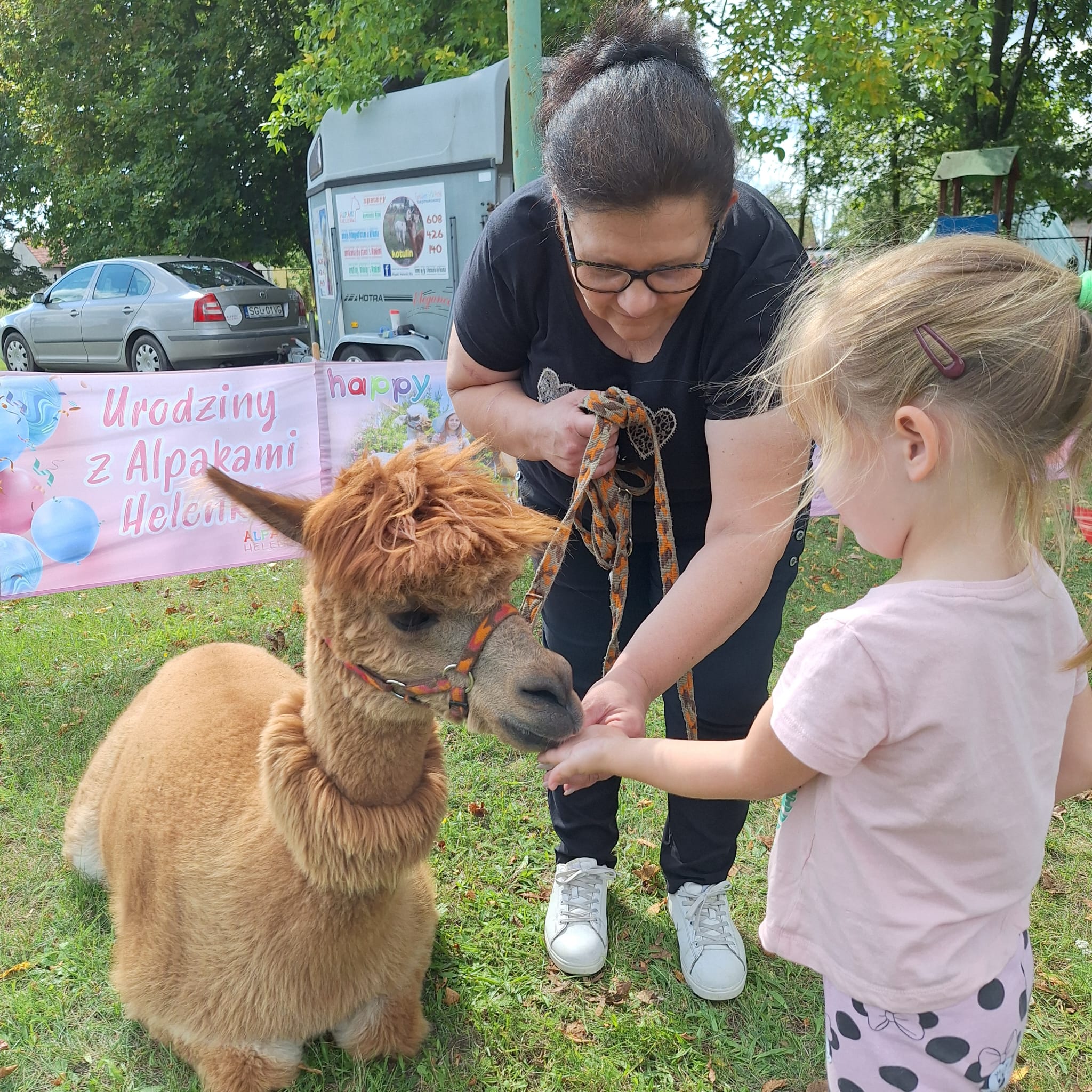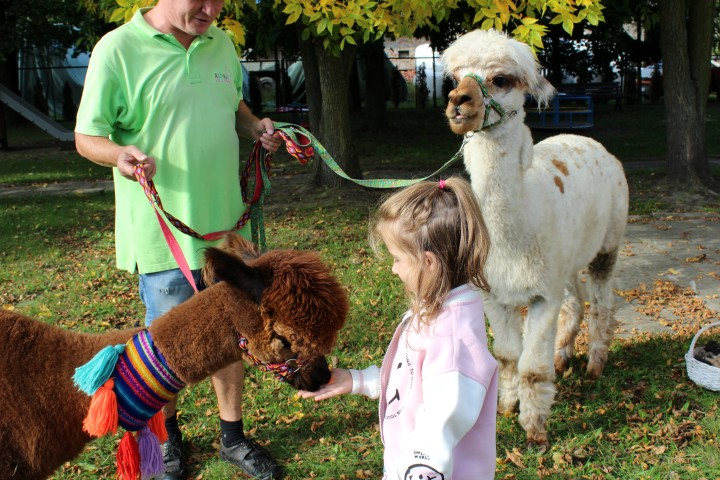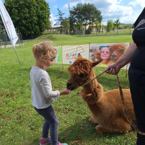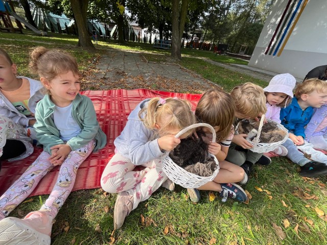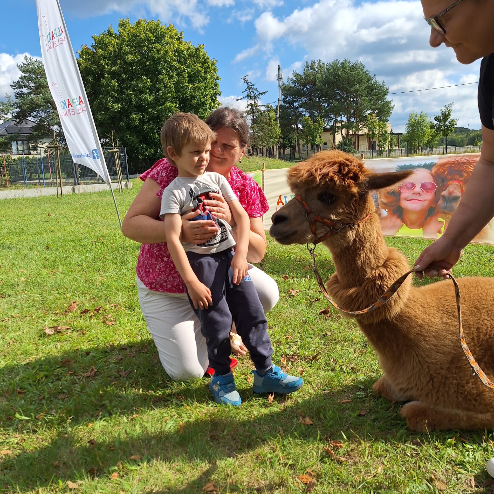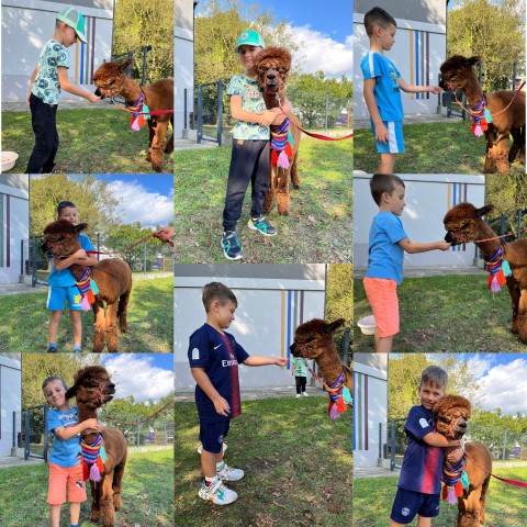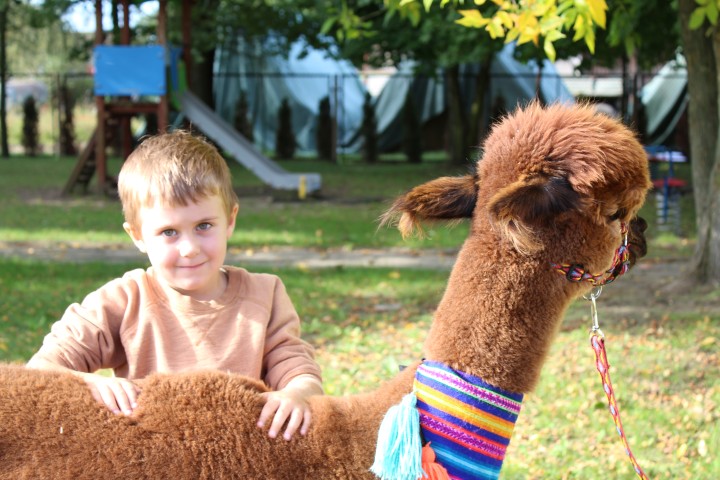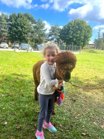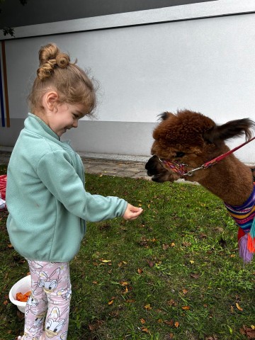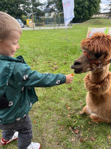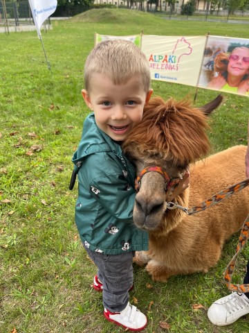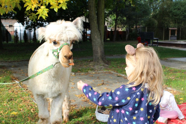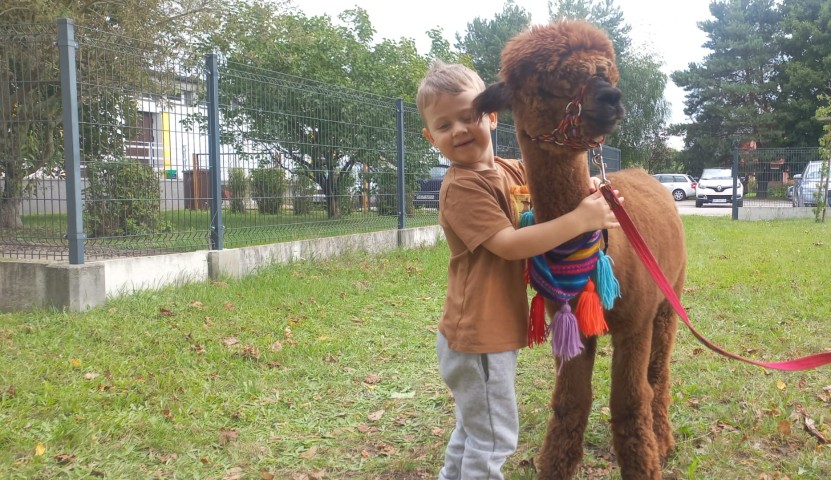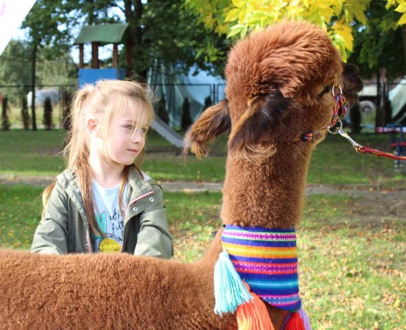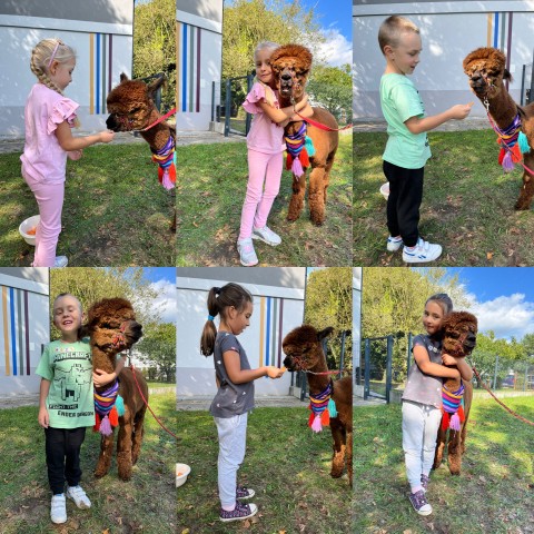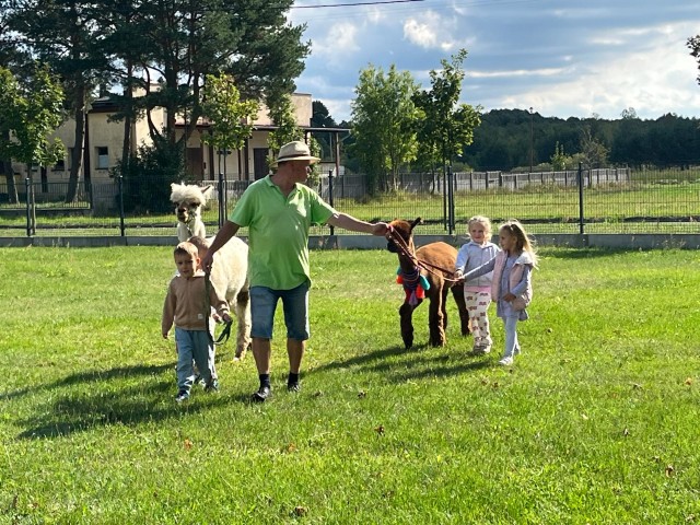 W każdej grupie kulminacyjnym momentem było dotkniecie ramienia specjalnym ,, czarodziejskim ołówkiem", który zmienił dzieci w prawdziwych maluchów, średniaków młodszych i starszych, starszaków. Ten dzień na długo zostanie w naszej pamięci- bo czy może być coś lepszego niż świętowanie w towarzystwie miękkich puszystych przyjaciół Alpak??? Dzieci miały okazję przyjrzeć się tym sympatycznym zwierzętom z bliska, pogłaskać, nakarmić oraz zrobić pamiątkowe zdjęcia.