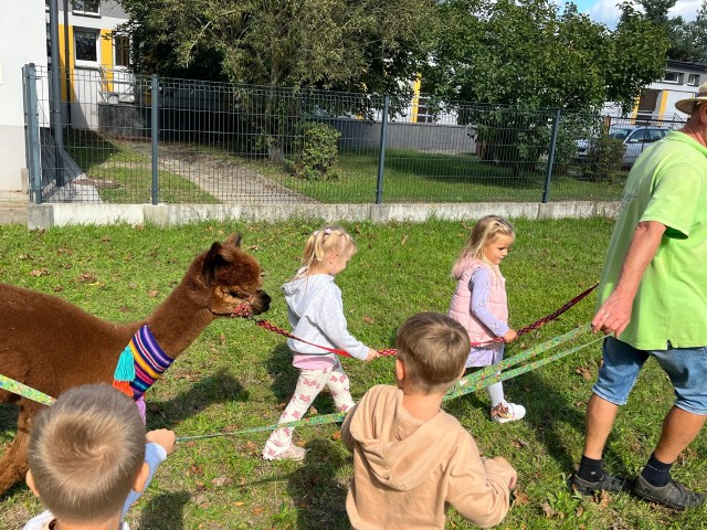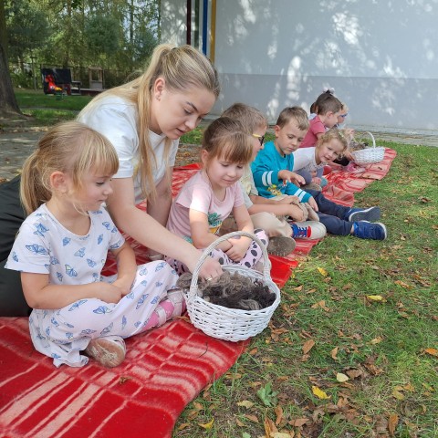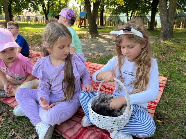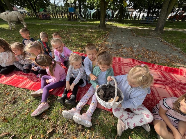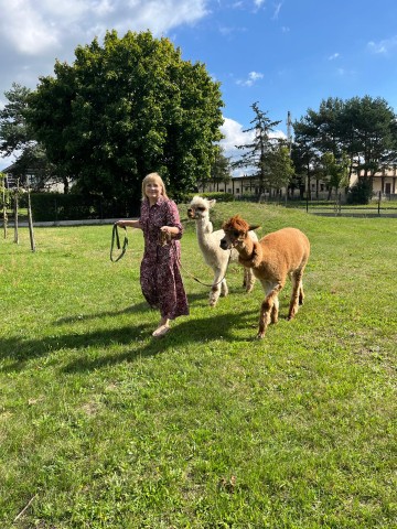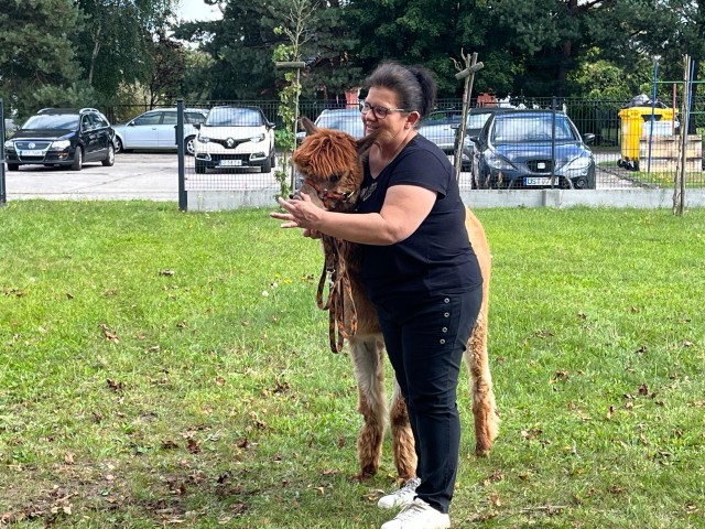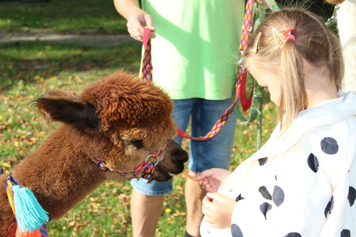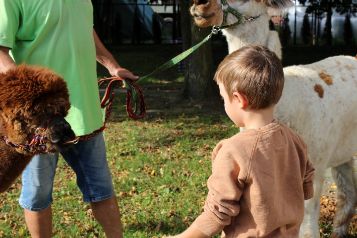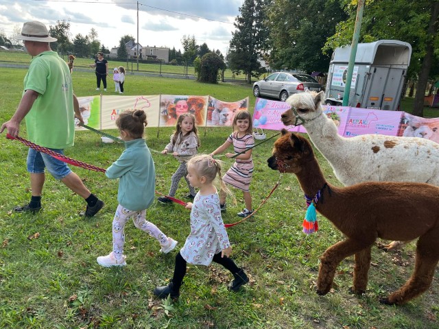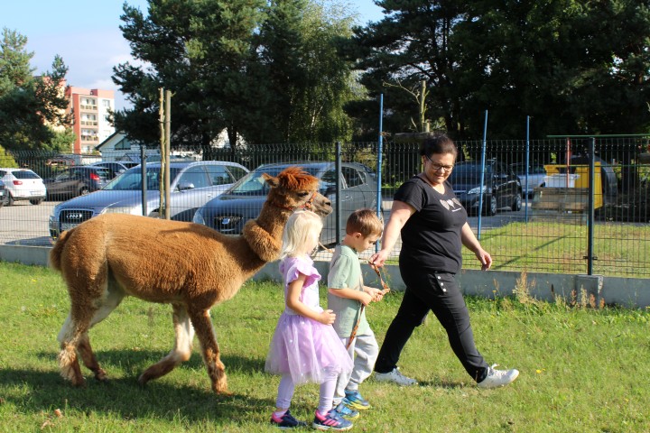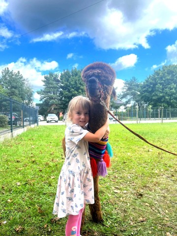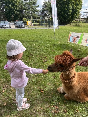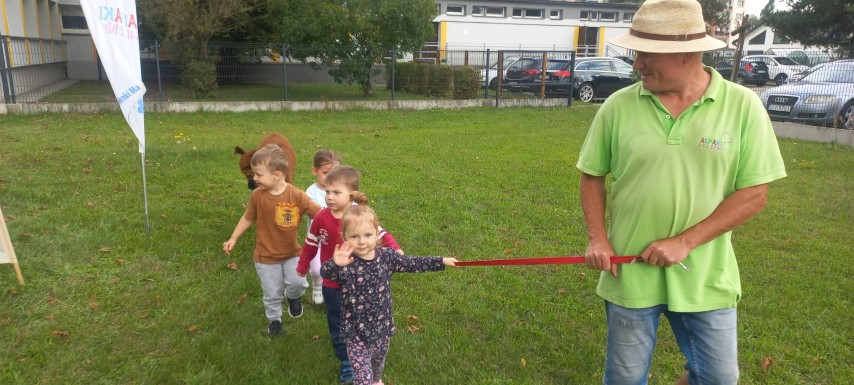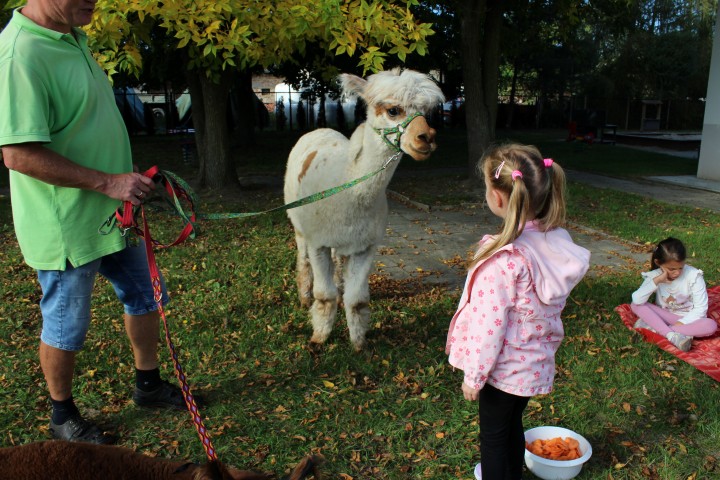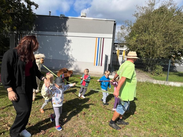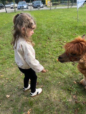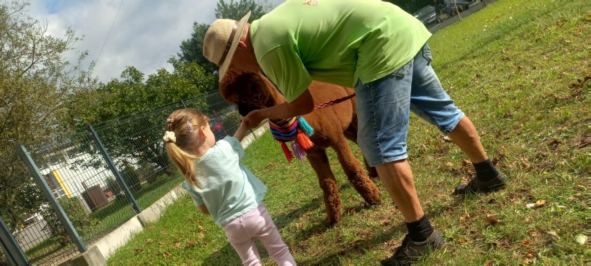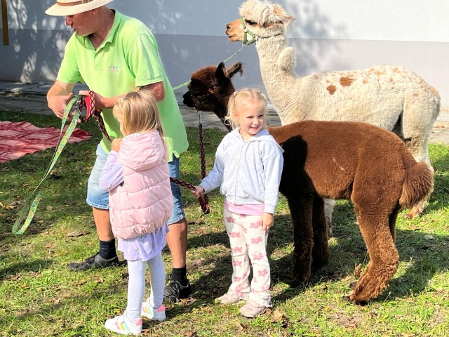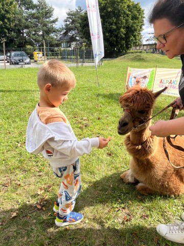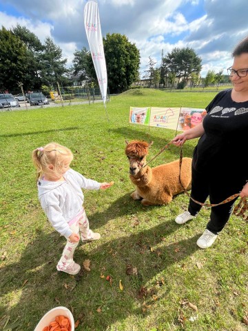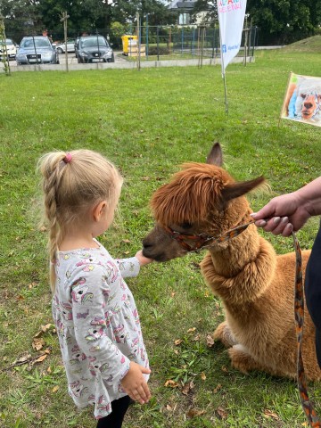 W każdej grupie kulminacyjnym momentem było dotkniecie ramienia specjalnym ,, czarodziejskim ołówkiem", który zmienił dzieci w prawdziwych maluchów, średniaków młodszych i starszych, starszaków. Ten dzień na długo zostanie w naszej pamięci- bo czy może być coś lepszego niż świętowanie w towarzystwie miękkich puszystych przyjaciół Alpak??? Dzieci miały okazję przyjrzeć się tym sympatycznym zwierzętom z bliska, pogłaskać, nakarmić oraz zrobić pamiątkowe zdjęcia.