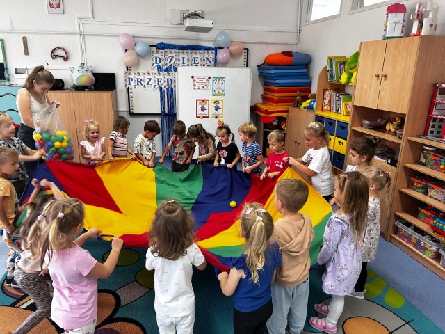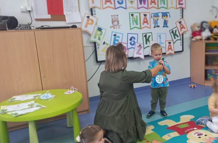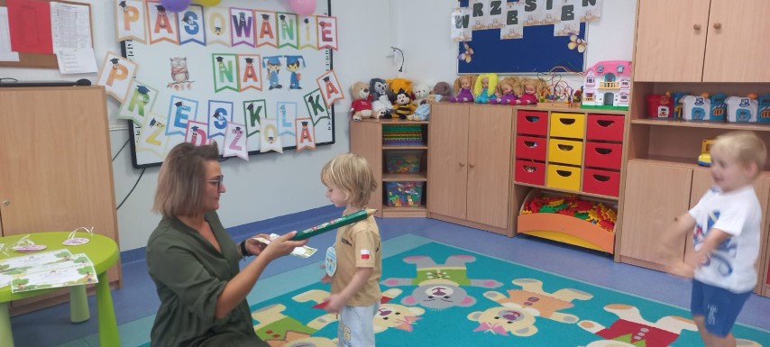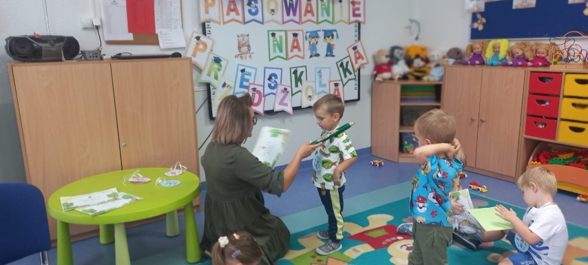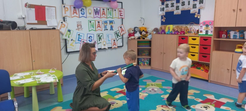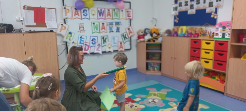 W piątek 19 września obchodziliśmy w naszym przedszkolu Ogólnopolski Dzień Przedszkolaka- wyjątkowe święto pełne radości, zabawy i niezapomnianych wrażeń. Świętowanie połączyliśmy z "Pasowaniem na Przedszkolaka". To ważne wydarzenie, zwłaszcza dla dzieci, które w tym roku po raz pierwszy przekroczyły próg przedszkola.