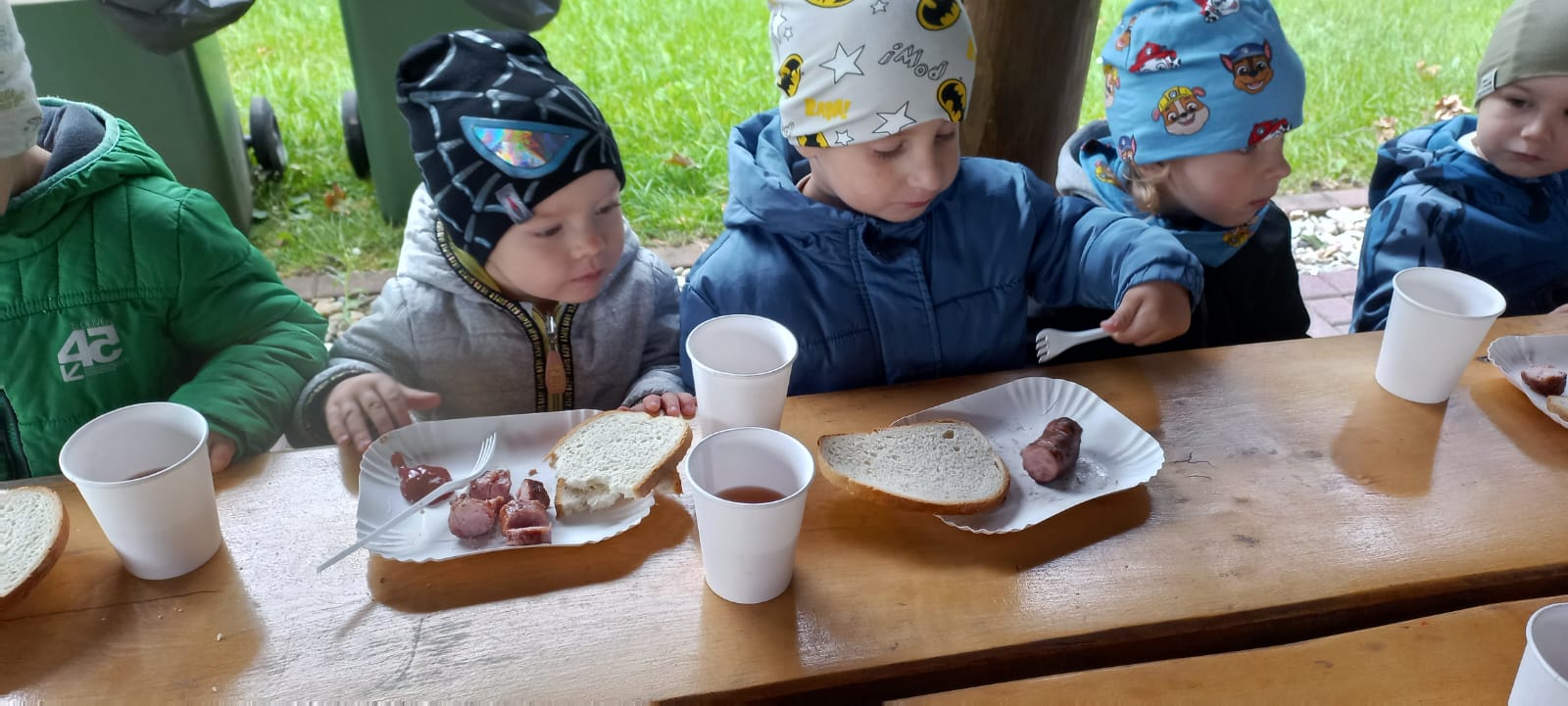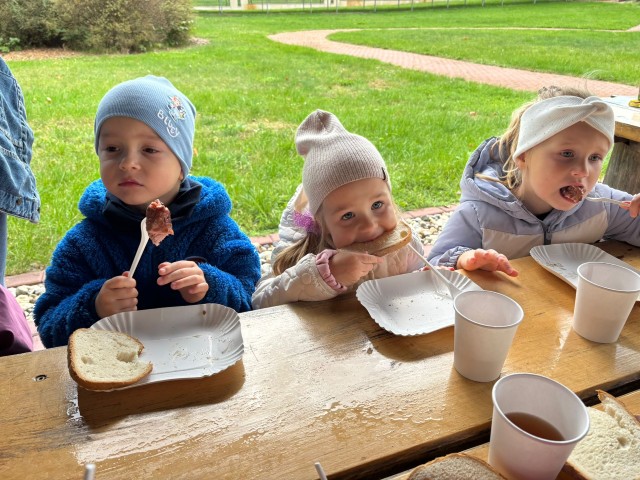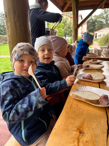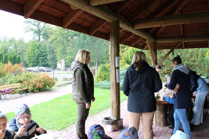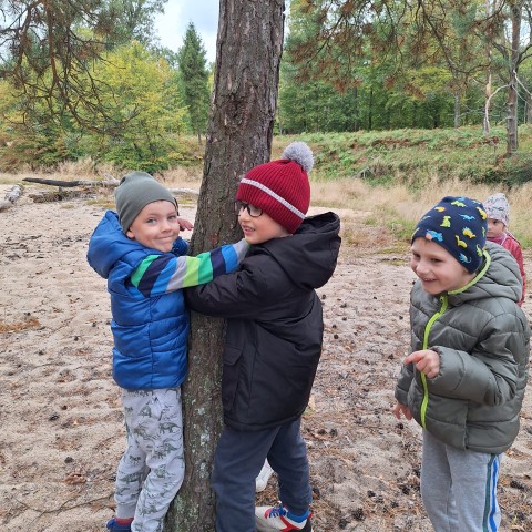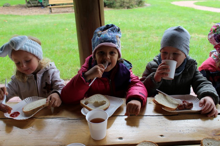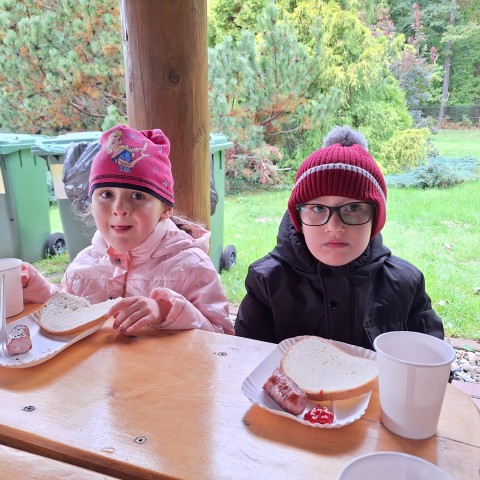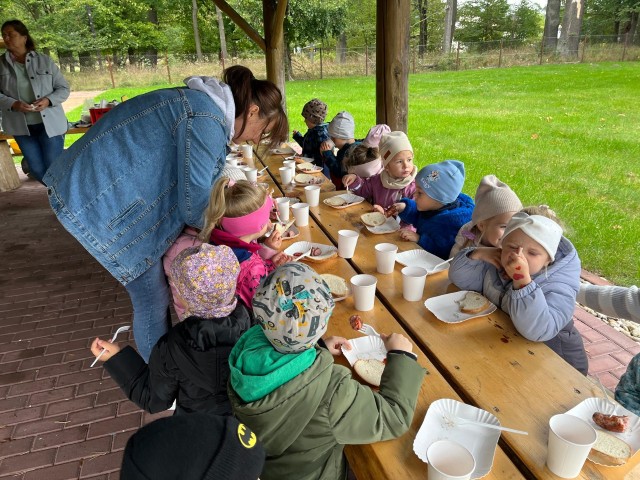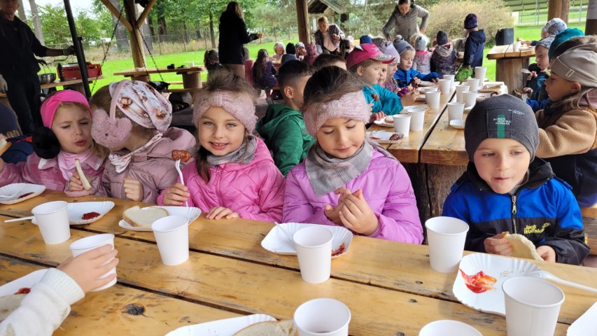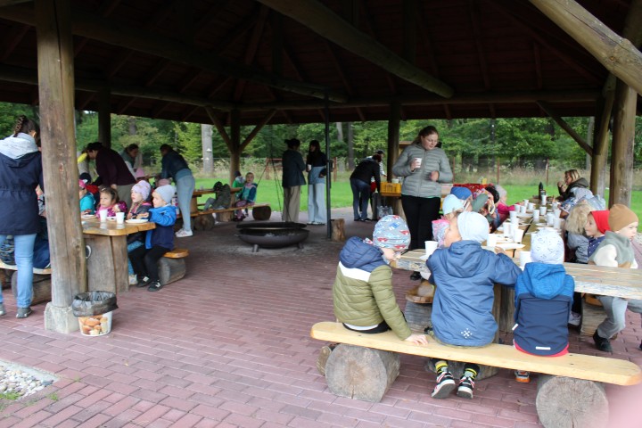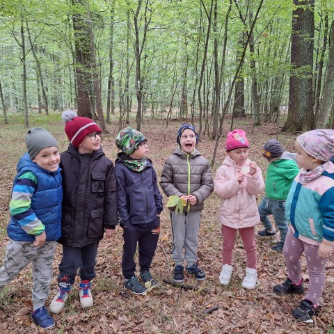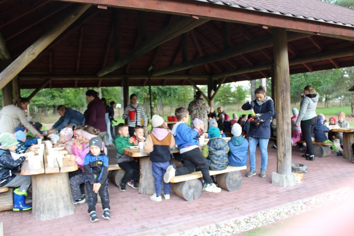 Mali przyrodnicy mogli zobaczyć eksponaty zwierząt i ptaków mieszkających w naszych lasach oraz poznać tajemnice lasu i usłyszeć odgłosy jego mieszkańców. Spacerując ścieżką edukacyjną, obserwowaliśmy naturalny ekosystem świata roślin i zwierząt. Na zakończenie czekała nas pyszna kiełbaska z grilla. Wszyscy wróciliśmy do przedszkola z uśmiechami na twarzach oraz z przekonaniem , że w lesie należy zachować ciszę i spokój.