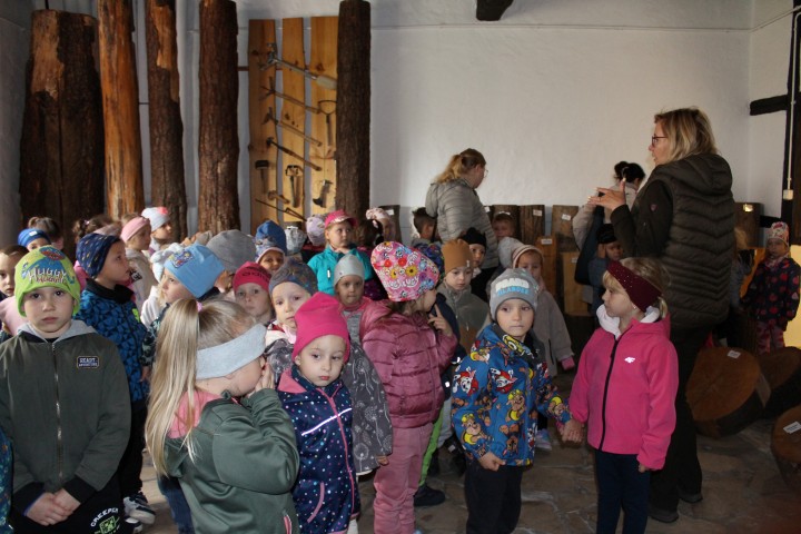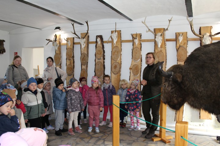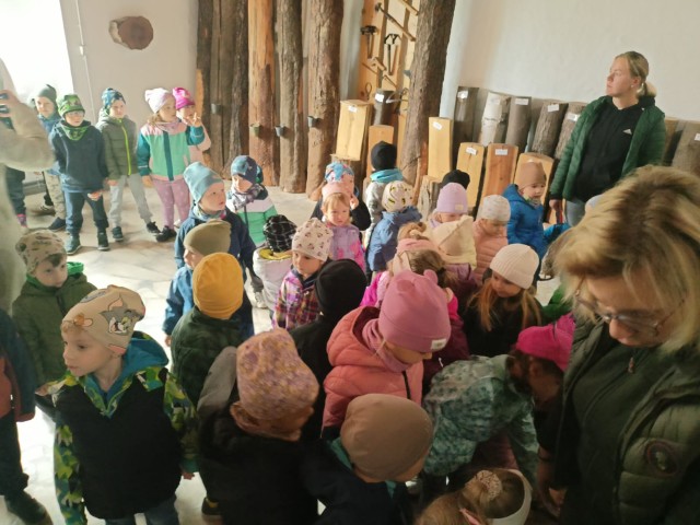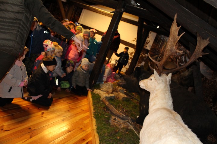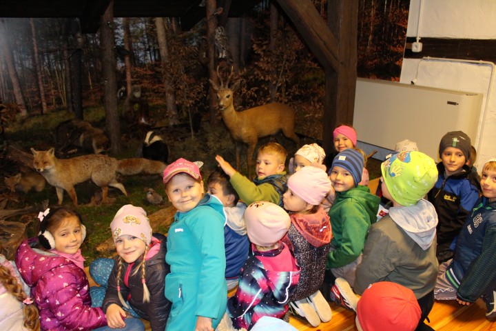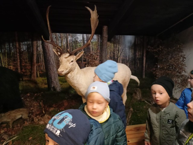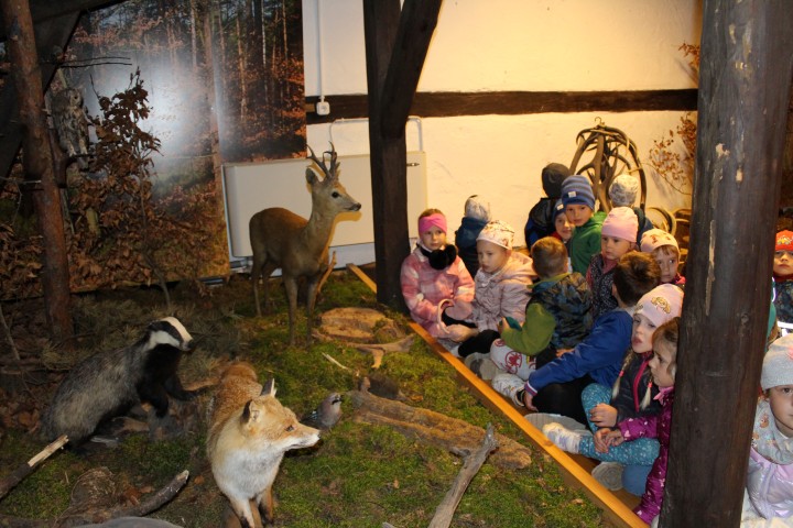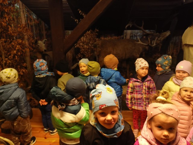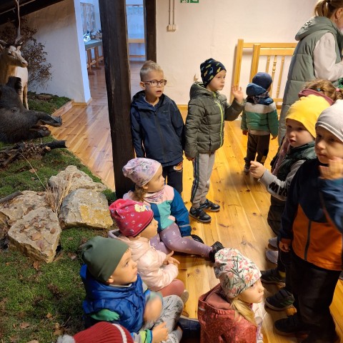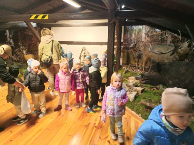 W poniedziałek 29 września nasze przedszkolaki wybrały się na wycieczkę do Nadleśnictwa Zawadzkie. Celem wycieczki było rozbudzenie zainteresowań pięknem i bogactwem środowiska przyrodniczego. Na miejscu powitała nas Pani Agnieszka Jamrozik, która zaprosiła wszystkich do zwiedzania Izby Leśno- Przyrodniczej.