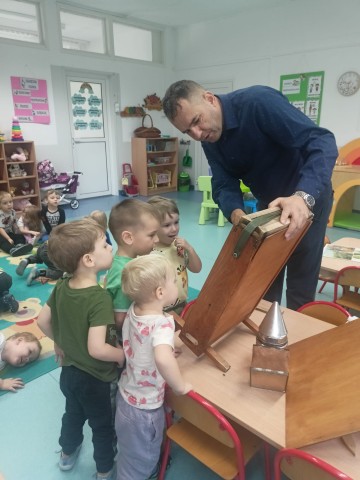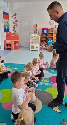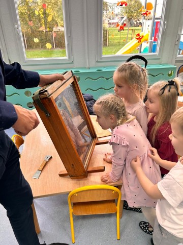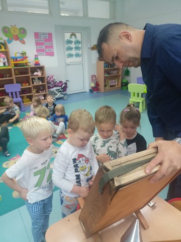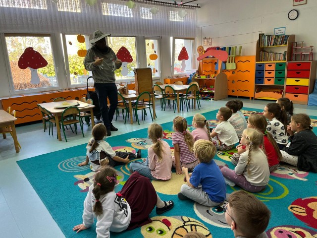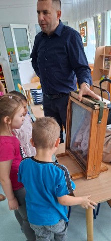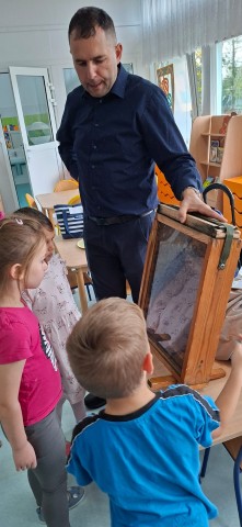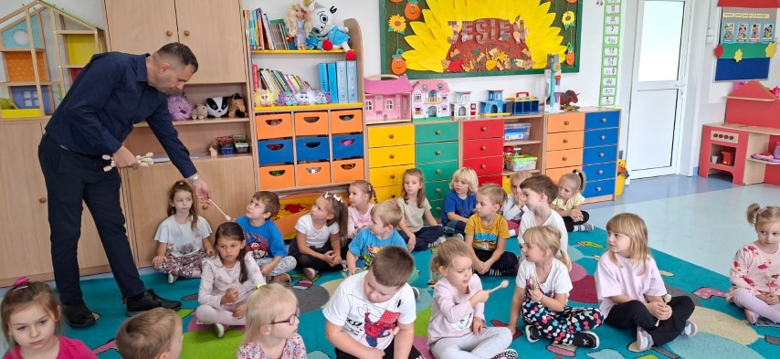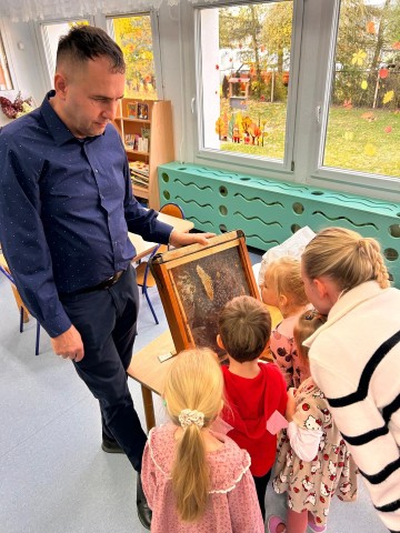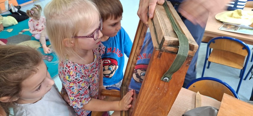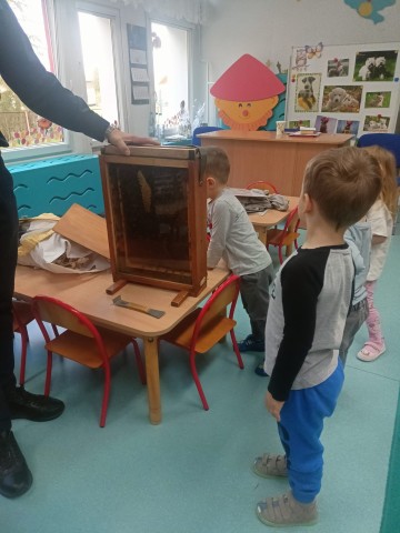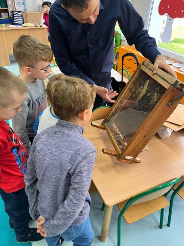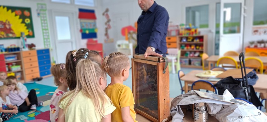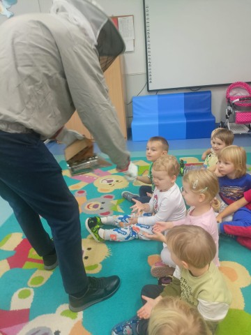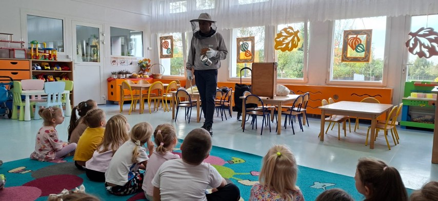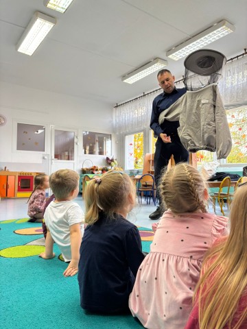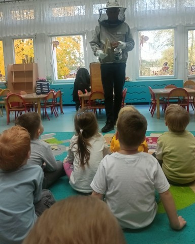 W dniu 22 października w naszym przedszkolu odbyły się warsztaty pszczelarskie, na których mieliśmy możliwość poznania tajników związanych z życiem pszczół oraz produkcją miodu. Podczas opowieści pszczelarza zdobyliśmy wiele cennych informacji dotyczących życia pszczół. W czasie spotkania mogliśmy zobaczyć strój pszczelarza oraz obejrzeć przybory, których używa w swojej codziennej pracy.