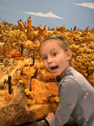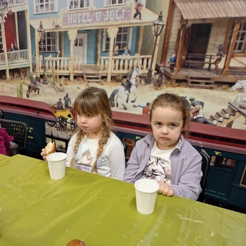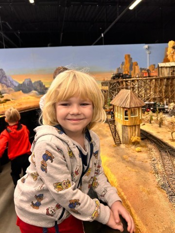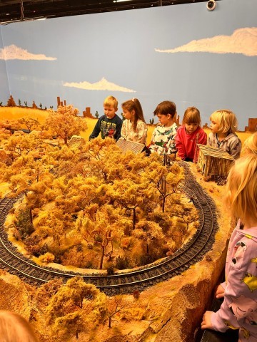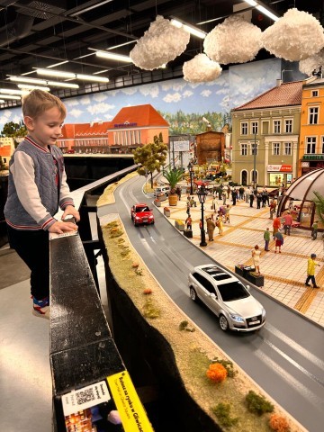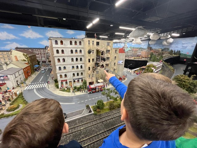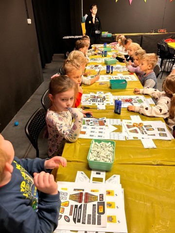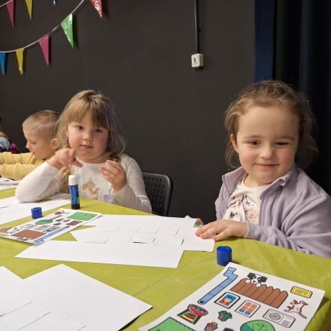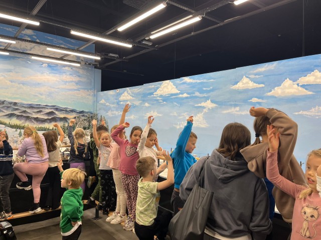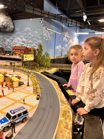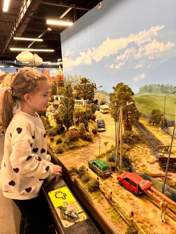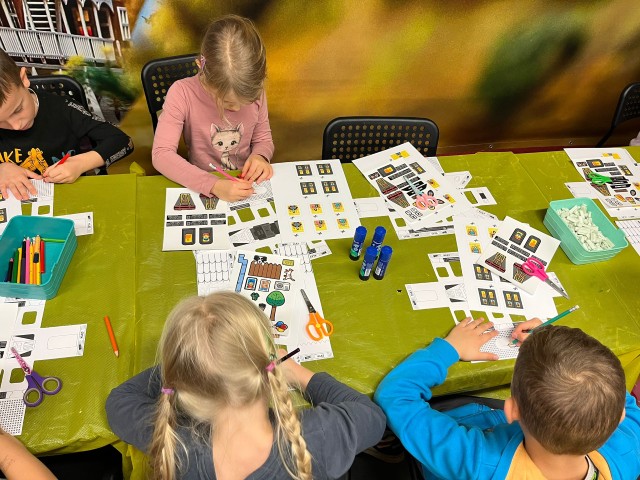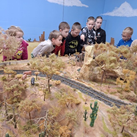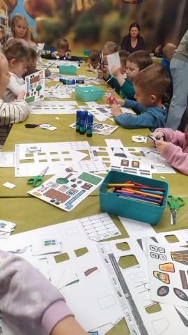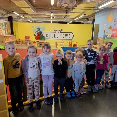 Duże emocje wzbudziła również makieta w stylu Dzikiego Zachodu, gdzie szukaliśmy Chudego z Toy Story. Następnie zobaczyliśmy niezwykłą scenę, na której z chmury padał prawdziwy deszcz na miniaturowe miasteczko — dzieci były oczarowane tym widokiem! Nie zabrakło też zimowej makiety, pełnej śniegu, która wprowadziła wszystkich w magiczny nastrój. W trakcie zwiedzania szukaliśmy też innych ukrytych postaci — dzieci wypatrywały m.in. Spidermana, co okazało się świetną zabawą i ćwiczeniem spostrzegawczości. Po obejrzeniu wszystkich ekspozycji wzięliśmy udział w warsztatach plastycznych, podczas których każdy z przedszkolaków mógł wykonać coś wyjątkowego — blok lub pociąg z papieru. Trzeba było wszystko wyciąć, skleić, pokolorować i złożyć — dzieci pracowały z ogromnym zaangażowaniem, a efekty ich pracy były naprawdę imponujące. To była wyjątkowa wycieczka, pełna radości, odkryć i wspólnej zabawy — z pewnością na długo pozostanie w pamięci wszystkich dzieci!