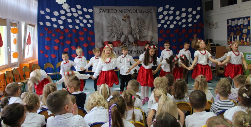 W piosenkach oraz tradycyjnych tańcach, takich jak; „Polonez”, „Zasiali górale” czy „Poszło dziewczę po ziele”, pokazały piękno naszej ojczyzny, jej folkloru i tradycji. Wspólnie i z wielką dumą odśpiewaliśmy również hymn Polski – „Mazurek Dąbrowskiego”. Wydarzenie przebiegło w podniosłej i jednocześnie radosnej atmosferze, a dzieci z zaangażowaniem uczestniczyły w świętowaniu polskiej niepodległości. Obchody 11 listopada już od najmłodszych lat uczą szacunku do kraju ojczystego i symboli narodowych, a także pomagają budować poczucie tożsamości oraz przynależności narodowej.