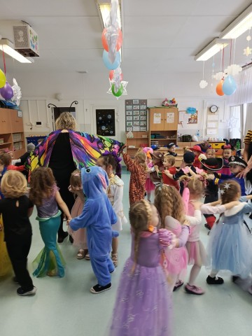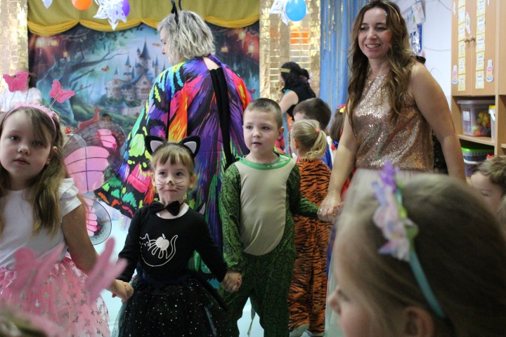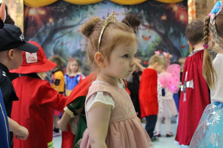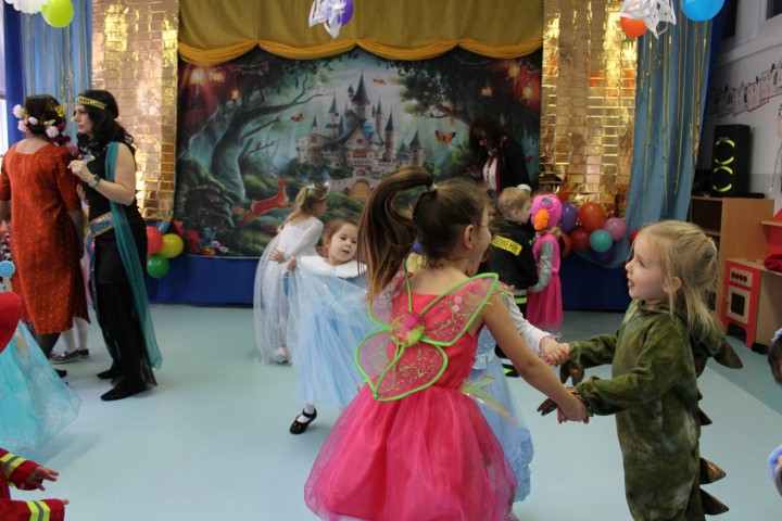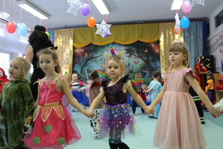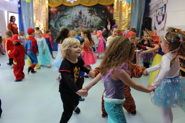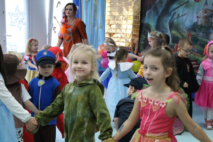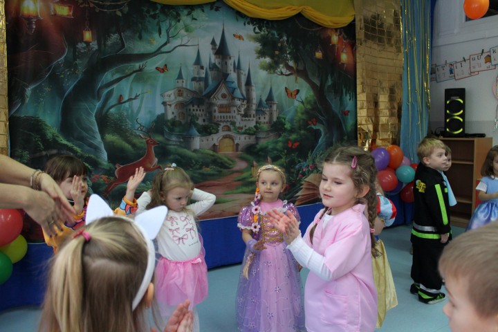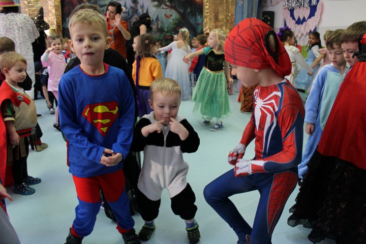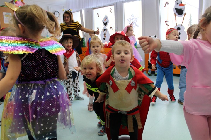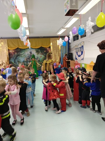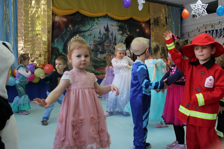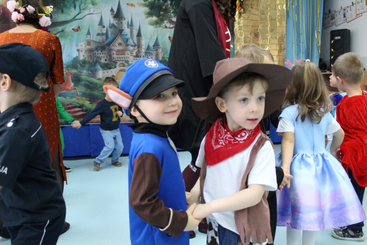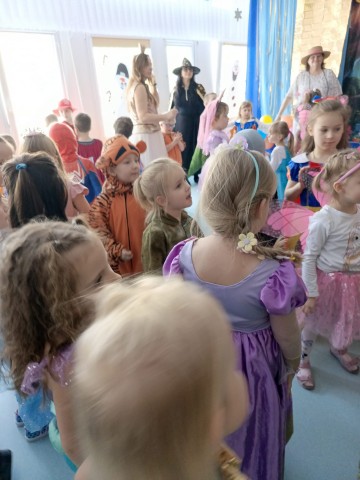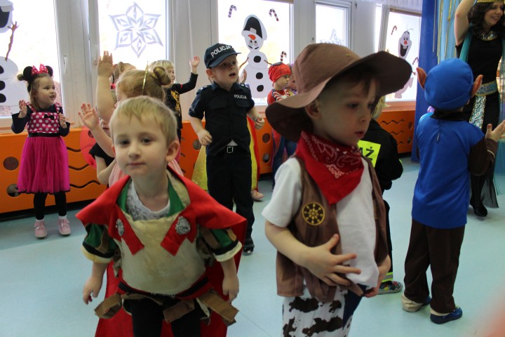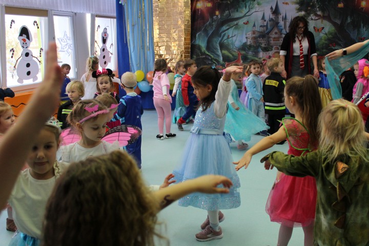 Tradycyjnie w okresie karnawału w naszym przedszkolu odbywa się uroczysty bal. Wspólnie z przedszkolakami wszystkich grup spotkamy się na pięknie udekorowanej sali balowej, pełnej kolorowych balonów oraz karnawałowych ozdób. W tym dniu podziwialiśmy niezwykle ciekawe i pomysłowe przebrania – na parkiecie mogliśmy spotkać bohaterów ulubionych bajek, księżniczki, superbohaterów oraz przedstawicieli różnych zawodów, takich jak strażacy, policjanci czy lekarze.