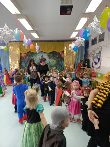 Wszyscy razem bawiliśmy się przy dźwiękach muzyki dziecięcej oraz znanych i lubianych przebojów. Bal Karnawałowy był czasem pełnym uśmiechu, integracji i dobrej zabawy, a jego wspomnienia na długo pozostaną w naszej pamięci.