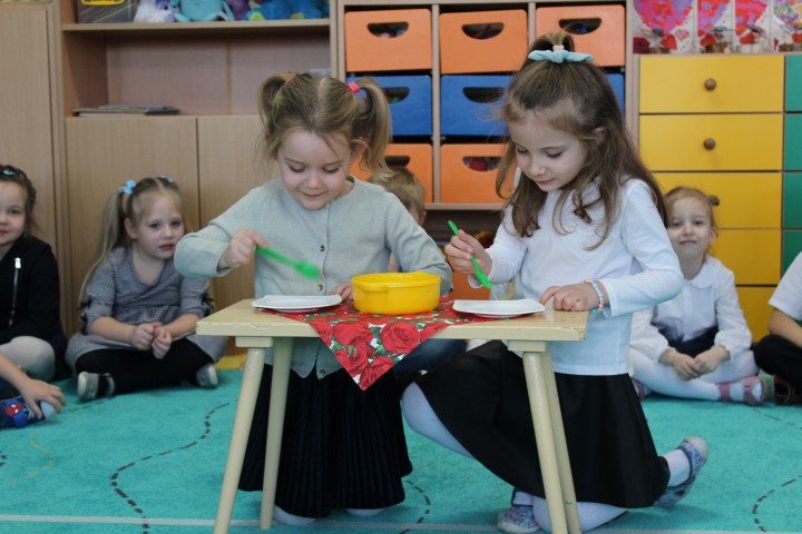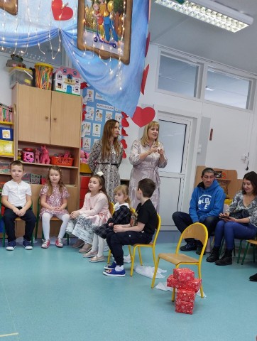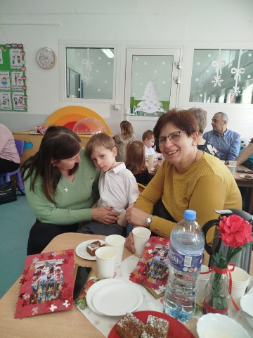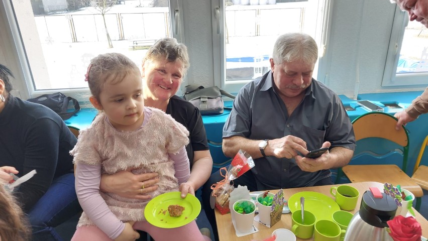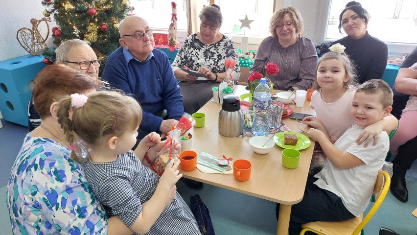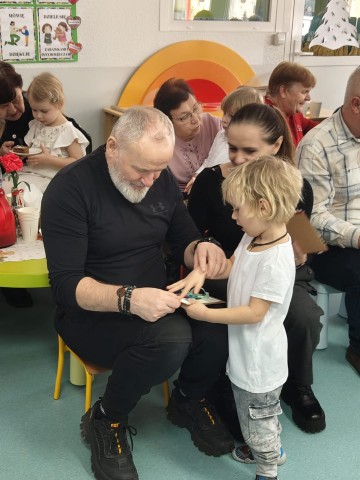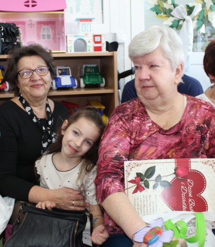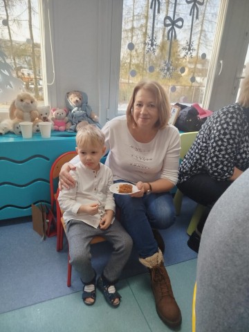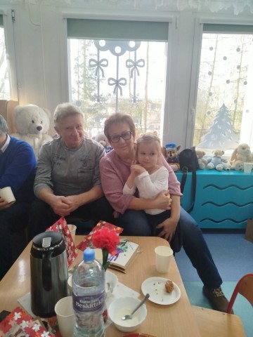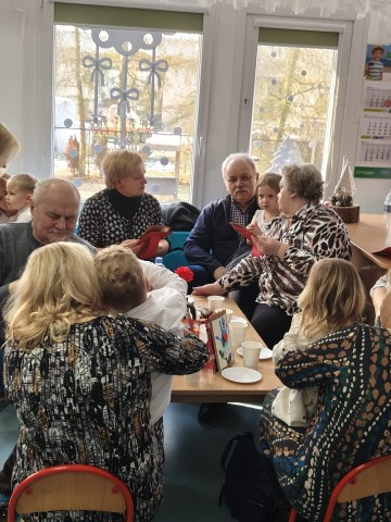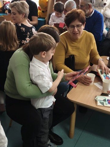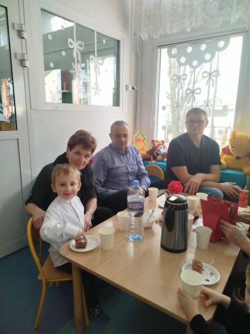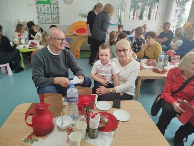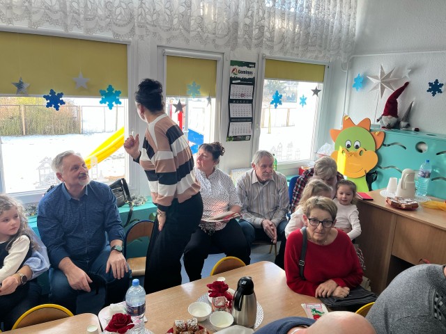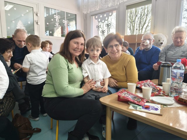Po części artystycznej przedszkolaki wręczyły gościom własnoręcznie wykonane upominki, które były wyrazem wdzięczności, miłości i szacunku. Ten moment dostarczył wielu wzruszeń zarówno dzieciom, jak i zaproszonym gościom. Uroczystość zakończyła się wspólnym poczęstunkiem, podczas którego dzieci, Babcie i Dziadkowie mogli spędzić czas razem, porozmawiać oraz cieszyć się swoją obecnością. Spotkanie było doskonałą okazją do podkreślenia, jak ważna jest wzajemna więź, miłość oraz chęć wspólnego spędzania czasu, które budują poczucie bezpieczeństwa i radości u najmłodszych. Dziękujemy wszystkim Babciom i Dziadkom za obecność, ciepło i uśmiech.