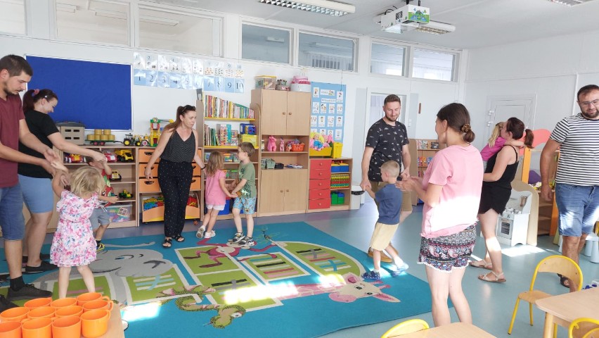 28 sierpnia w naszym przedszkolu odbyły się Dni Adaptacyjne dla nowych przedszkolaków, aby pomóc dzieciom i rodzicom zminimalizować stres i obawy pierwszych dni pobytu w przedszkolu. Uczestniczyli w nich rodzice wraz z dziećmi oraz nauczycielki z przedszkola. Celem zajęć adaptacyjnych w przedszkolu było ułatwienie maluchowi bezstresowego wkroczenia w świat grupy przedszkolnej.