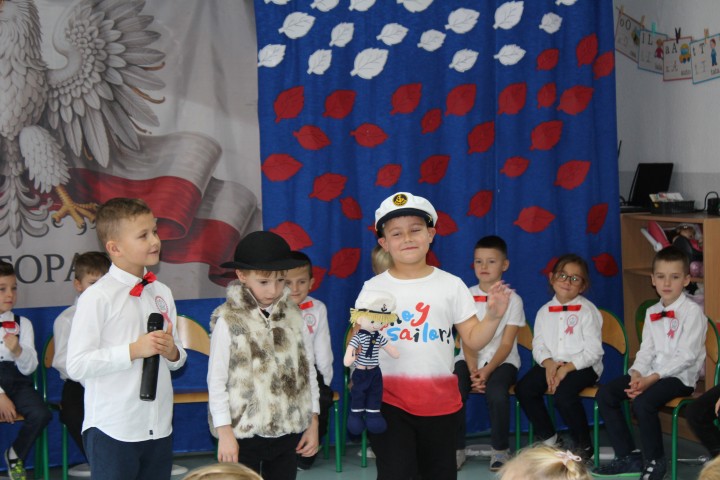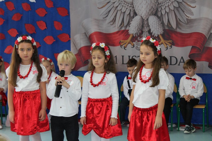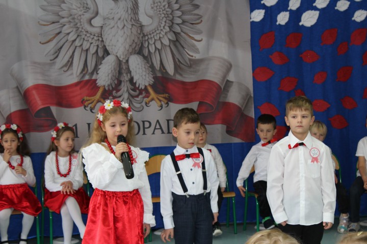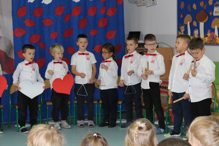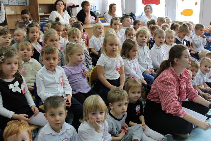 W naszym przedszkolu uroczyście obchodziliśmy Dzień Niepodległości. W dniu 12 listopada wszystkie grupy zebrały się, aby uczcić to wyjątkowe dla Polaków święto. Z tej okazji dzieci z grupy „Pszczółki” przygotowały piękny występ artystyczny. Podczas prezentacji przedszkolaki recytowały patriotyczne wiersze opowiadające o historii Polski.