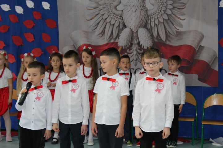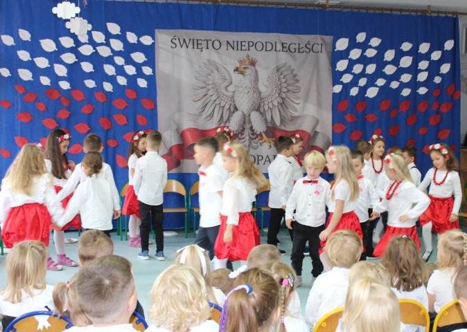 W piosenkach oraz tradycyjnych tańcach, takich jak; „Polonez”, „Zasiali górale” czy „Poszło dziewczę po ziele”, pokazały piękno naszej ojczyzny, jej folkloru i tradycji. Wspólnie i z wielką dumą odśpiewaliśmy również hymn Polski – „Mazurek Dąbrowskiego”. Wydarzenie przebiegło w podniosłej i jednocześnie radosnej atmosferze, a dzieci z zaangażowaniem uczestniczyły w świętowaniu polskiej niepodległości. Obchody 11 listopada już od najmłodszych lat uczą szacunku do kraju ojczystego i symboli narodowych, a także pomagają budować poczucie tożsamości oraz przynależności narodowej.