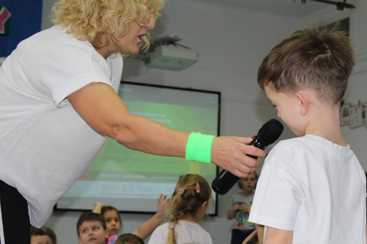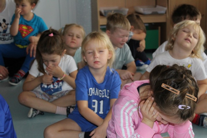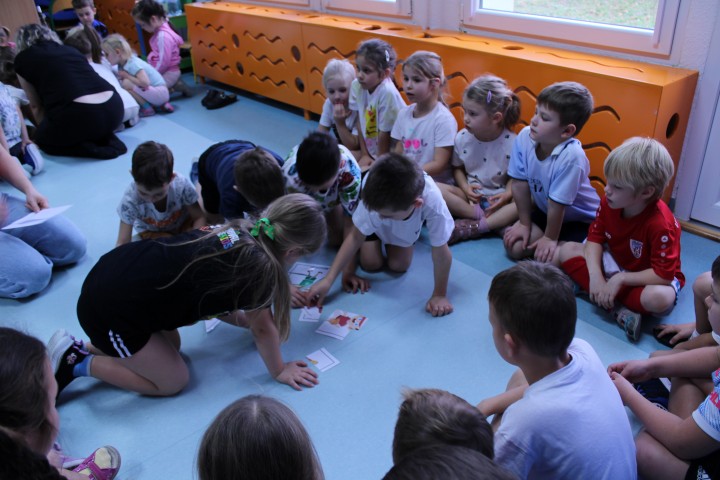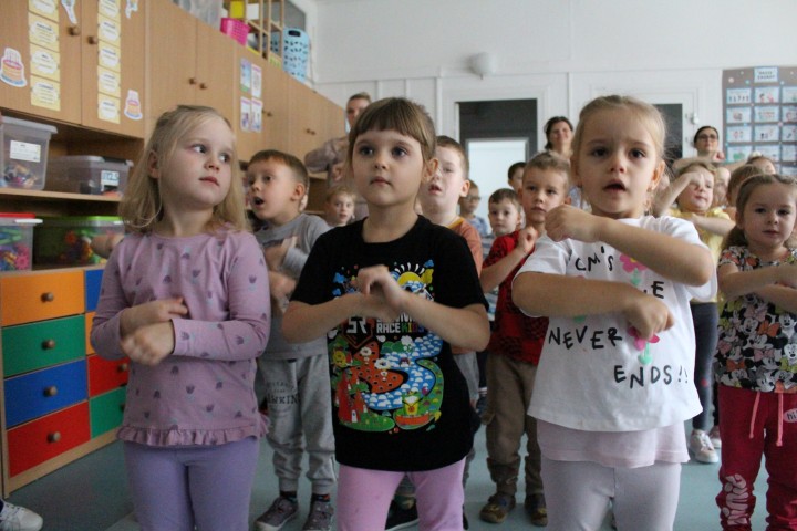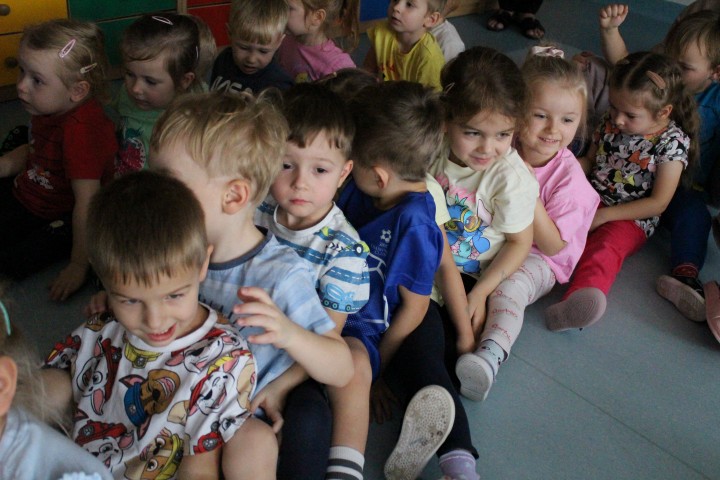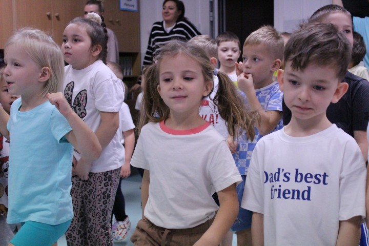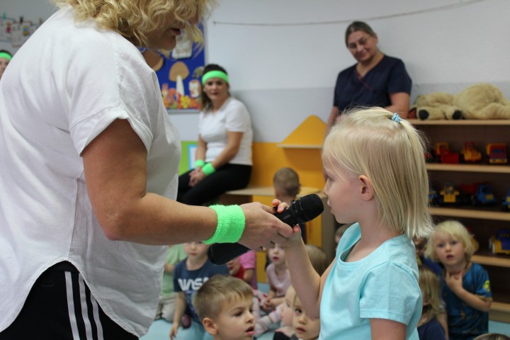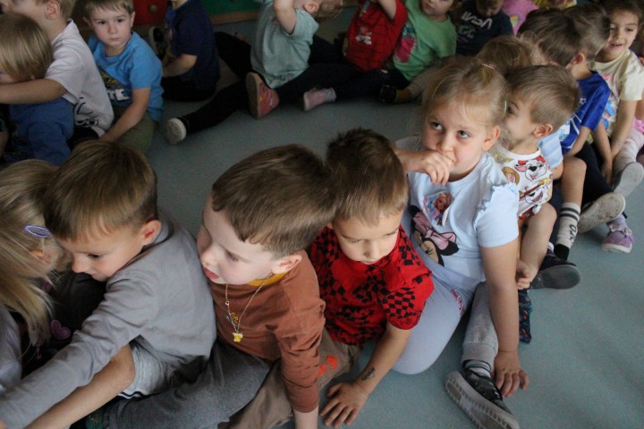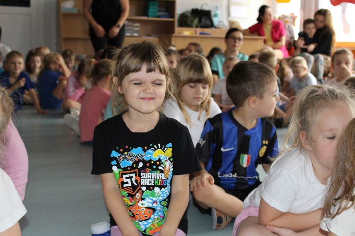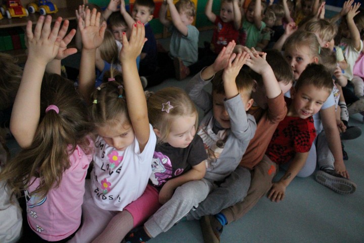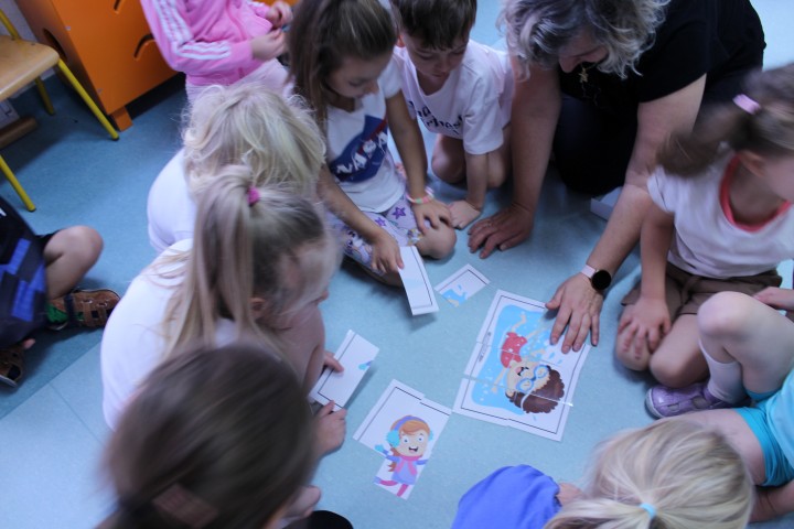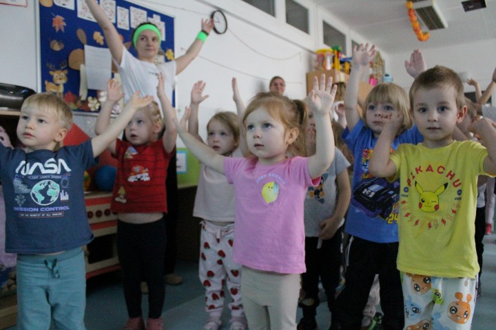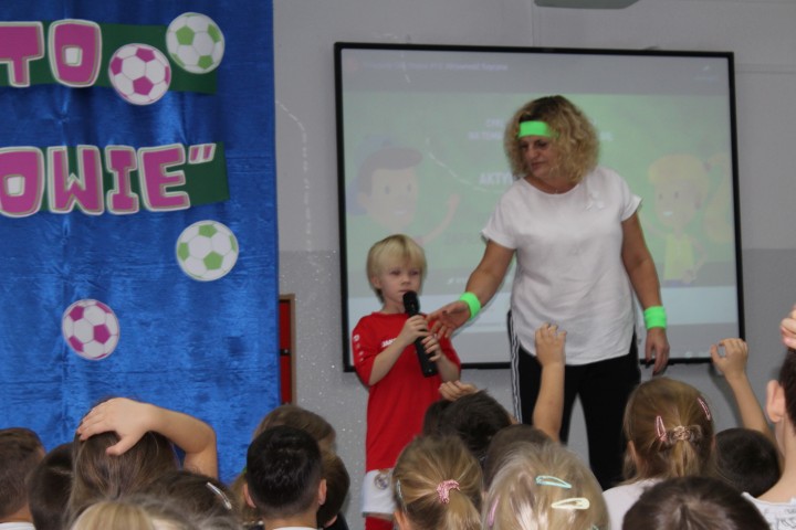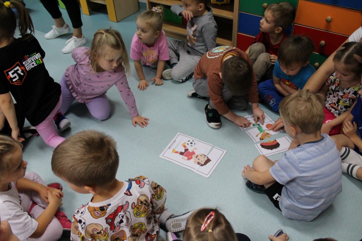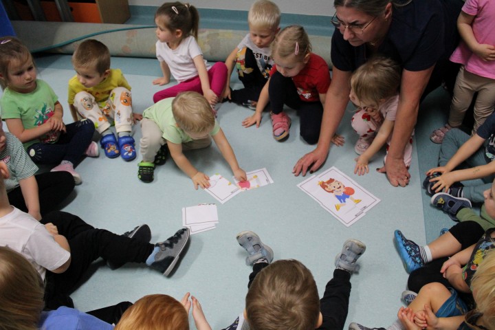 Hasło przewodnie tego dnia to "Ruch to zdrowie - aktywne przedszkolaki”. Nasze przedszkolne panie trenerki: Karolina, Asia, Bożena, Ewelina i Basia zachęcając do aktywności fizycznej przedstawiły film edukacyjny o potrzebie ruchu dla zdrowia. Następnie wszyscy zostaliśmy zaproszeni do zabaw ruchowych tj. ,,Tańcz i baw się z nami”, "Kolanko, kolanko”, Gąsienica”. Pani Karolina zaprezentowała nam strój karate oraz opowiedziała na czym polega trening i dlaczego warto trenować karate. Poznaliśmy różne dyscypliny sportowe układając puzzle w zespołach.