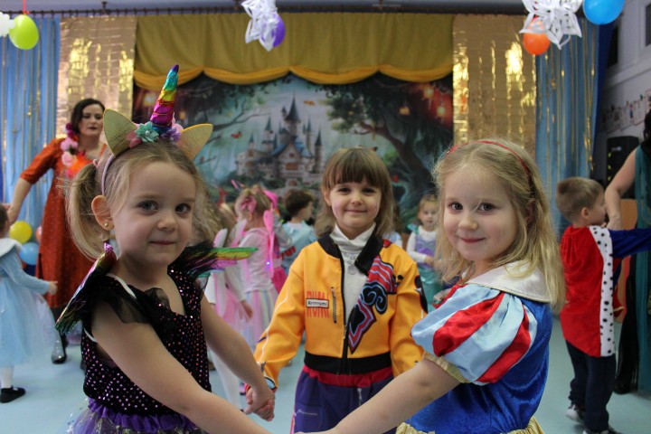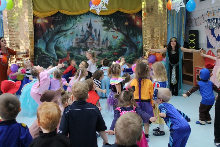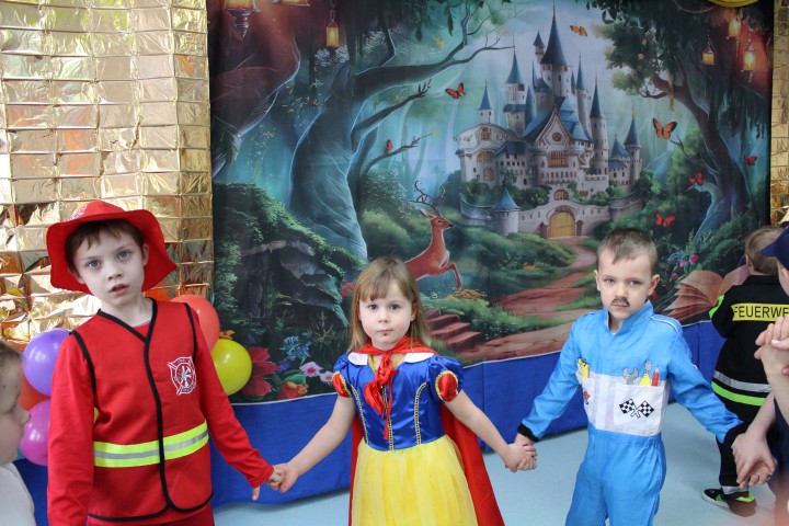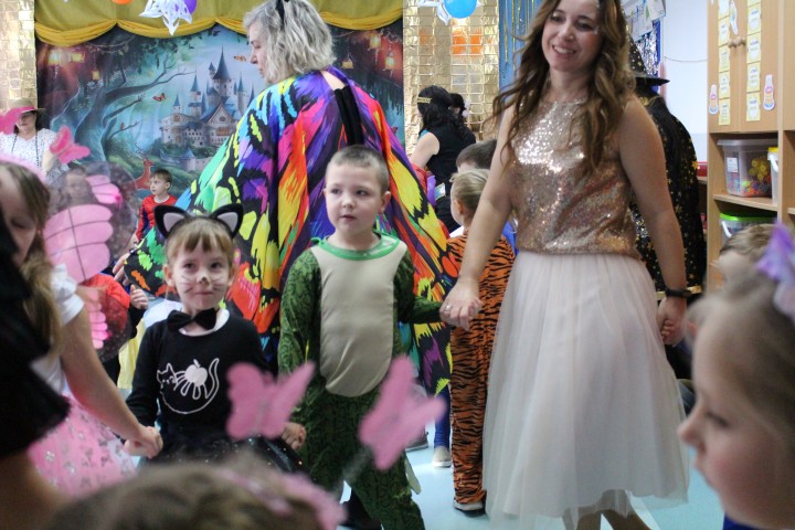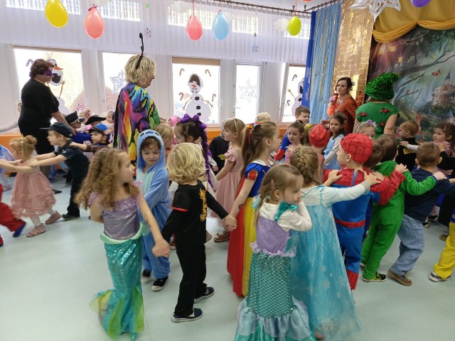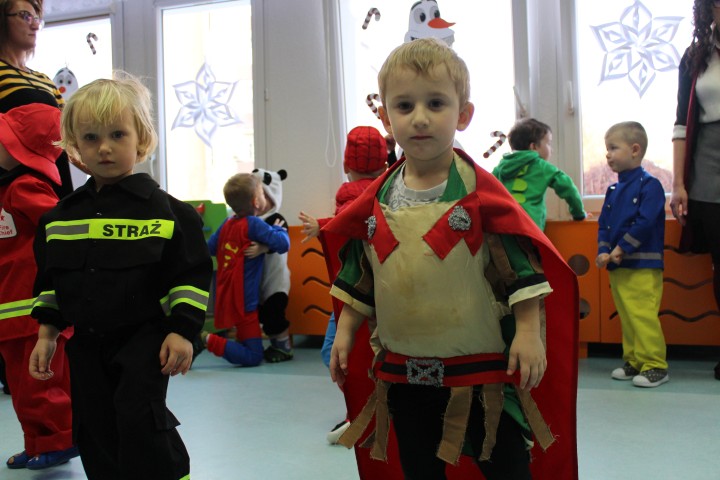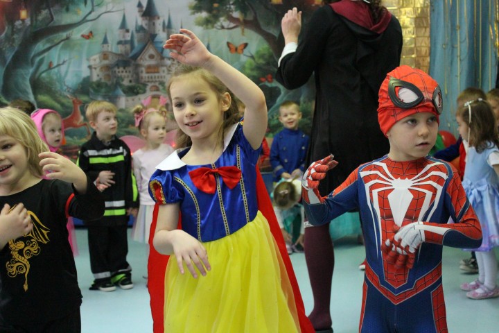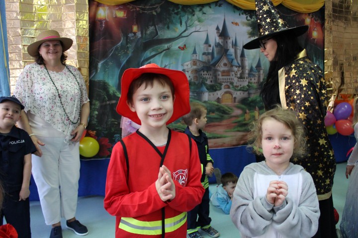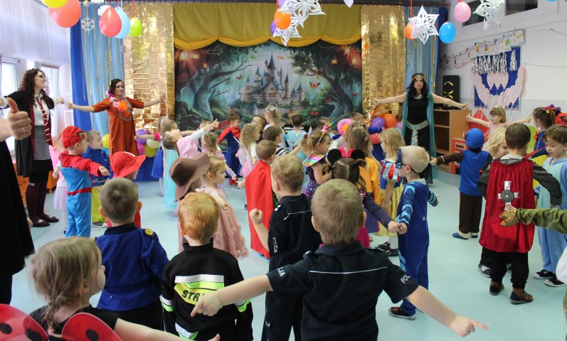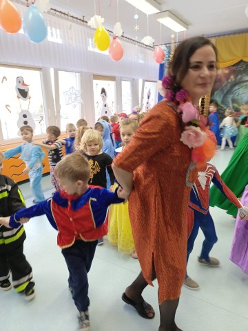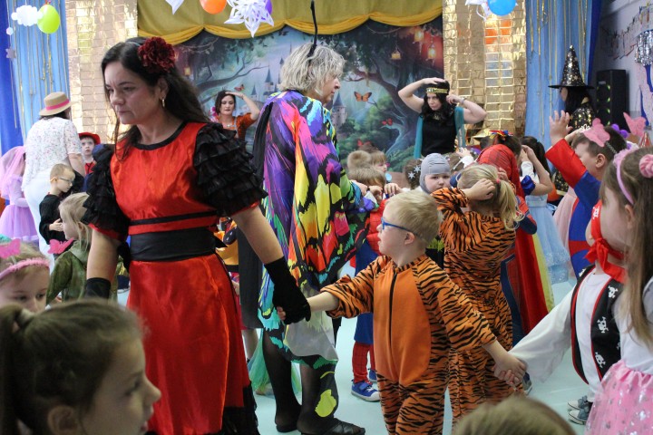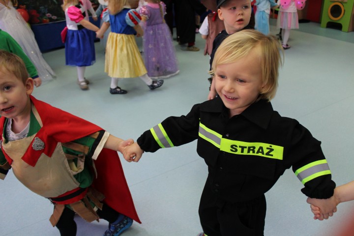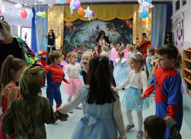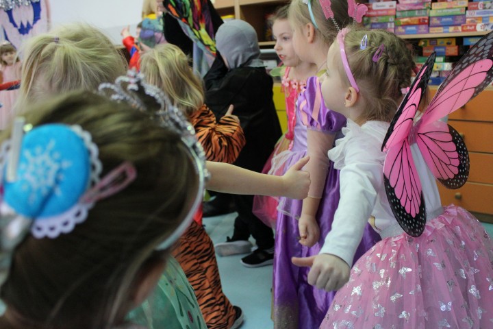 Tradycyjnie w okresie karnawału w naszym przedszkolu odbywa się uroczysty bal. Wspólnie z przedszkolakami wszystkich grup spotkamy się na pięknie udekorowanej sali balowej, pełnej kolorowych balonów oraz karnawałowych ozdób. W tym dniu podziwialiśmy niezwykle ciekawe i pomysłowe przebrania – na parkiecie mogliśmy spotkać bohaterów ulubionych bajek, księżniczki, superbohaterów oraz przedstawicieli różnych zawodów, takich jak strażacy, policjanci czy lekarze.