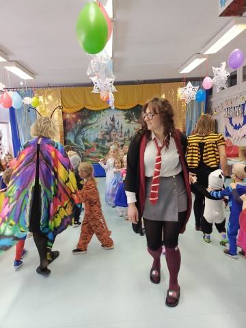 Wszyscy razem bawiliśmy się przy dźwiękach muzyki dziecięcej oraz znanych i lubianych przebojów. Bal Karnawałowy był czasem pełnym uśmiechu, integracji i dobrej zabawy, a jego wspomnienia na długo pozostaną w naszej pamięci.