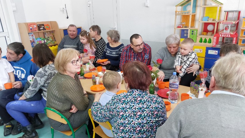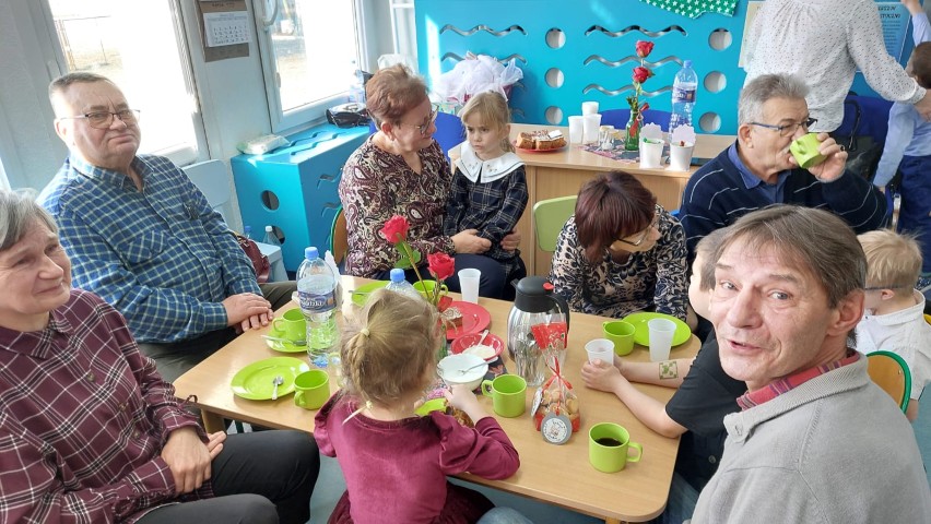Po części artystycznej przedszkolaki wręczyły gościom własnoręcznie wykonane upominki, które były wyrazem wdzięczności, miłości i szacunku. Ten moment dostarczył wielu wzruszeń zarówno dzieciom, jak i zaproszonym gościom. Uroczystość zakończyła się wspólnym poczęstunkiem, podczas którego dzieci, Babcie i Dziadkowie mogli spędzić czas razem, porozmawiać oraz cieszyć się swoją obecnością. Spotkanie było doskonałą okazją do podkreślenia, jak ważna jest wzajemna więź, miłość oraz chęć wspólnego spędzania czasu, które budują poczucie bezpieczeństwa i radości u najmłodszych. Dziękujemy wszystkim Babciom i Dziadkom za obecność, ciepło i uśmiech.