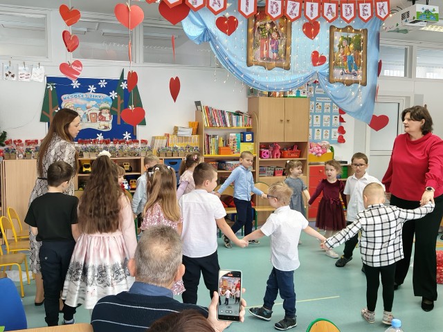 W dniach 21 i 22 stycznia w naszym przedszkolu odbyły się uroczyste obchody Dnia Babci i Dziadka. Był to wyjątkowy czas pełen wzruszeń, radości oraz serdecznych spotkań międzypokoleniowych. We wszystkich grupach dzieci z wielkim zaangażowaniem zaprezentowały przygotowane występy artystyczne — nie zabrakło wierszyków, piosenek, tańców oraz ciepłych życzeń skierowanych do swoich ukochanych Babć i Dziadków.