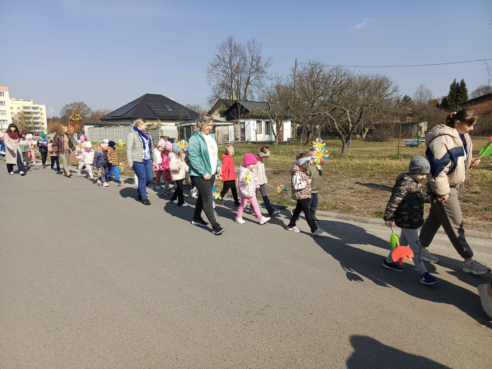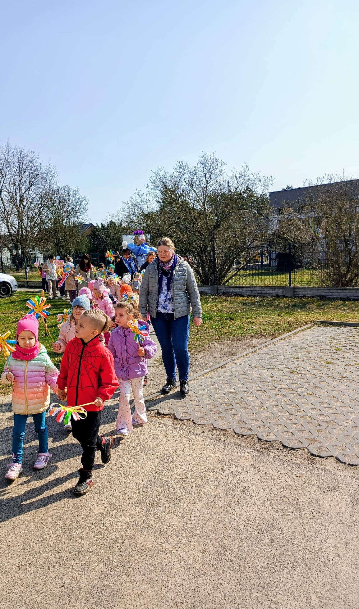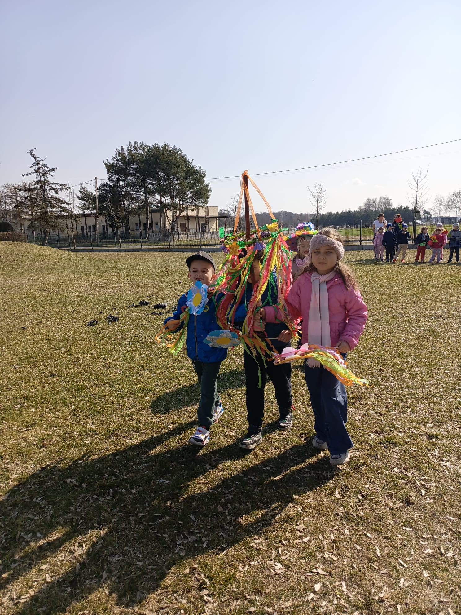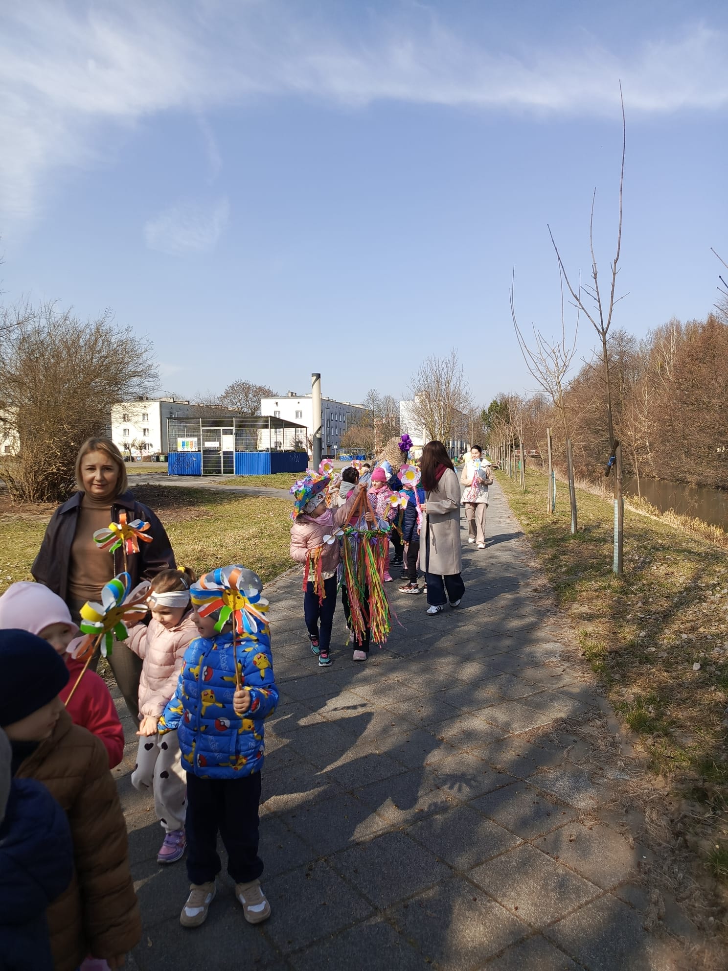 Spotkanie rozpoczęło się od krótkiej rozmowy na temat oznak kończącej się zimy oraz zmian zachodzących w przyrodzie. Najważniejszym punktem wydarzenia było wspólne wyprowadzenie Marzanny – symbolu zimy. Podczas spaceru radośnie śpiewaliśmy piosenki i obserwowaliśmy pierwsze oznaki wiosny w przyrodzie. Całe wydarzenie przebiegło w miłej i radosnej atmosferze, sprzyjając integracji grupy oraz rozwijaniu zainteresowań przyrodniczych. Uroczystość pożegnania zimy była doskonałą okazją do kultywowania tradycji, rozwijania aktywności twórczej dzieci oraz wzmacniania pozytywnych emocji.