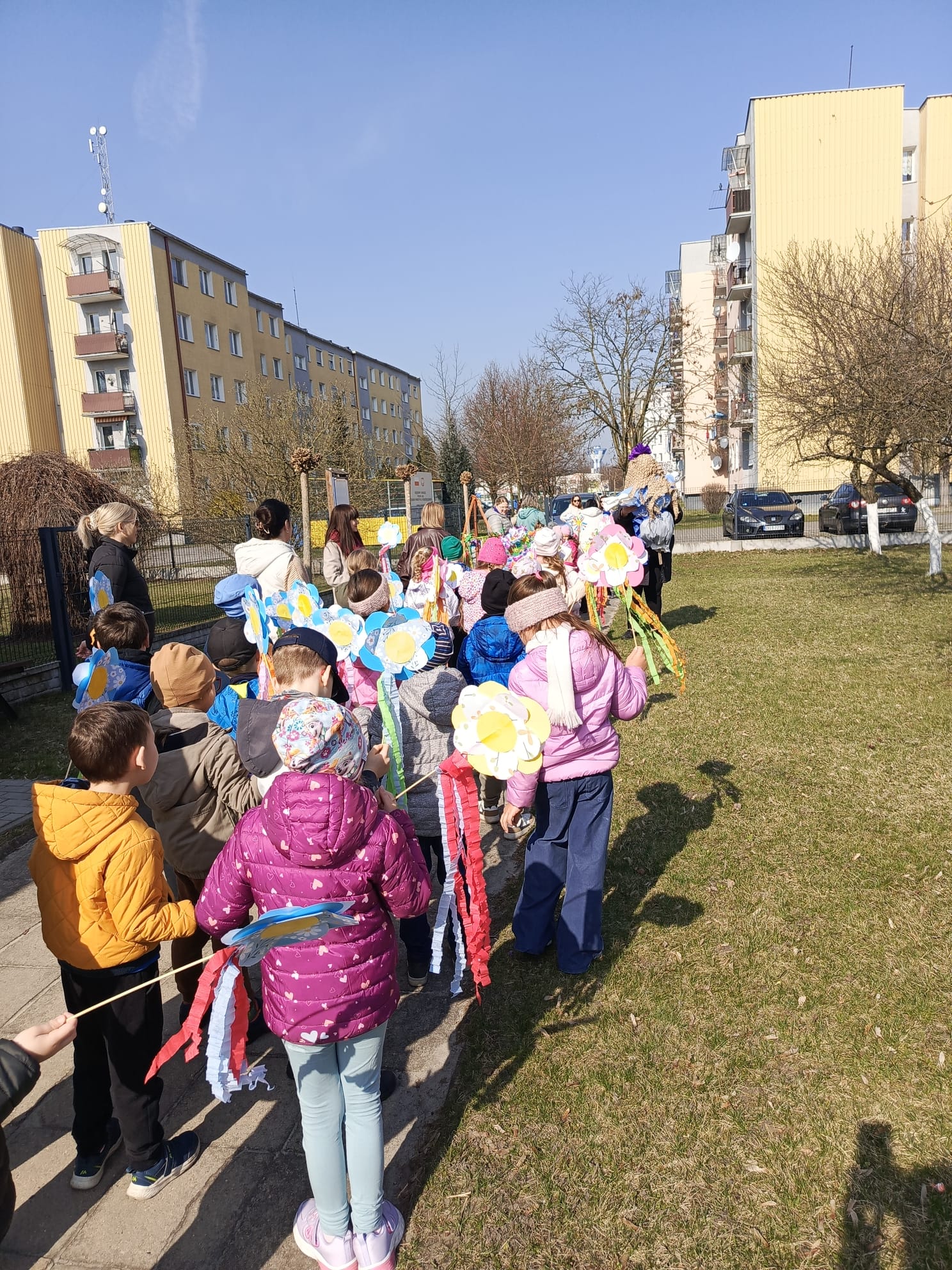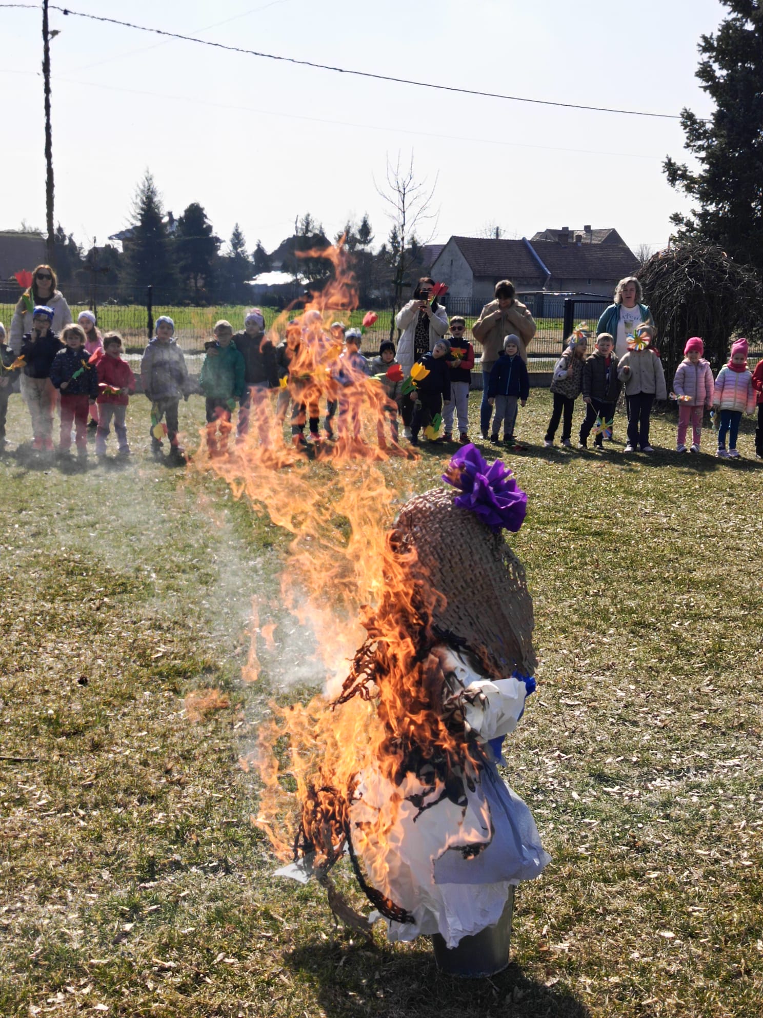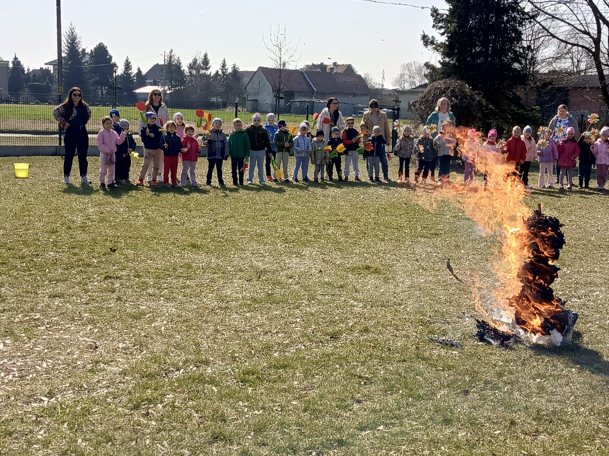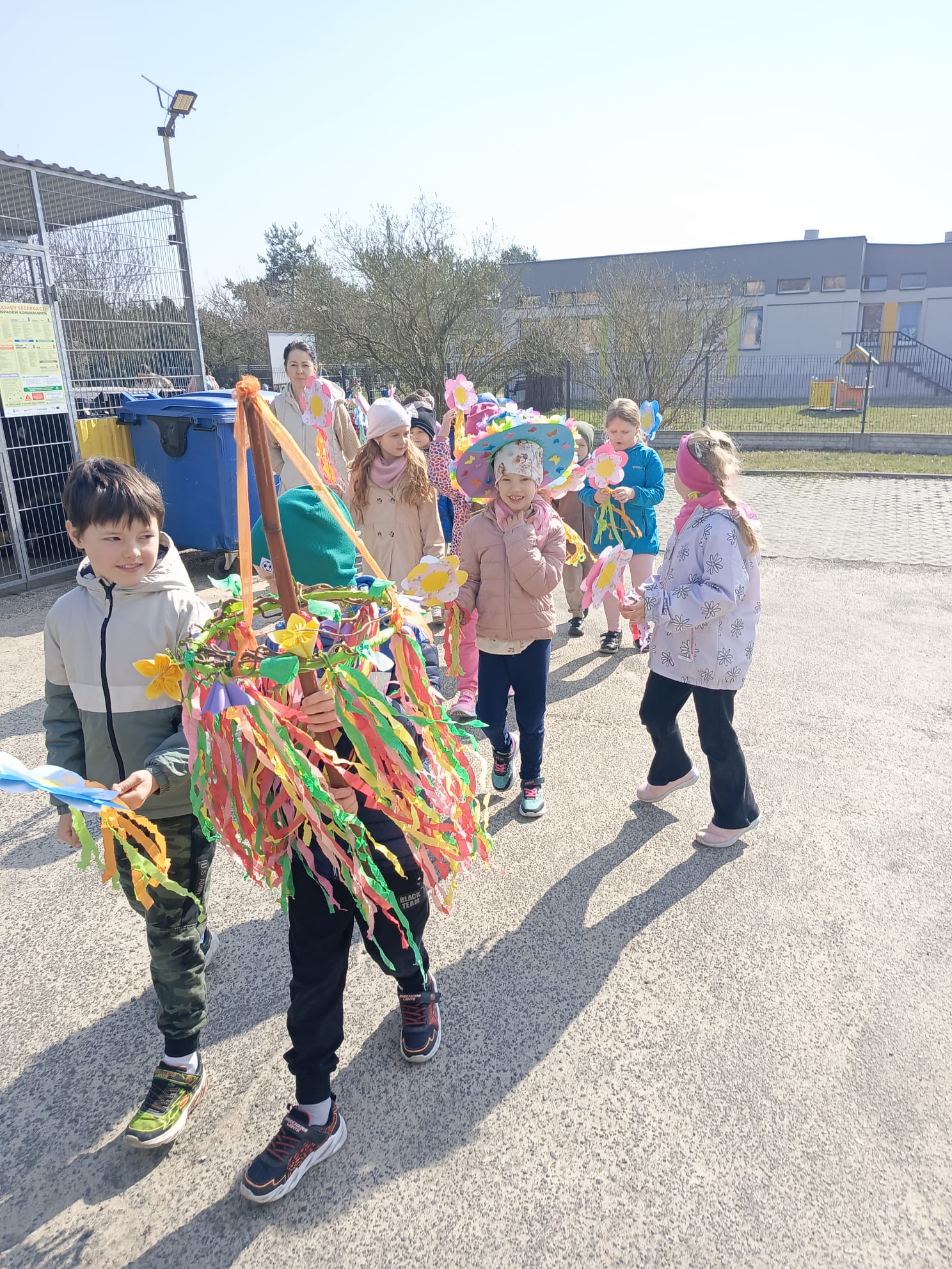 Spotkanie rozpoczęło się od krótkiej rozmowy na temat oznak kończącej się zimy oraz zmian zachodzących w przyrodzie. Najważniejszym punktem wydarzenia było wspólne wyprowadzenie Marzanny – symbolu zimy. Podczas spaceru radośnie śpiewaliśmy piosenki i obserwowaliśmy pierwsze oznaki wiosny w przyrodzie. Całe wydarzenie przebiegło w miłej i radosnej atmosferze, sprzyjając integracji grupy oraz rozwijaniu zainteresowań przyrodniczych. Uroczystość pożegnania zimy była doskonałą okazją do kultywowania tradycji, rozwijania aktywności twórczej dzieci oraz wzmacniania pozytywnych emocji.