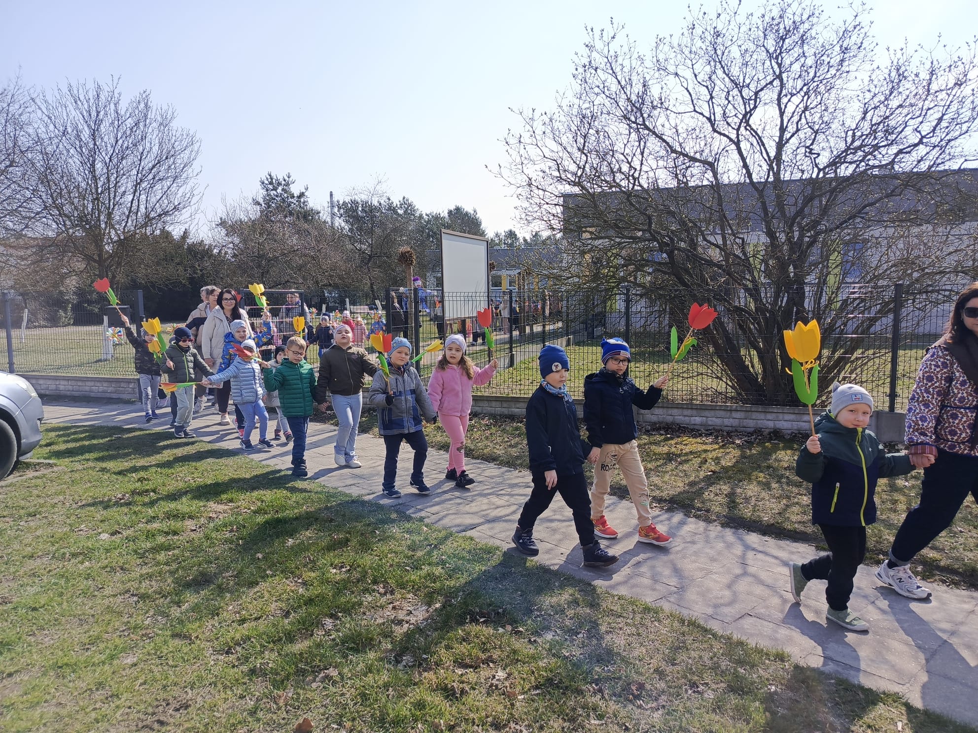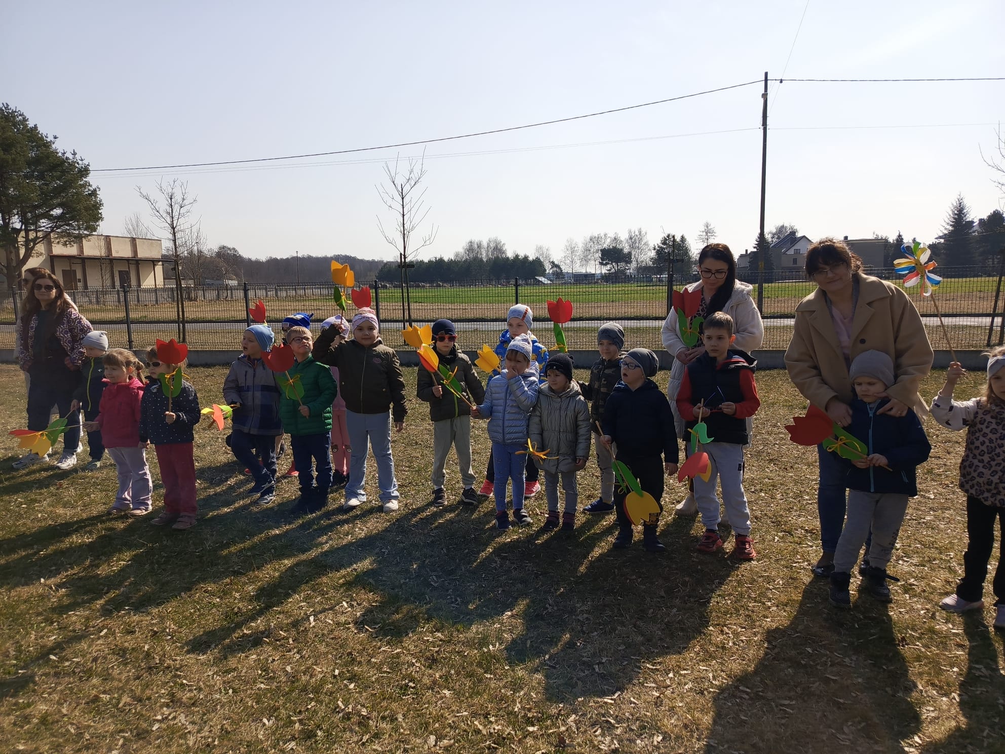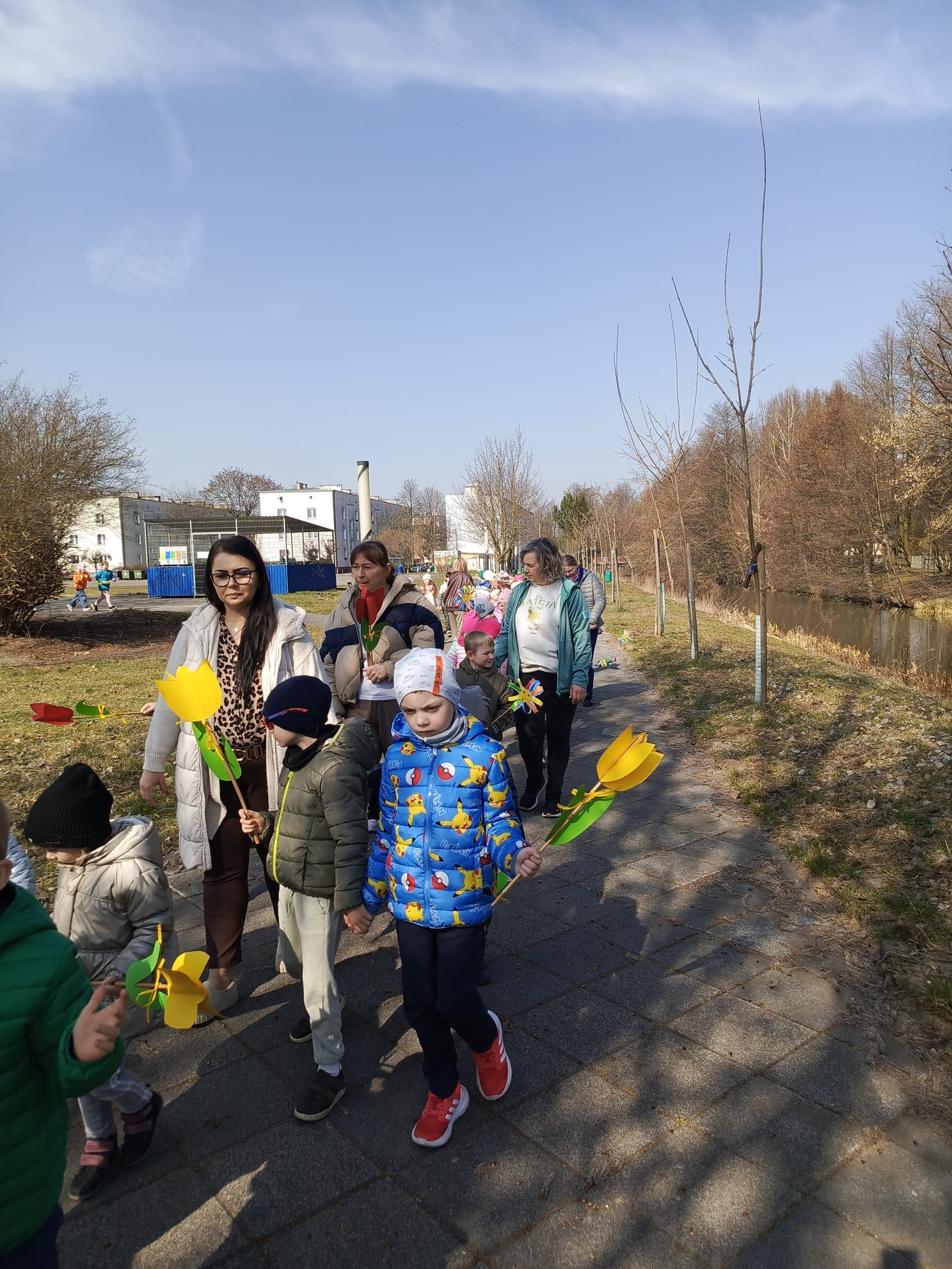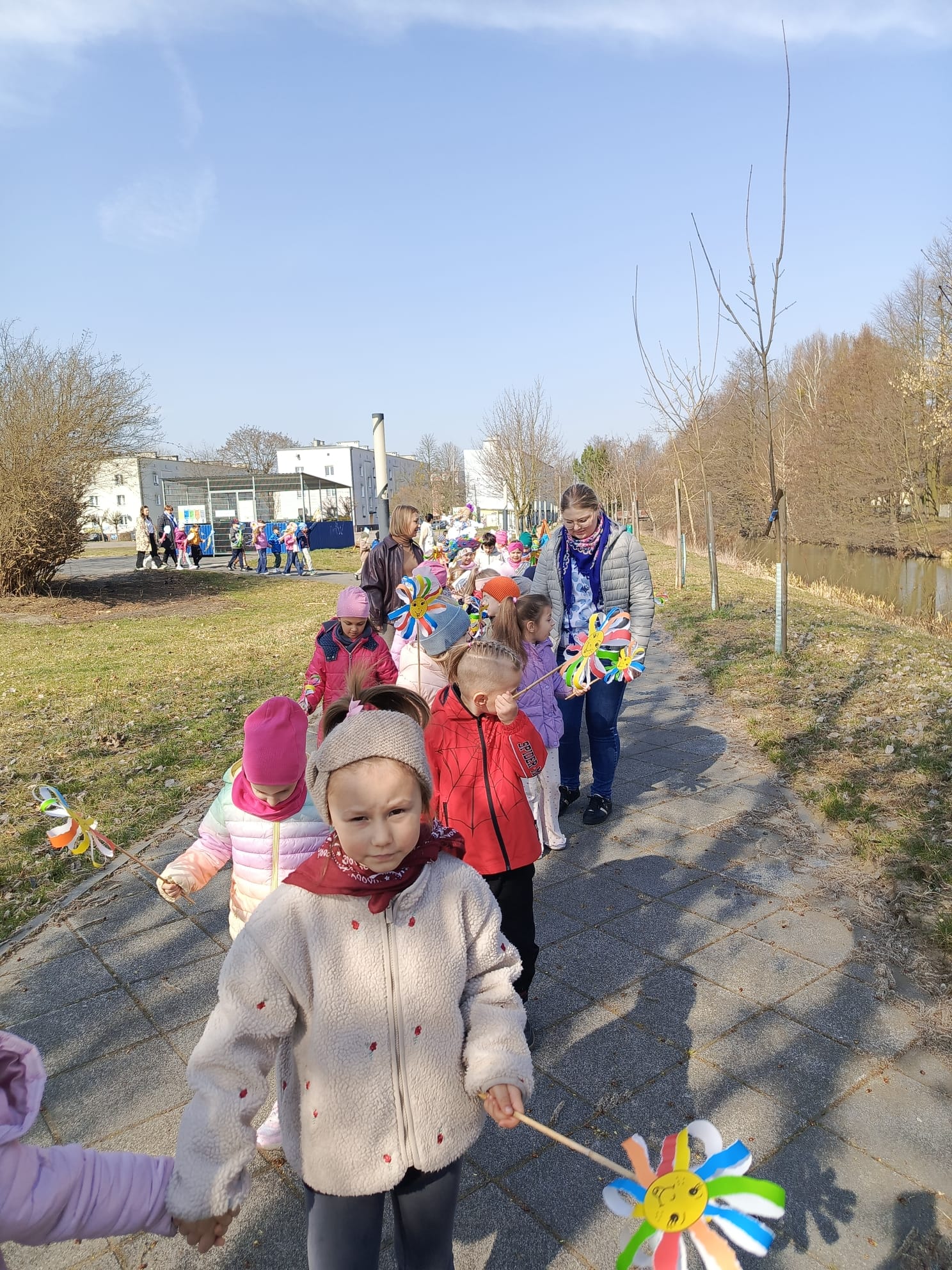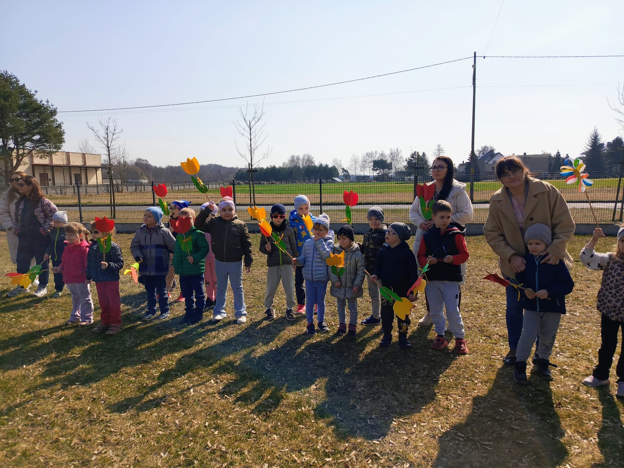 Spotkanie rozpoczęło się od krótkiej rozmowy na temat oznak kończącej się zimy oraz zmian zachodzących w przyrodzie. Najważniejszym punktem wydarzenia było wspólne wyprowadzenie Marzanny – symbolu zimy. Podczas spaceru radośnie śpiewaliśmy piosenki i obserwowaliśmy pierwsze oznaki wiosny w przyrodzie. Całe wydarzenie przebiegło w miłej i radosnej atmosferze, sprzyjając integracji grupy oraz rozwijaniu zainteresowań przyrodniczych. Uroczystość pożegnania zimy była doskonałą okazją do kultywowania tradycji, rozwijania aktywności twórczej dzieci oraz wzmacniania pozytywnych emocji.