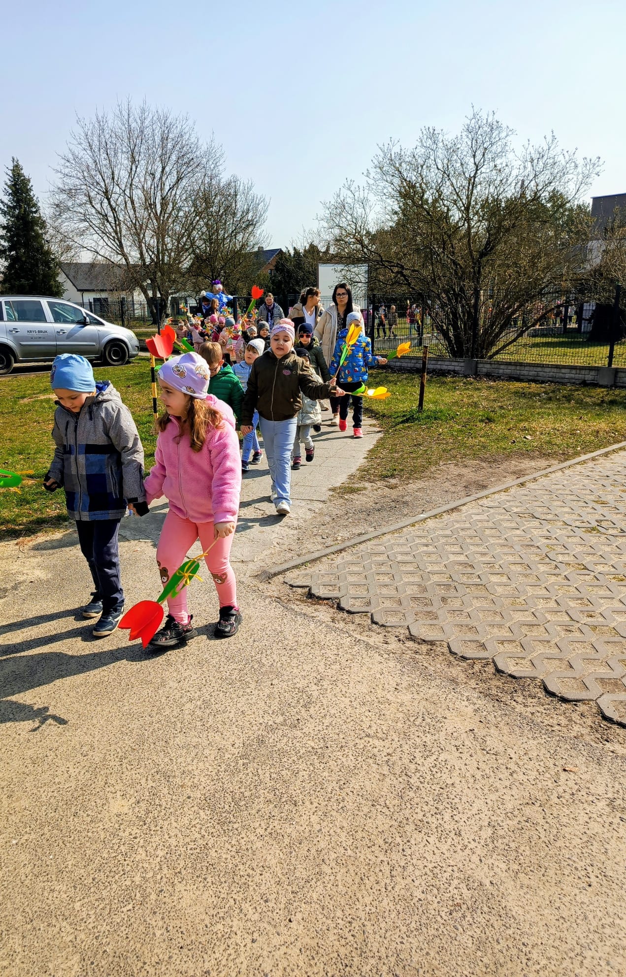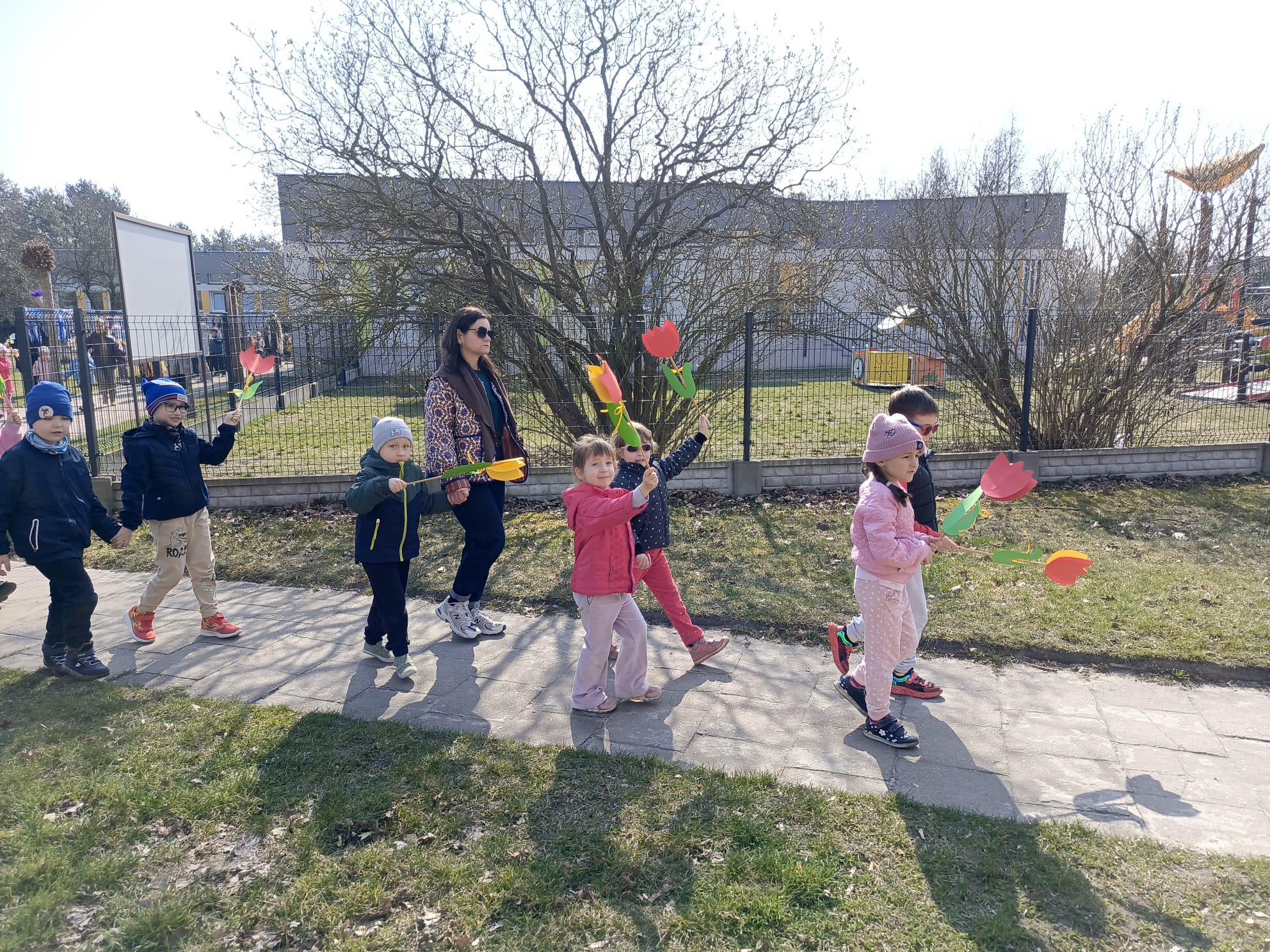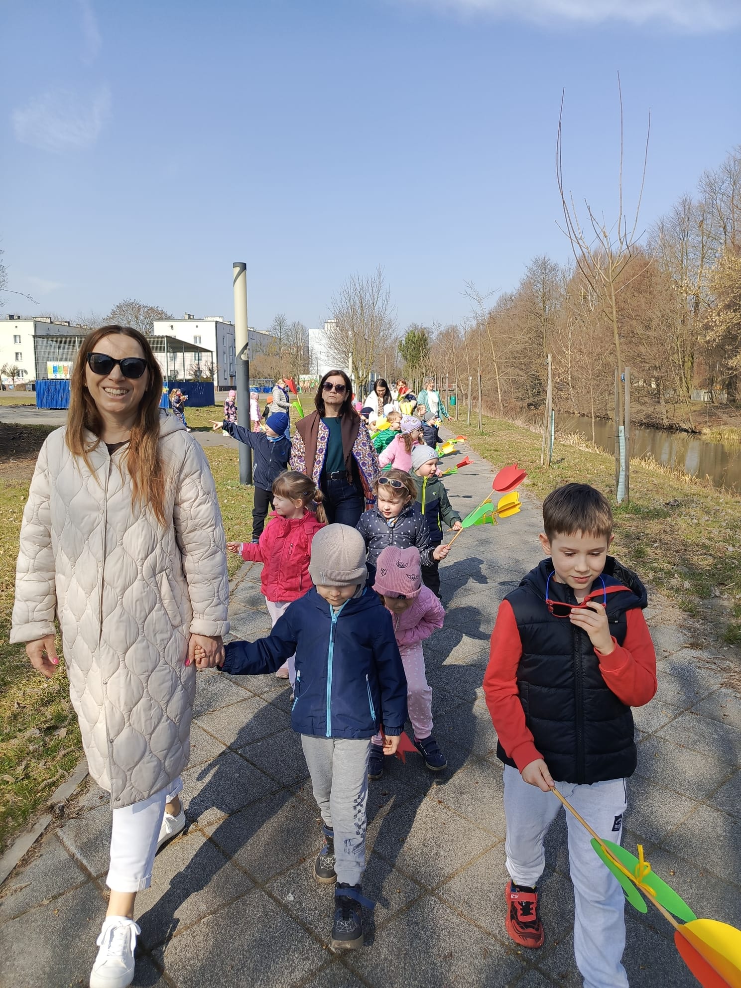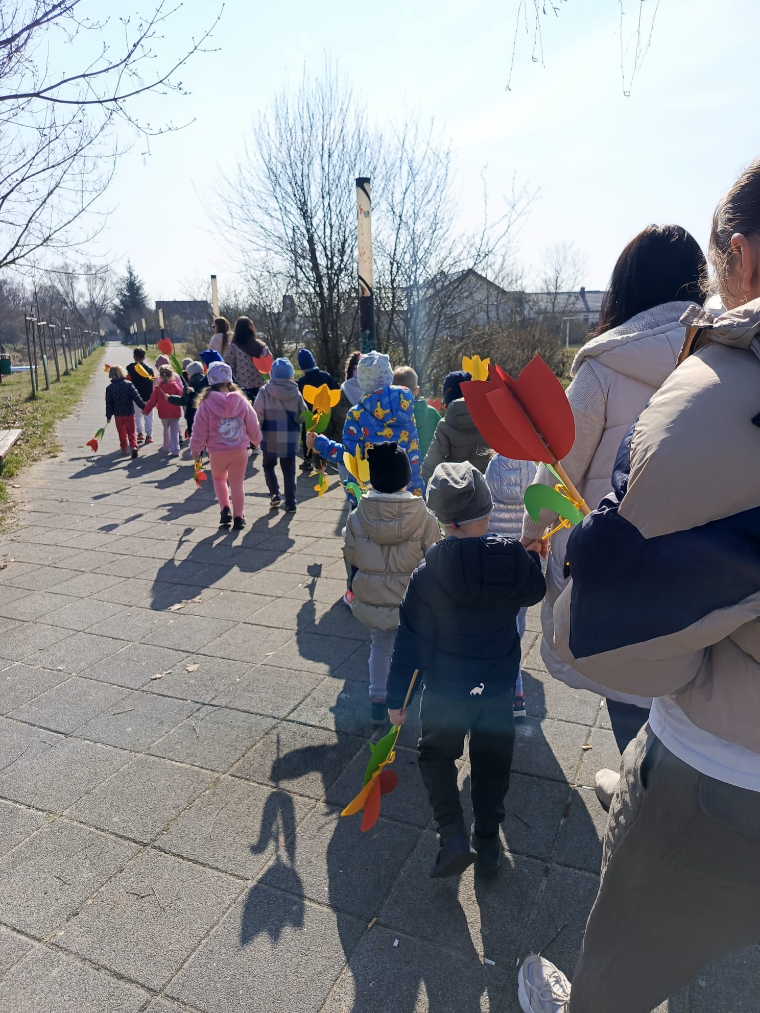 Spotkanie rozpoczęło się od krótkiej rozmowy na temat oznak kończącej się zimy oraz zmian zachodzących w przyrodzie. Najważniejszym punktem wydarzenia było wspólne wyprowadzenie Marzanny – symbolu zimy. Podczas spaceru radośnie śpiewaliśmy piosenki i obserwowaliśmy pierwsze oznaki wiosny w przyrodzie. Całe wydarzenie przebiegło w miłej i radosnej atmosferze, sprzyjając integracji grupy oraz rozwijaniu zainteresowań przyrodniczych. Uroczystość pożegnania zimy była doskonałą okazją do kultywowania tradycji, rozwijania aktywności twórczej dzieci oraz wzmacniania pozytywnych emocji.