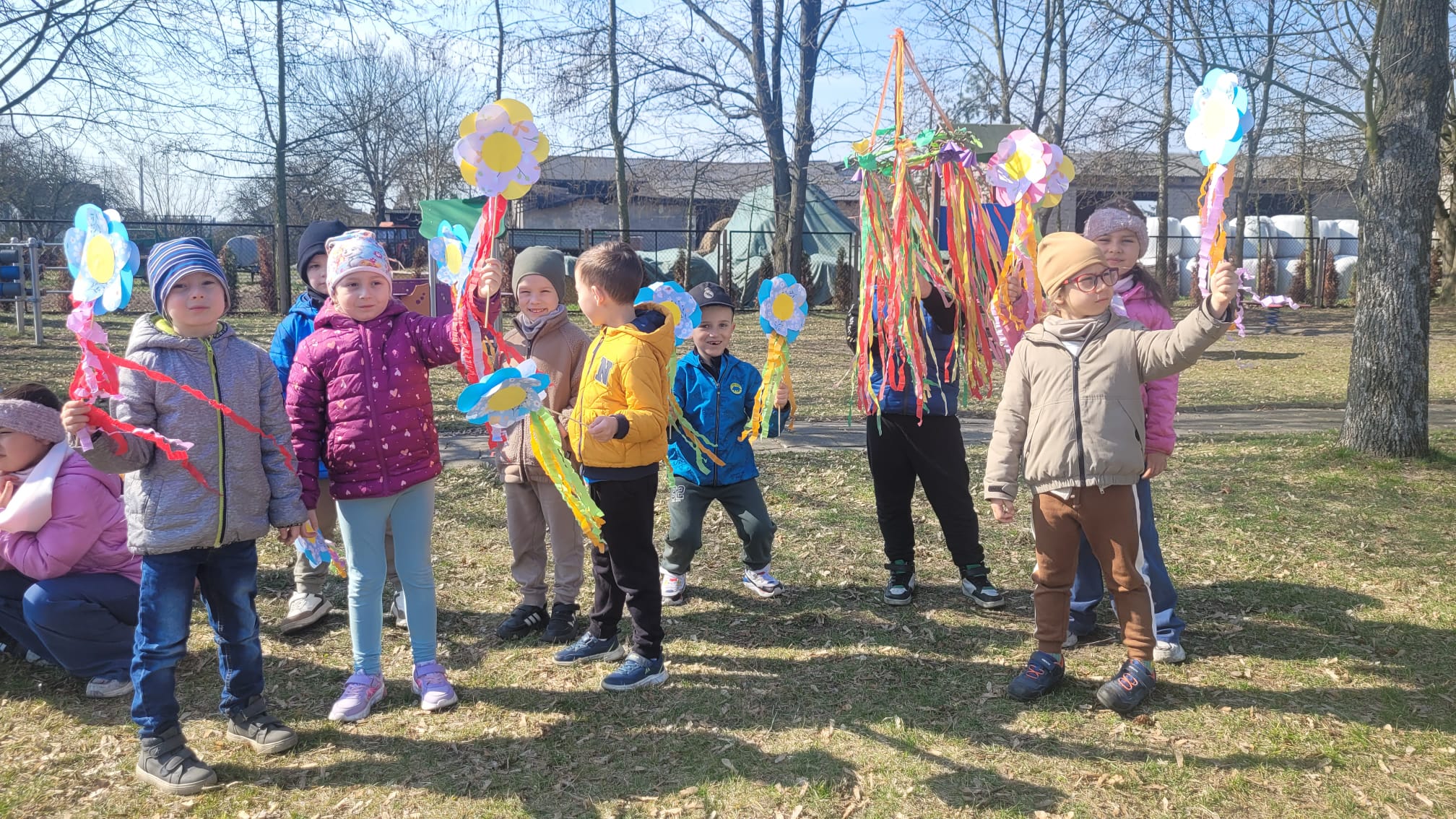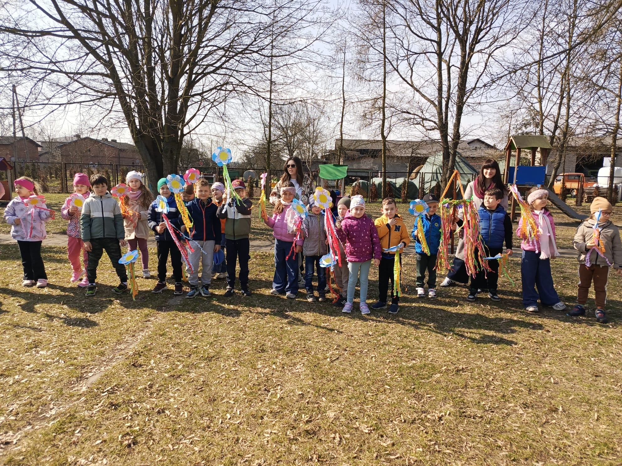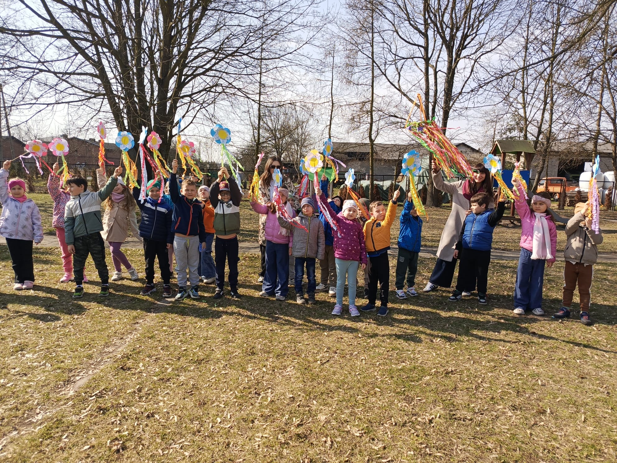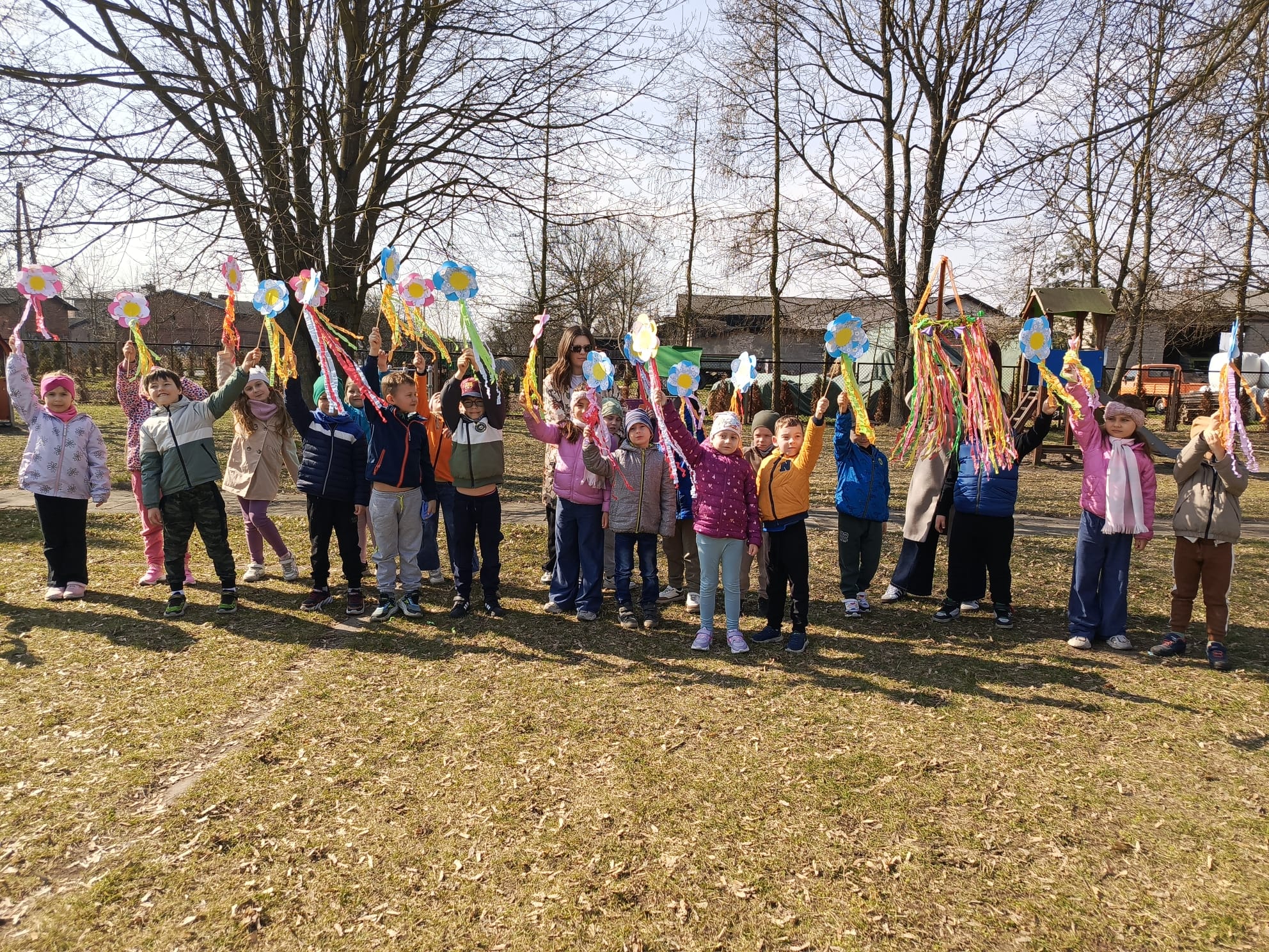 Dnia 23 marca 2026 roku w naszym przedszkolu odbyła się uroczystość pożegnania zimy i powitania wiosny. Wydarzenie to było związane z tradycją ludową topienia Marzanny oraz obchodami pierwszych dni wiosny. W tym dniu przyszliśmy ubrani w kolorowe, wiosenne stroje. Podczas zajęć w przedszkolu samodzielnie wykonaliśmy ozdoby – kwiaty, opaski oraz inne symbole wiosny.