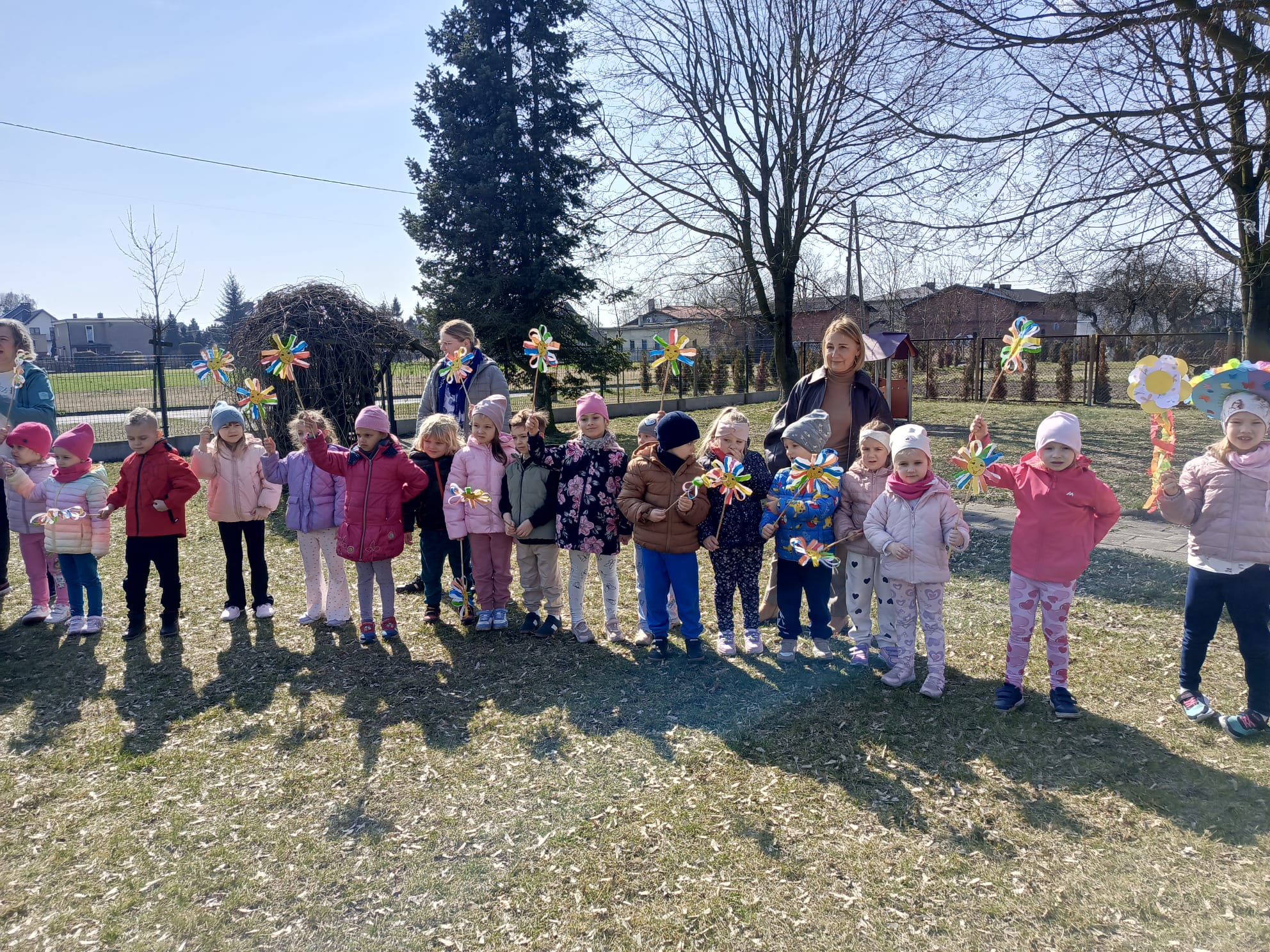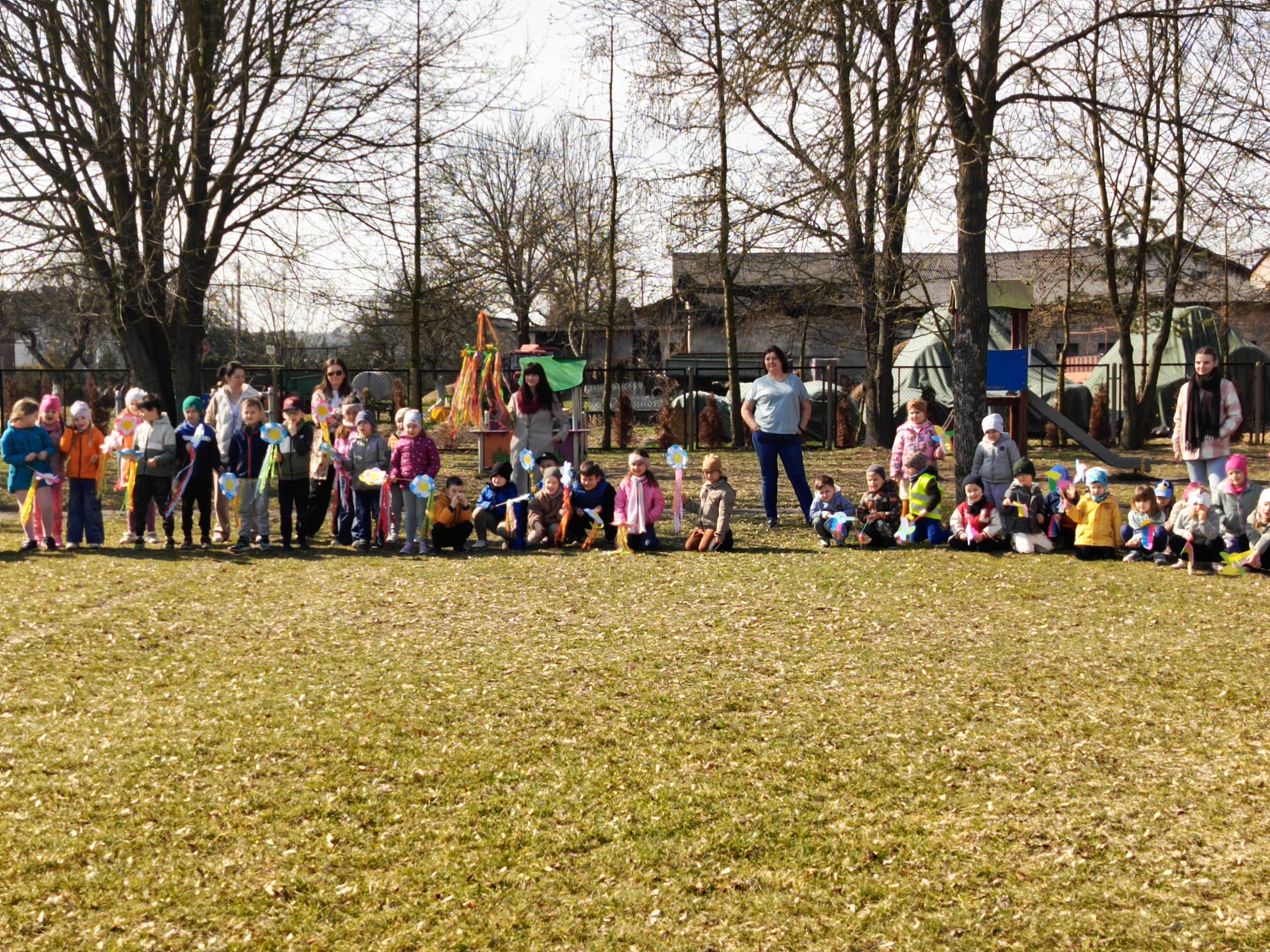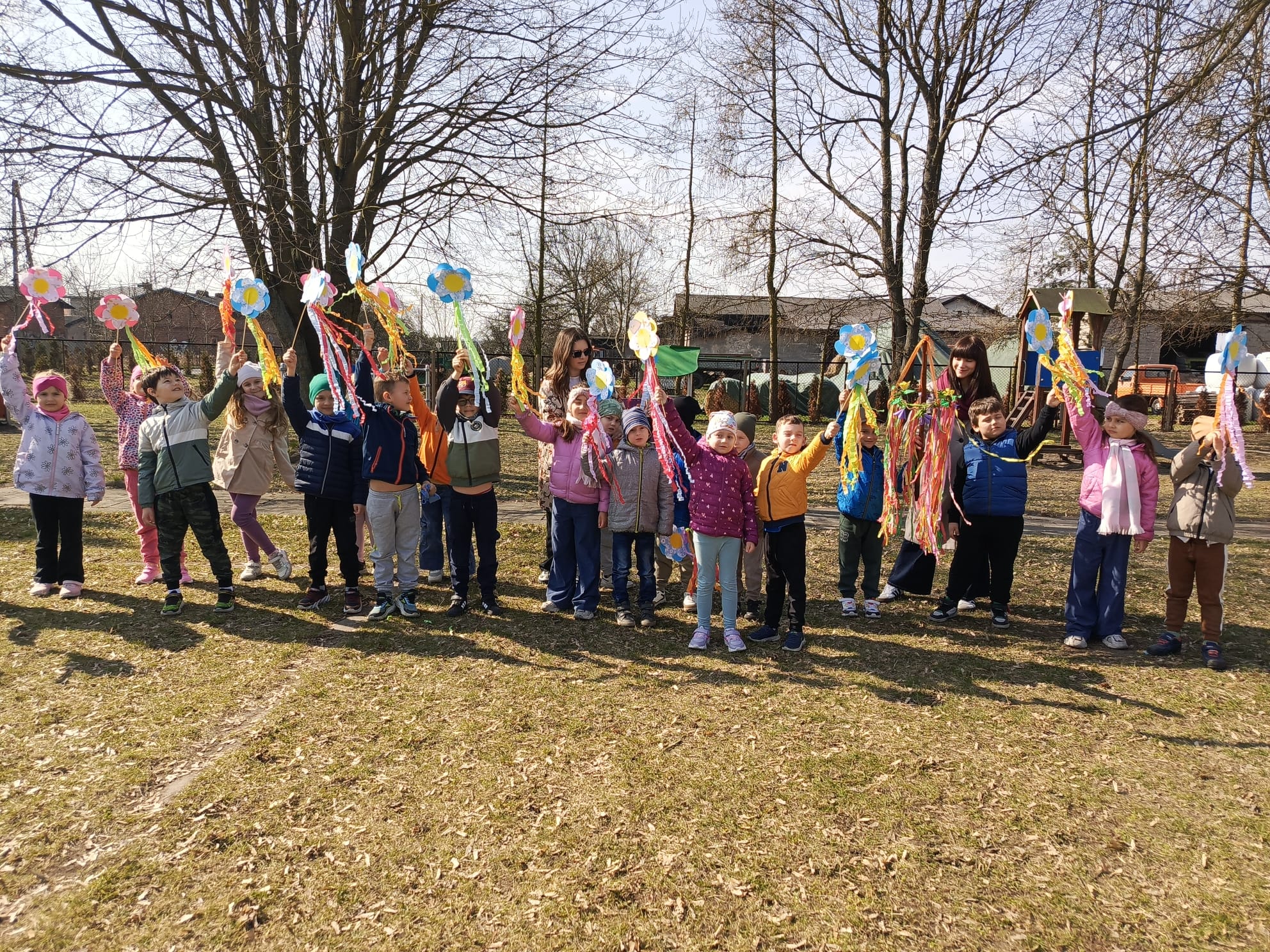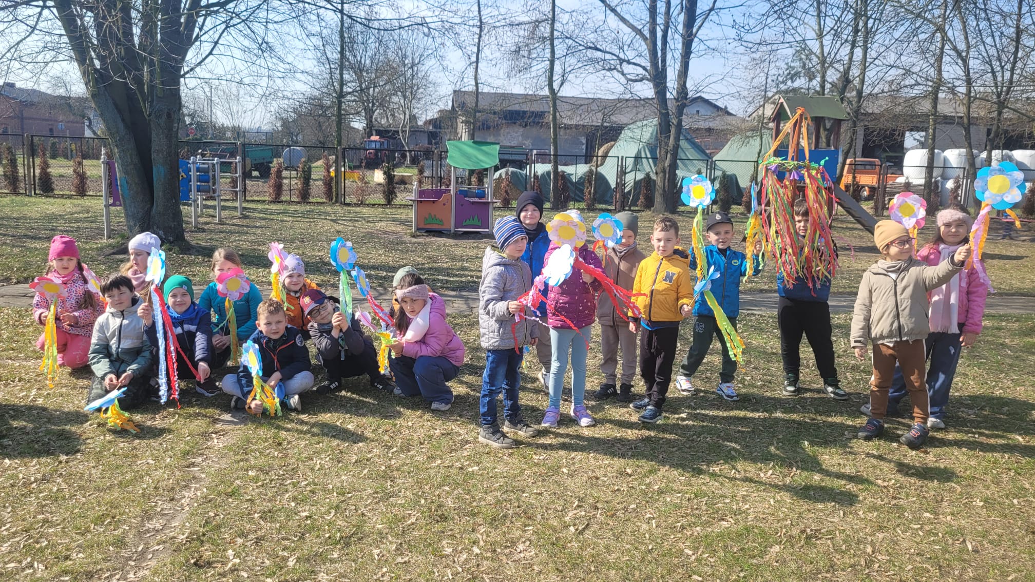 Dnia 23 marca 2026 roku w naszym przedszkolu odbyła się uroczystość pożegnania zimy i powitania wiosny. Wydarzenie to było związane z tradycją ludową topienia Marzanny oraz obchodami pierwszych dni wiosny. W tym dniu przyszliśmy ubrani w kolorowe, wiosenne stroje. Podczas zajęć w przedszkolu samodzielnie wykonaliśmy ozdoby – kwiaty, opaski oraz inne symbole wiosny.