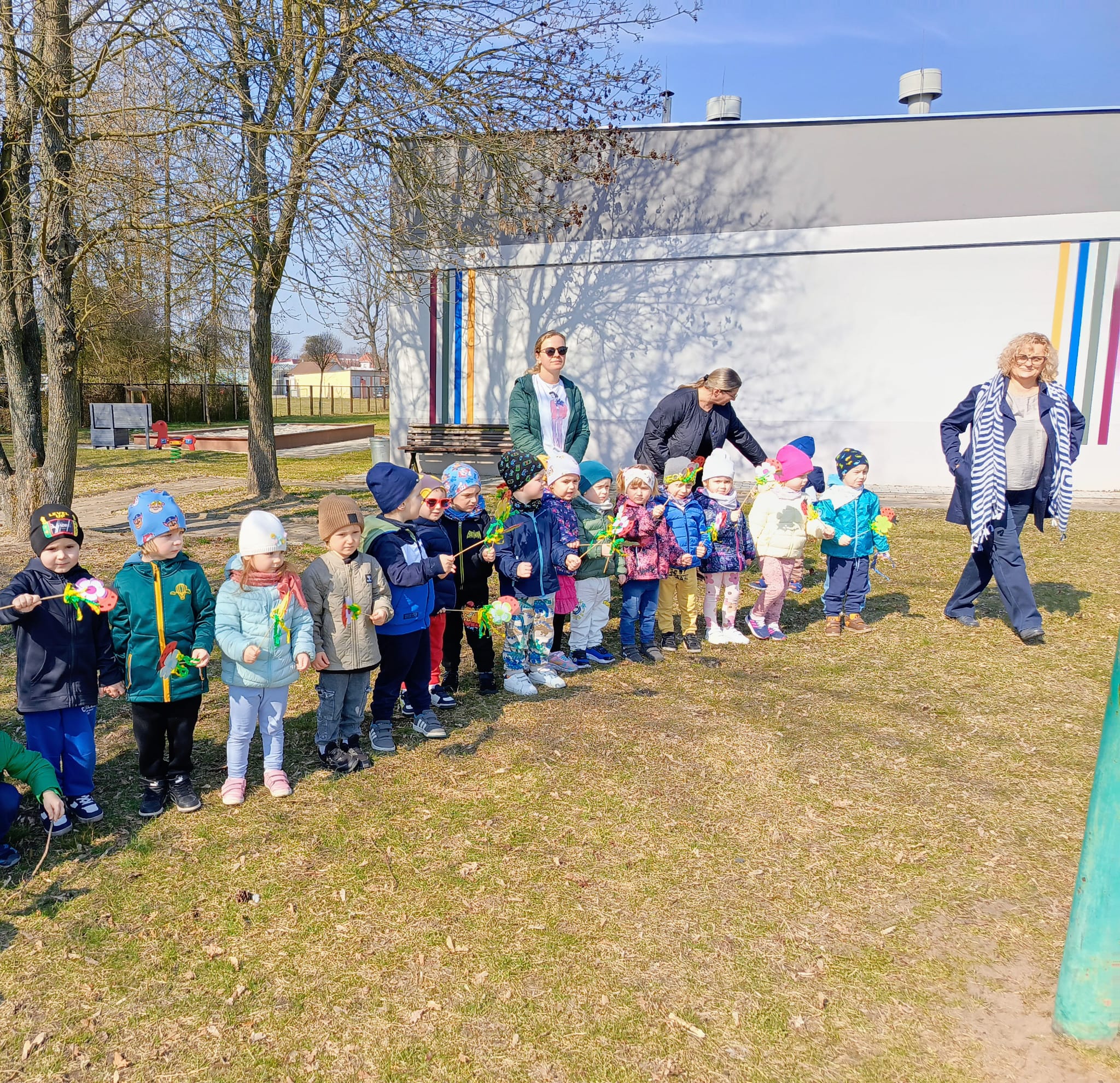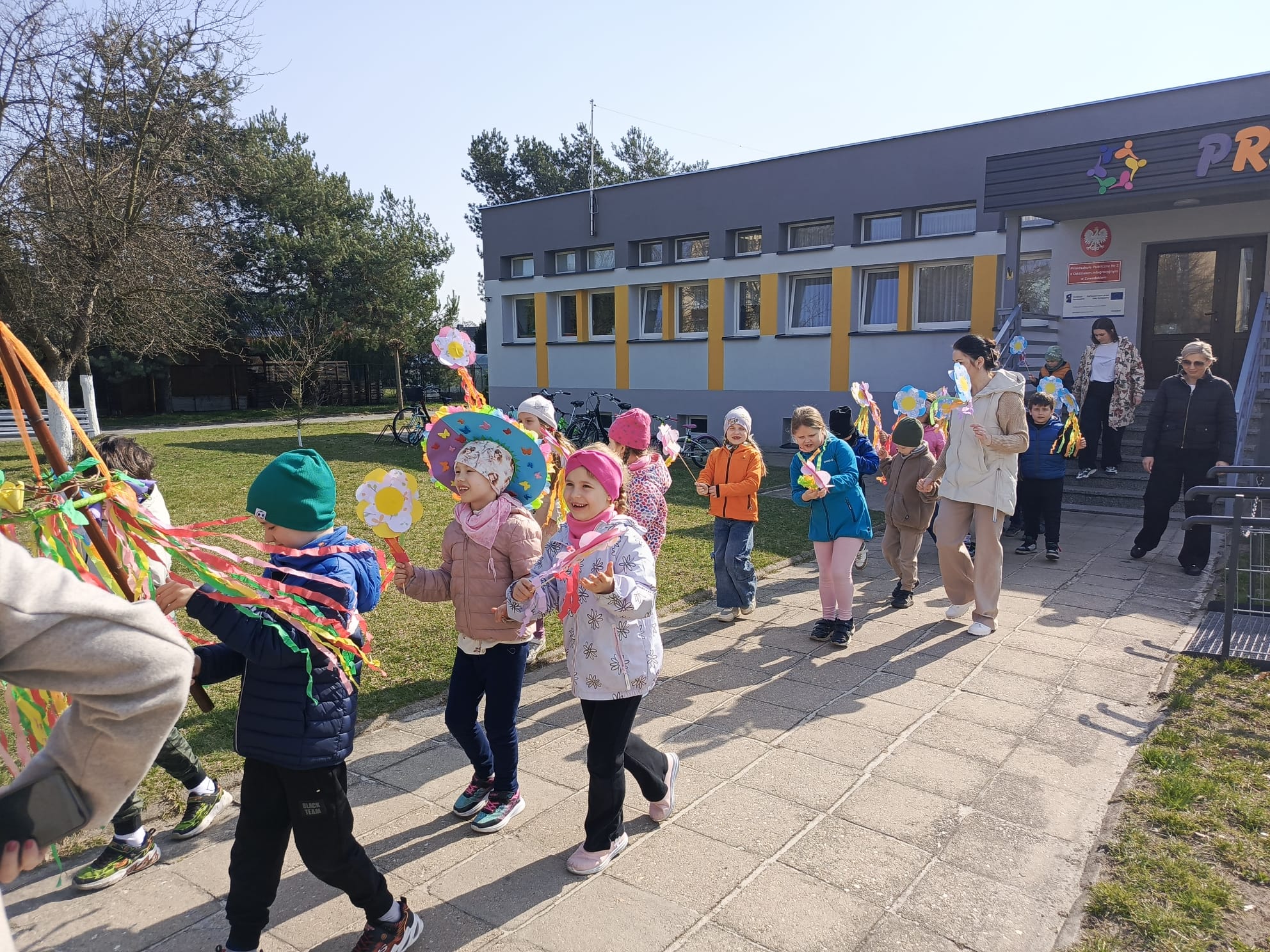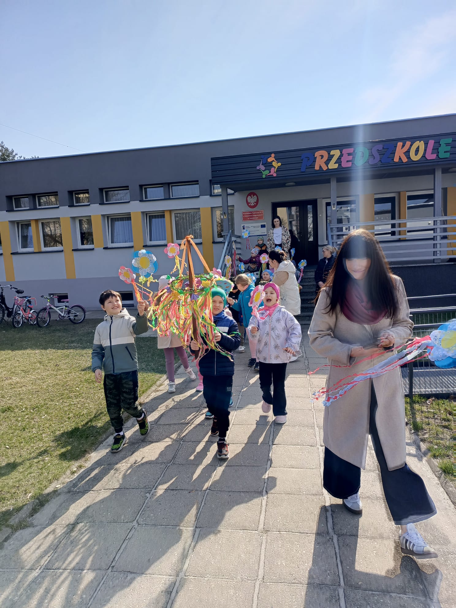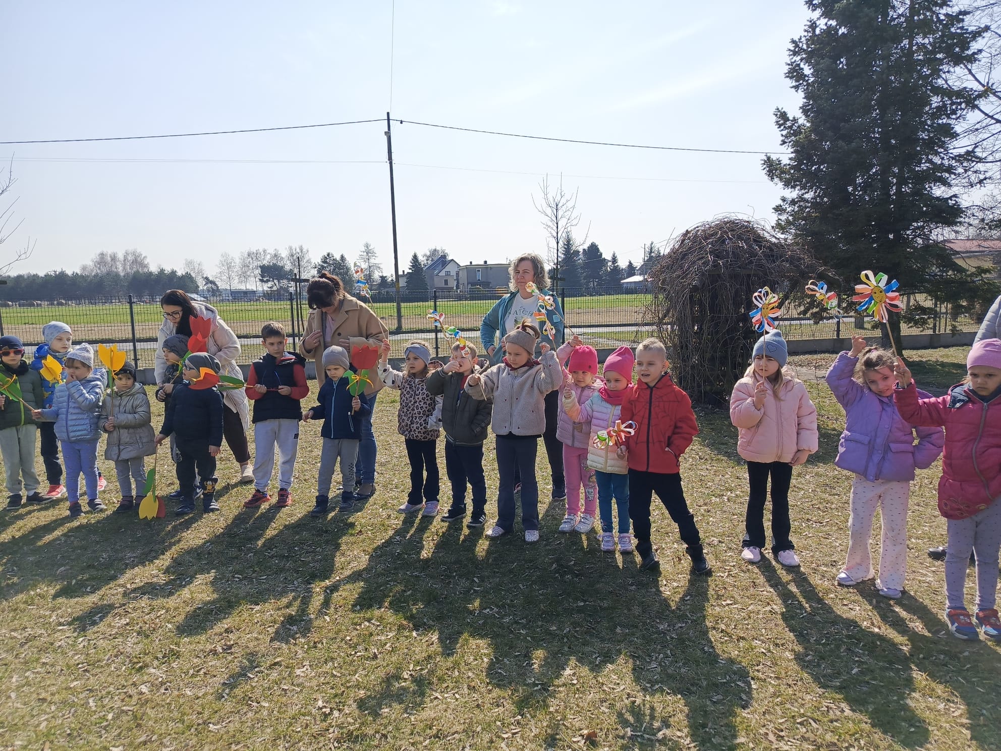 Dnia 23 marca 2026 roku w naszym przedszkolu odbyła się uroczystość pożegnania zimy i powitania wiosny. Wydarzenie to było związane z tradycją ludową topienia Marzanny oraz obchodami pierwszych dni wiosny. W tym dniu przyszliśmy ubrani w kolorowe, wiosenne stroje. Podczas zajęć w przedszkolu samodzielnie wykonaliśmy ozdoby – kwiaty, opaski oraz inne symbole wiosny.