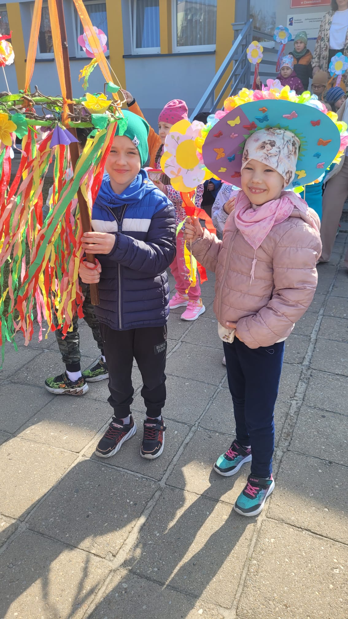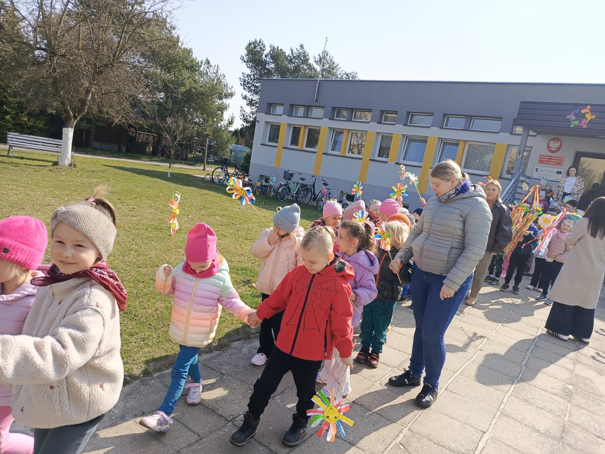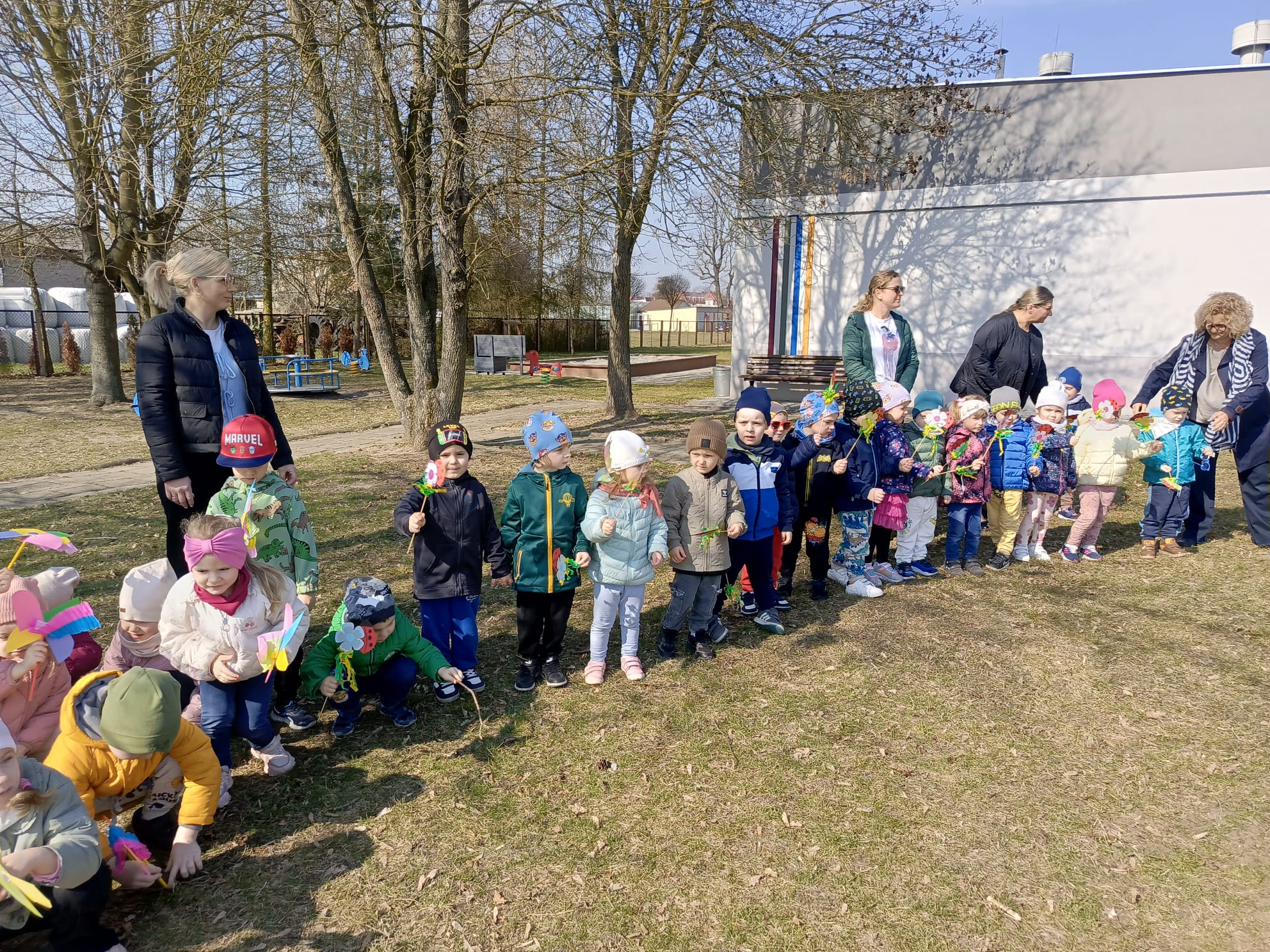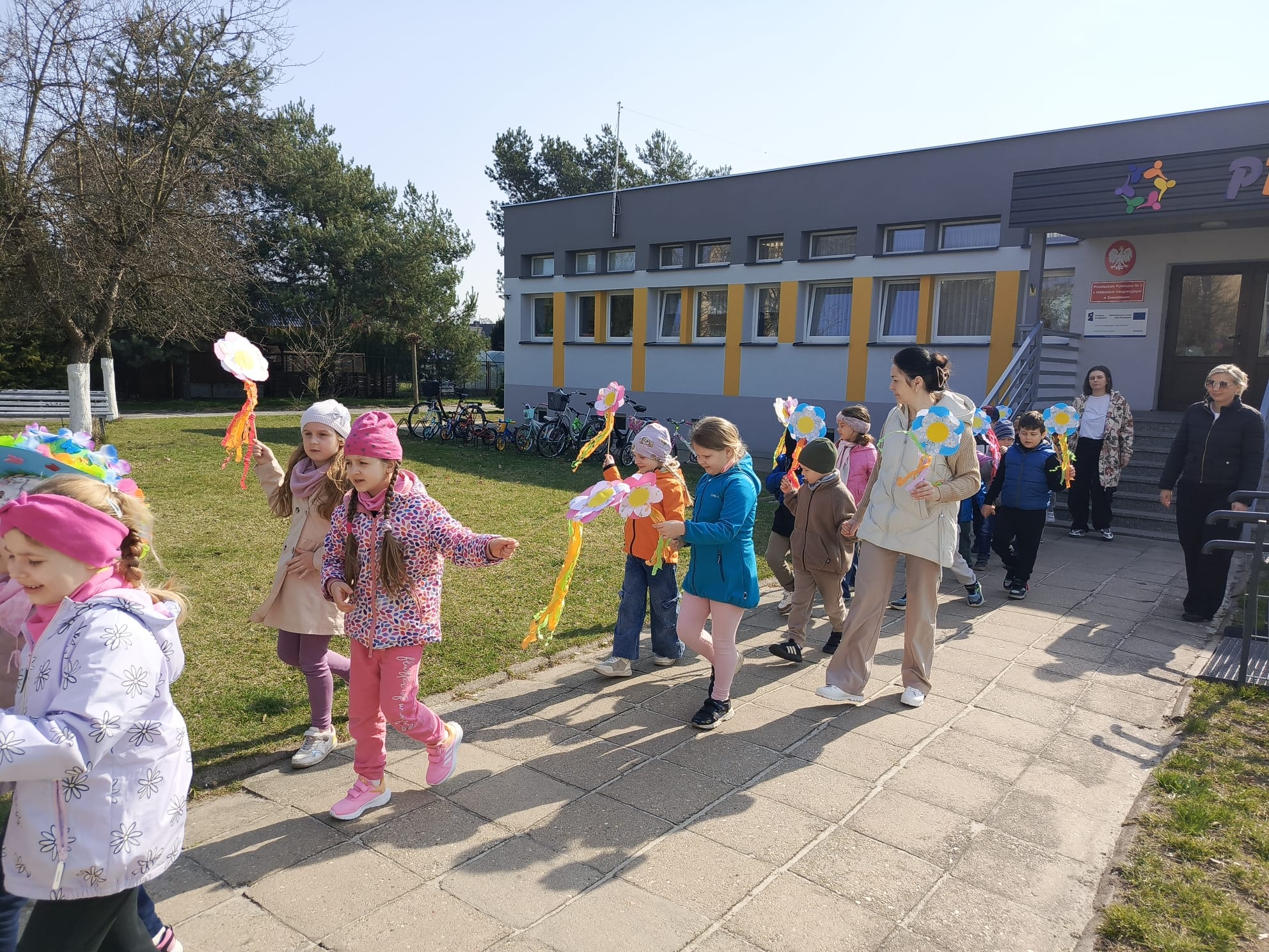 Dnia 23 marca 2026 roku w naszym przedszkolu odbyła się uroczystość pożegnania zimy i powitania wiosny. Wydarzenie to było związane z tradycją ludową topienia Marzanny oraz obchodami pierwszych dni wiosny. W tym dniu przyszliśmy ubrani w kolorowe, wiosenne stroje. Podczas zajęć w przedszkolu samodzielnie wykonaliśmy ozdoby – kwiaty, opaski oraz inne symbole wiosny.