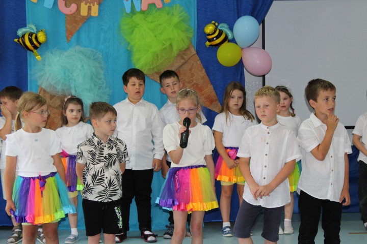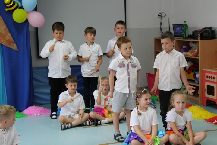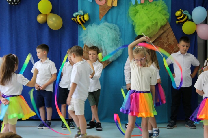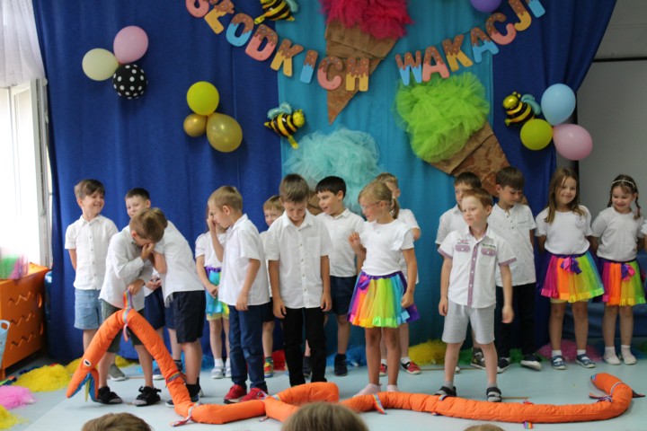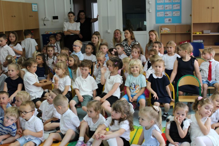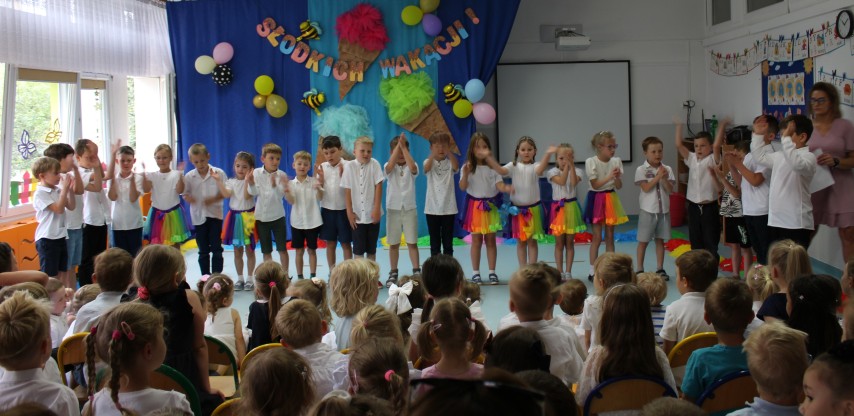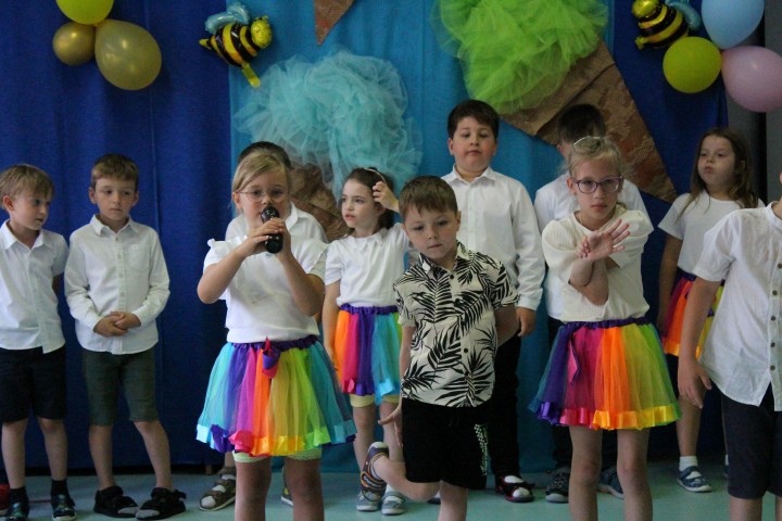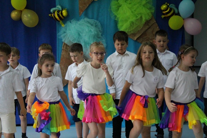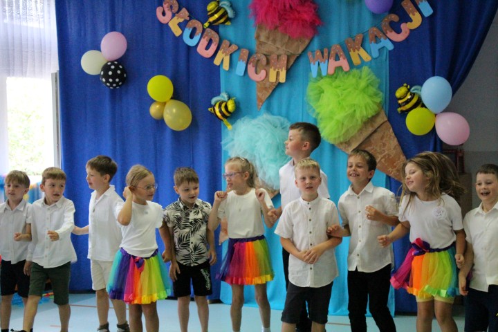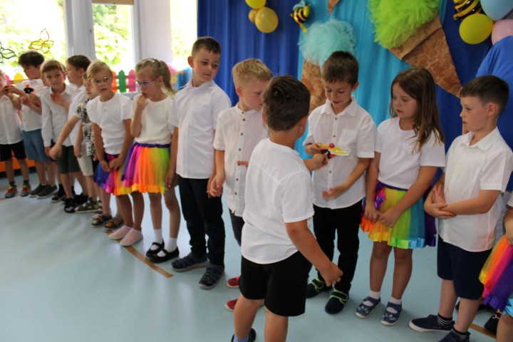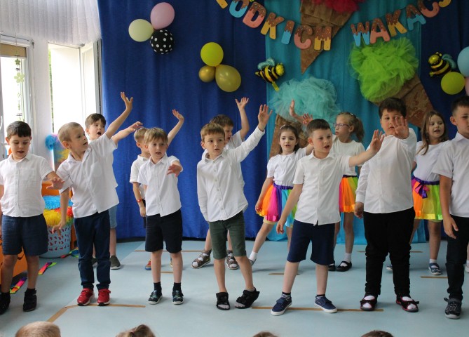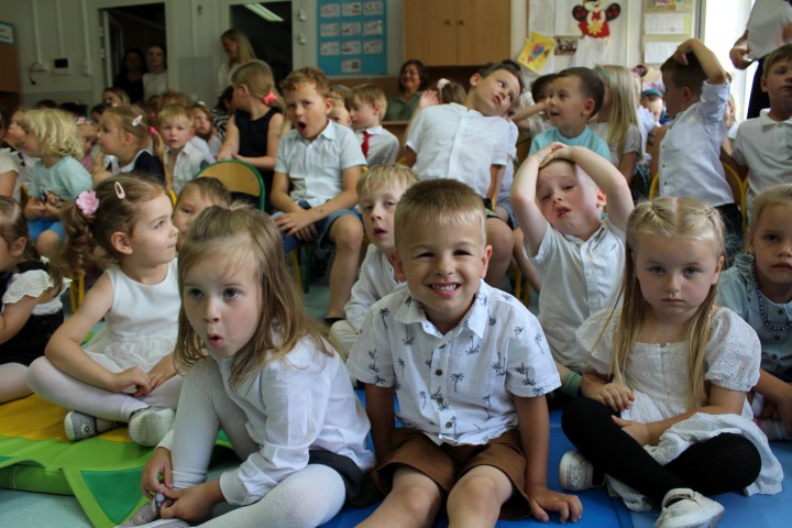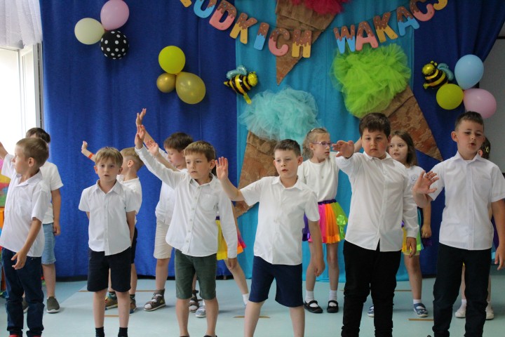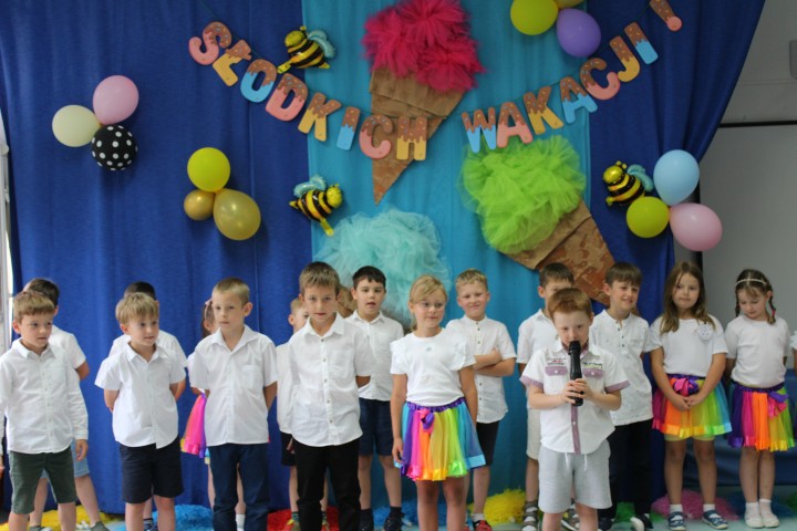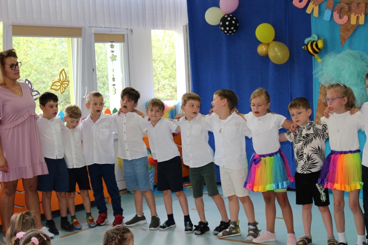 27 czerwca w naszym przedszkolu odbyła się uroczystość zakończenia roku przedszkolnego. Był to dzień pełen radości, wzruszeń i wspomnień, szczególnie dla naszych starszaków, którzy żegnają się już z przedszkolem i wyruszają w szkolną przygodę. Starszaki przedstawiły wszystkim przedszkolakom swój pożegnalny występ artystyczny, w którym w zabawny i ciepły sposób przedstawiły swoją przedszkolną drogę – od nieporadnych i nieśmiałych maluszków, przez pełne energii średniaki, aż po pewnych siebie i gotowych na szkołę starszaków.