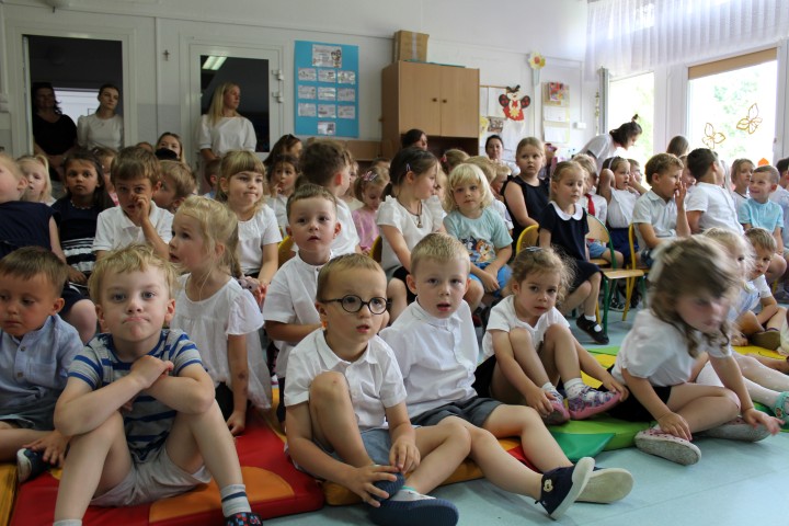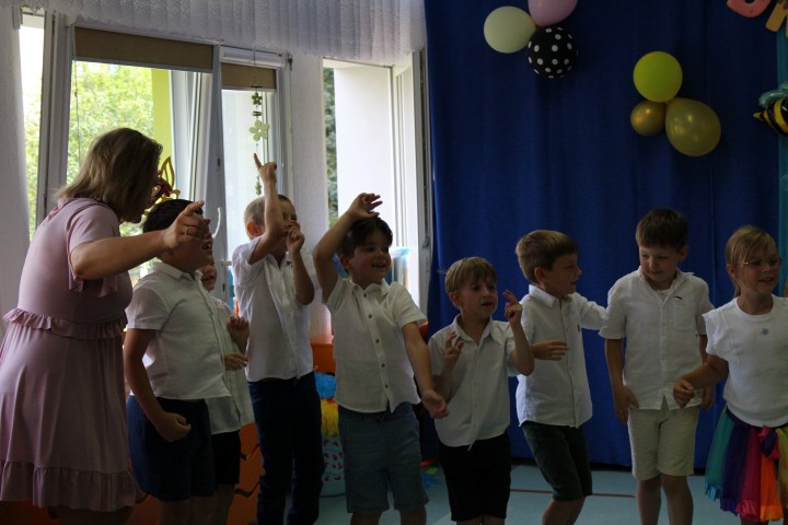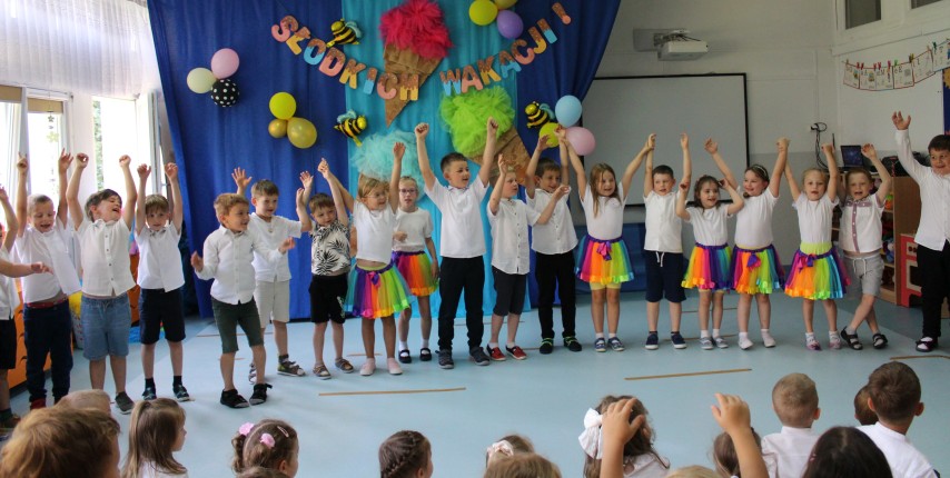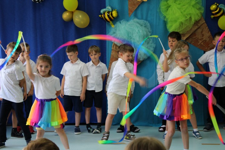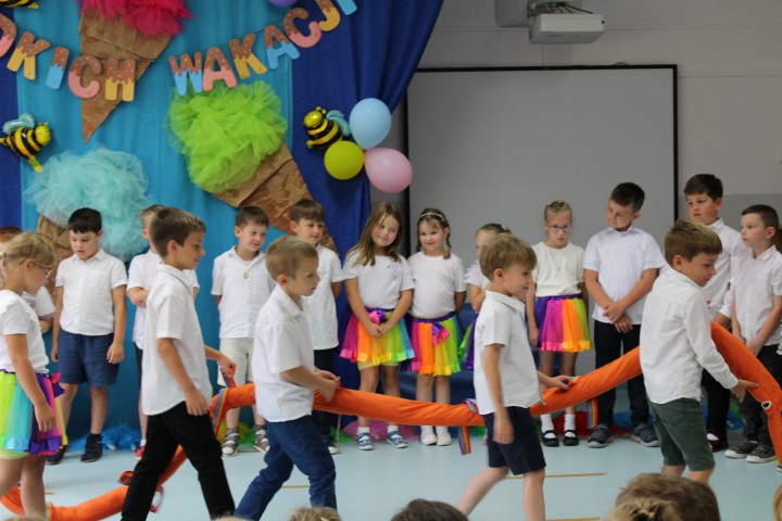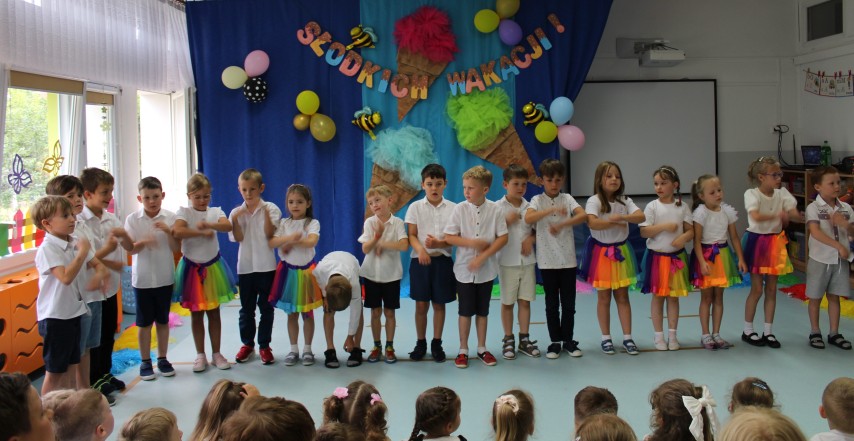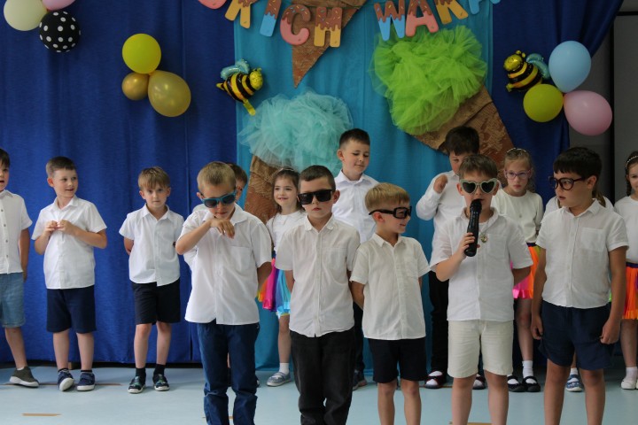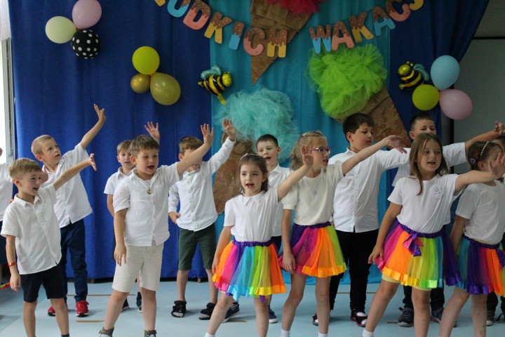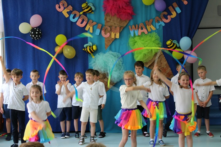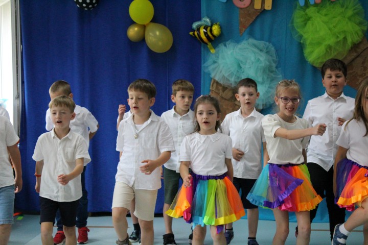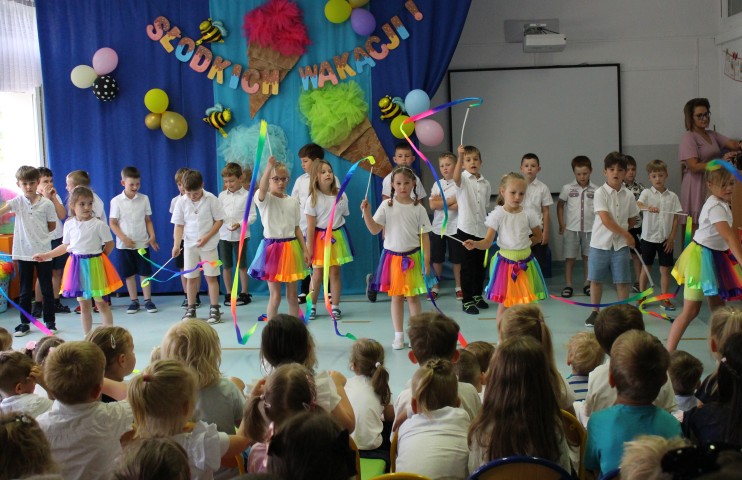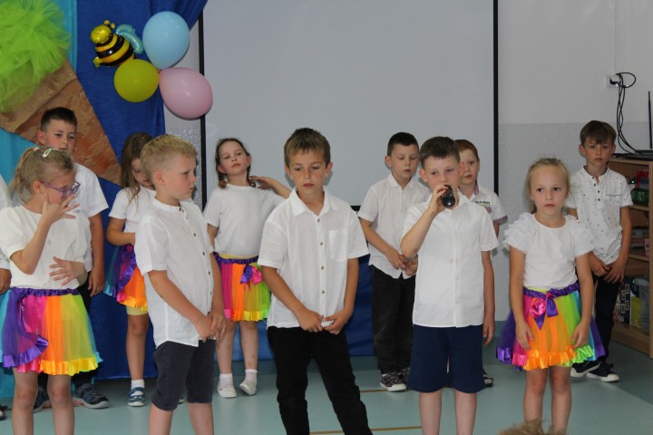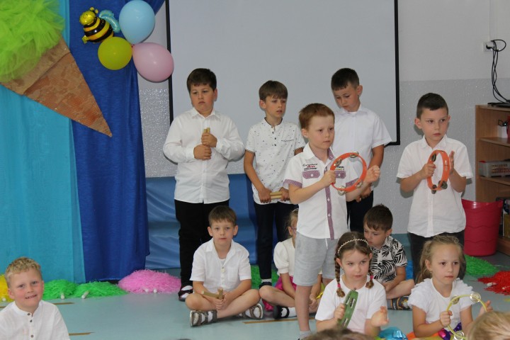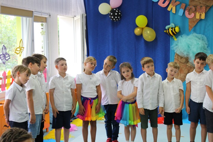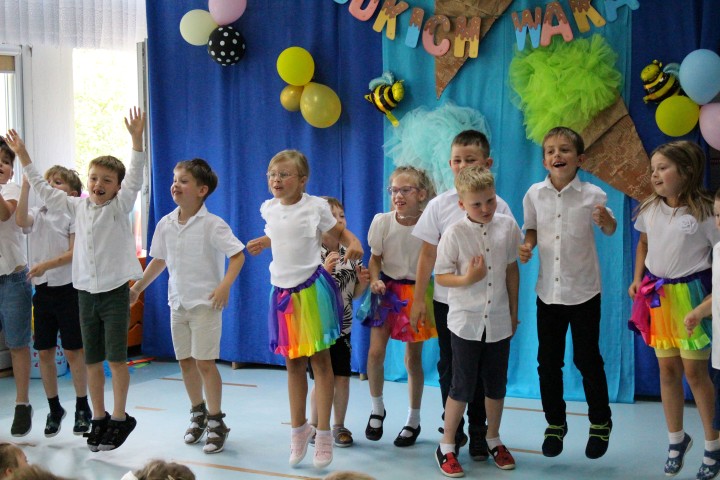 27 czerwca w naszym przedszkolu odbyła się uroczystość zakończenia roku przedszkolnego. Był to dzień pełen radości, wzruszeń i wspomnień, szczególnie dla naszych starszaków, którzy żegnają się już z przedszkolem i wyruszają w szkolną przygodę. Starszaki przedstawiły wszystkim przedszkolakom swój pożegnalny występ artystyczny, w którym w zabawny i ciepły sposób przedstawiły swoją przedszkolną drogę – od nieporadnych i nieśmiałych maluszków, przez pełne energii średniaki, aż po pewnych siebie i gotowych na szkołę starszaków.