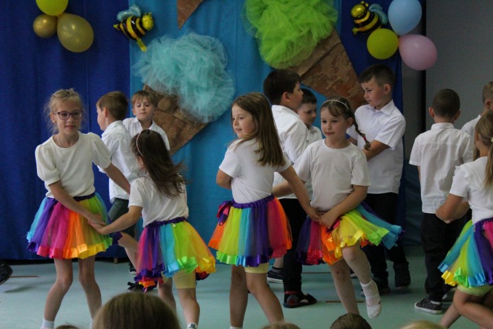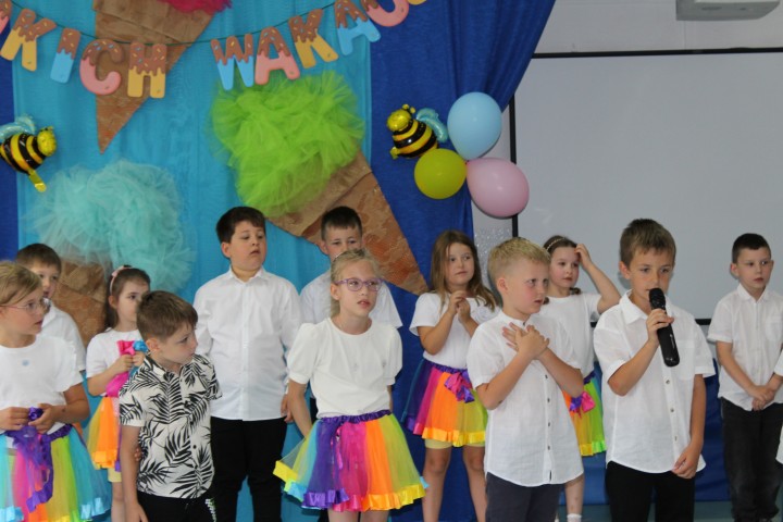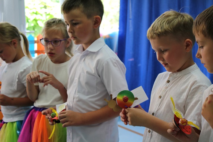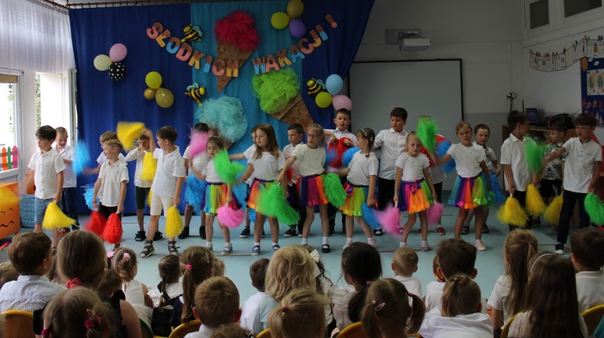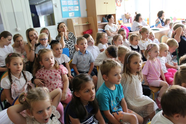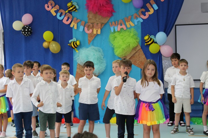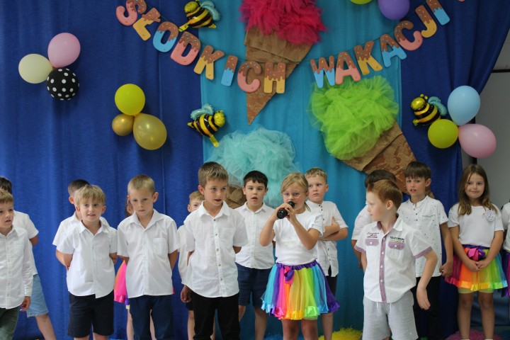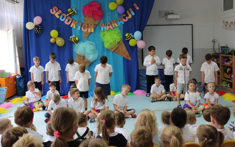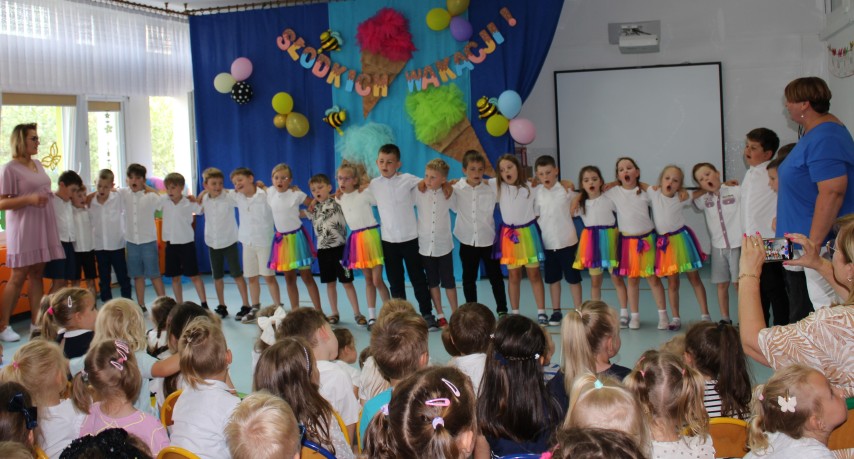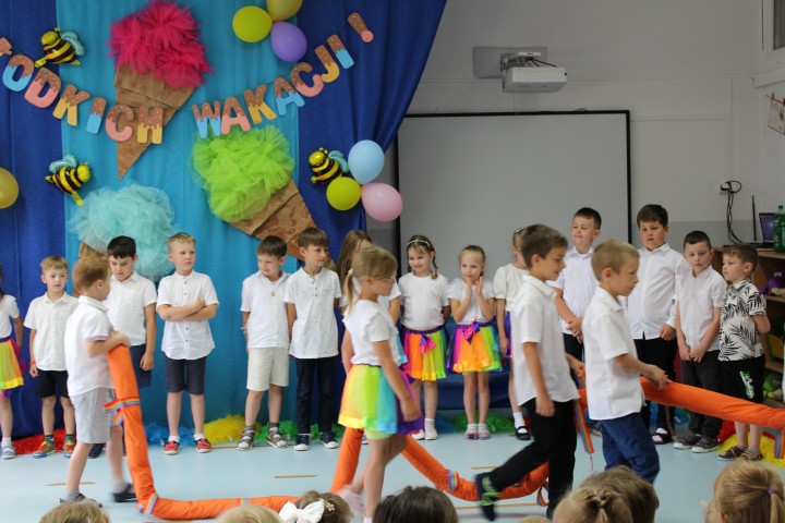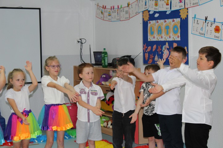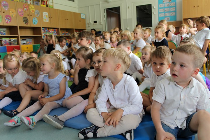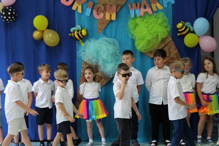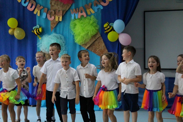 27 czerwca w naszym przedszkolu odbyła się uroczystość zakończenia roku przedszkolnego. Był to dzień pełen radości, wzruszeń i wspomnień, szczególnie dla naszych starszaków, którzy żegnają się już z przedszkolem i wyruszają w szkolną przygodę. Starszaki przedstawiły wszystkim przedszkolakom swój pożegnalny występ artystyczny, w którym w zabawny i ciepły sposób przedstawiły swoją przedszkolną drogę – od nieporadnych i nieśmiałych maluszków, przez pełne energii średniaki, aż po pewnych siebie i gotowych na szkołę starszaków.