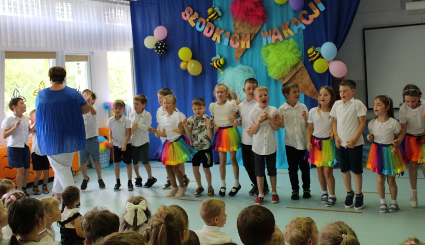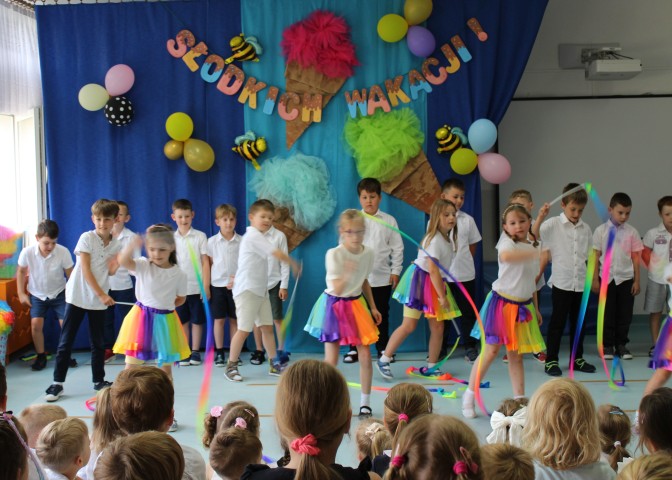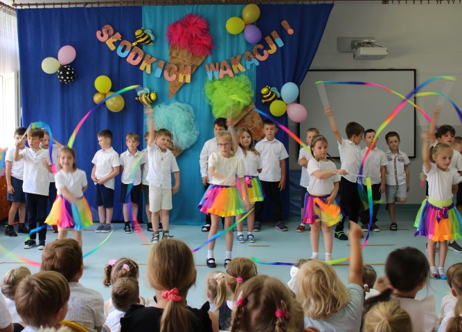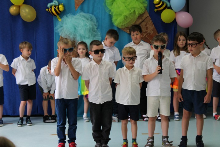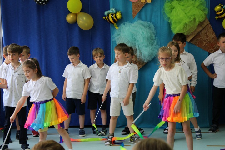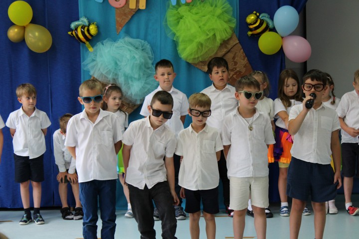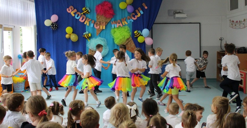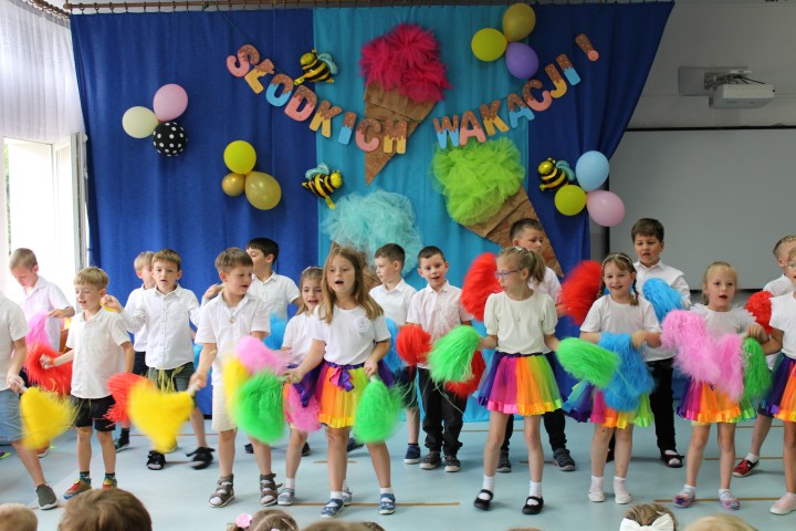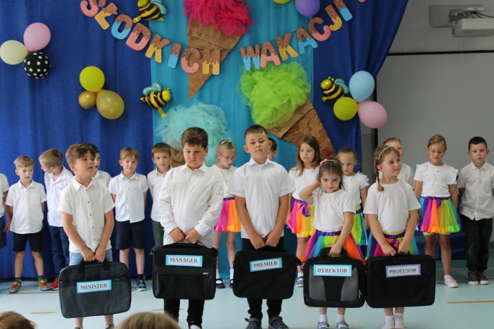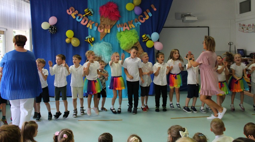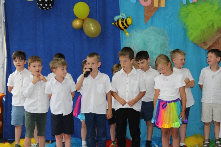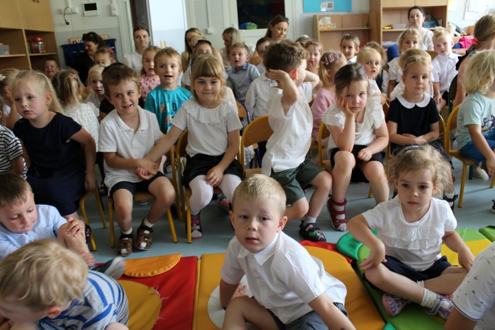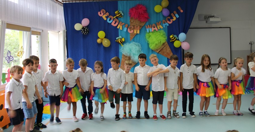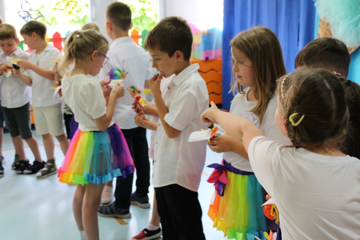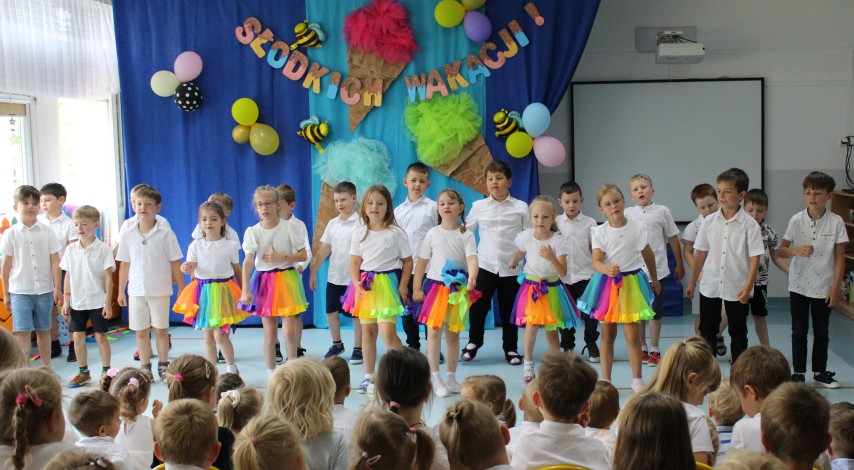 27 czerwca w naszym przedszkolu odbyła się uroczystość zakończenia roku przedszkolnego. Był to dzień pełen radości, wzruszeń i wspomnień, szczególnie dla naszych starszaków, którzy żegnają się już z przedszkolem i wyruszają w szkolną przygodę. Starszaki przedstawiły wszystkim przedszkolakom swój pożegnalny występ artystyczny, w którym w zabawny i ciepły sposób przedstawiły swoją przedszkolną drogę – od nieporadnych i nieśmiałych maluszków, przez pełne energii średniaki, aż po pewnych siebie i gotowych na szkołę starszaków.