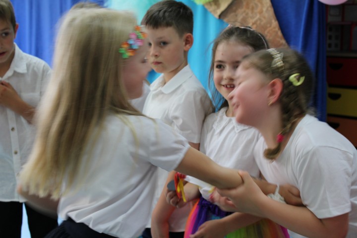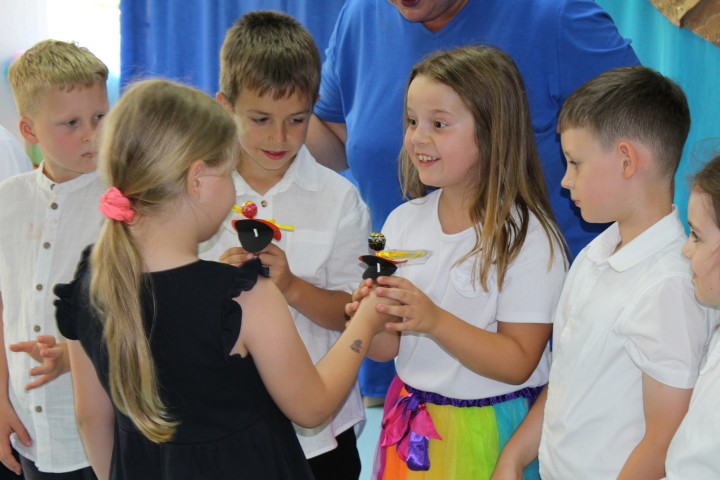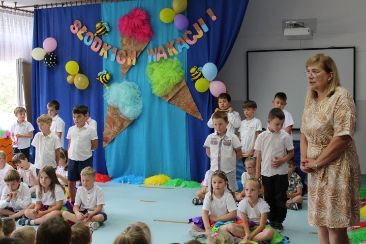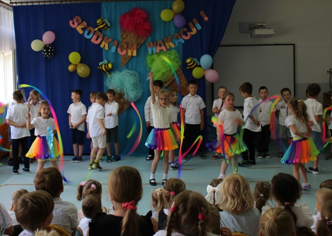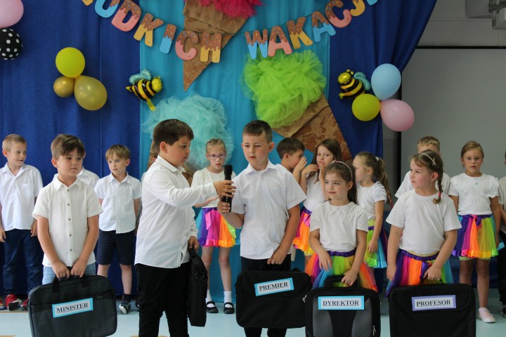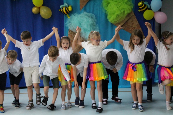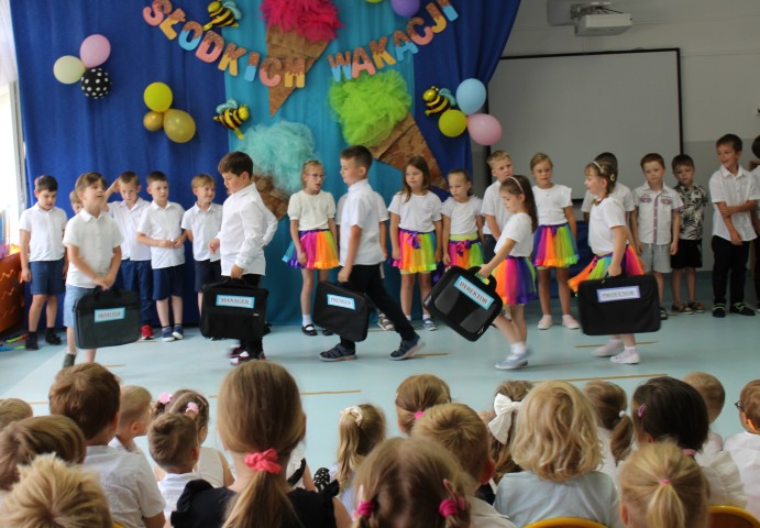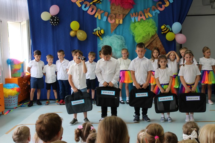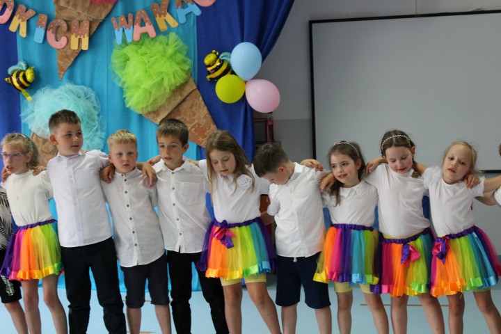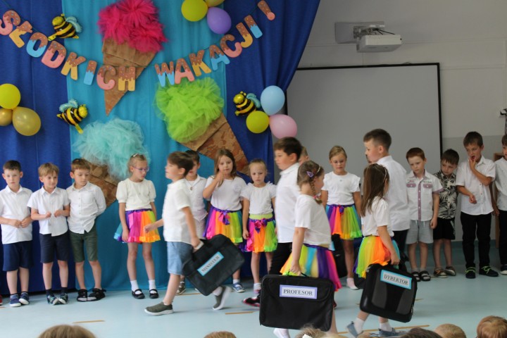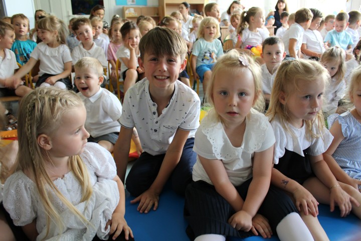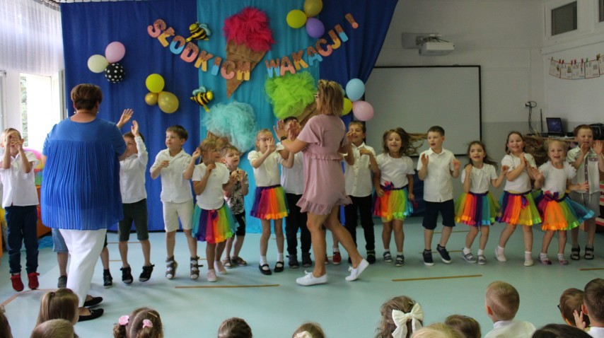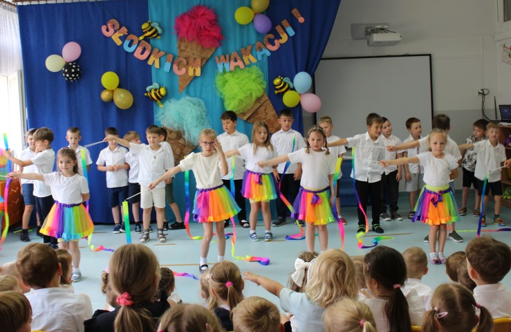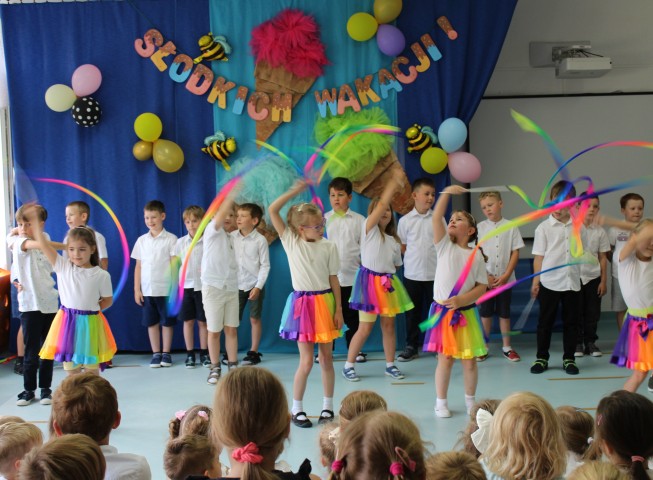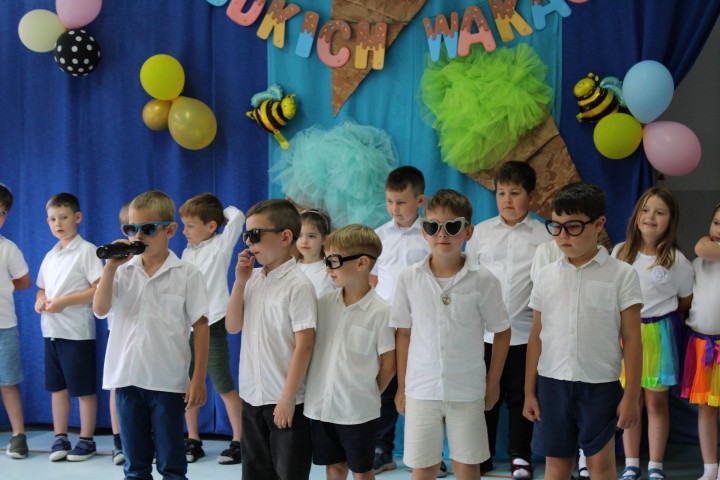27 czerwca w naszym przedszkolu odbyła się uroczystość zakończenia roku przedszkolnego. Był to dzień pełen radości, wzruszeń i wspomnień, szczególnie dla naszych starszaków, którzy żegnają się już z przedszkolem i wyruszają w szkolną przygodę. Starszaki przedstawiły wszystkim przedszkolakom swój pożegnalny występ artystyczny, w którym w zabawny i ciepły sposób przedstawiły swoją przedszkolną drogę – od nieporadnych i nieśmiałych maluszków, przez pełne energii średniaki, aż po pewnych siebie i gotowych na szkołę starszaków.