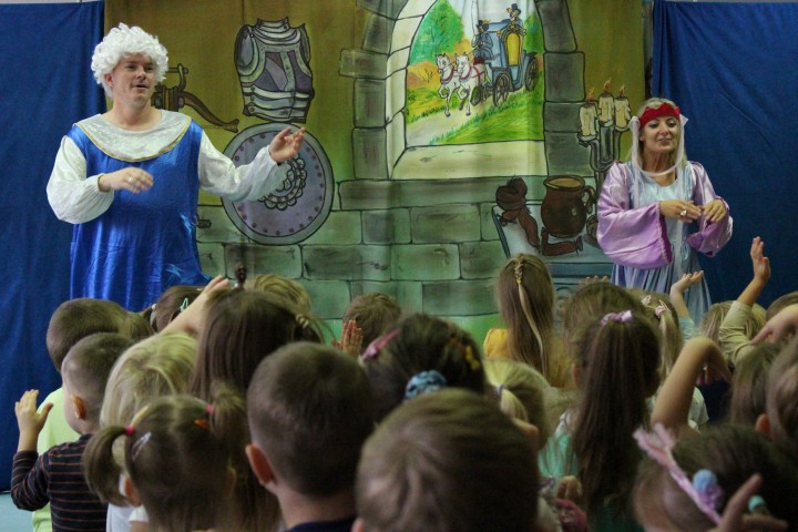 10 października gościliśmy w naszym przedszkolu aktorów ze Studia Teatralnego KRAK-ART z Krakowa, którzy zaprezentowali przedstawienie teatralne pt. "Kot w butach". Z uwagą śledziliśmy losy Janka i jego przyjaciela kota, pomagając w rozwiązywaniu ich problemów. Dużym przeżyciem dla niektórych z nas było aktywne uczestnictwo w spektaklu.